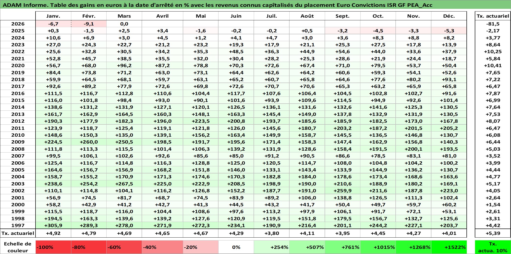 Dernière perfo 10 ans en %