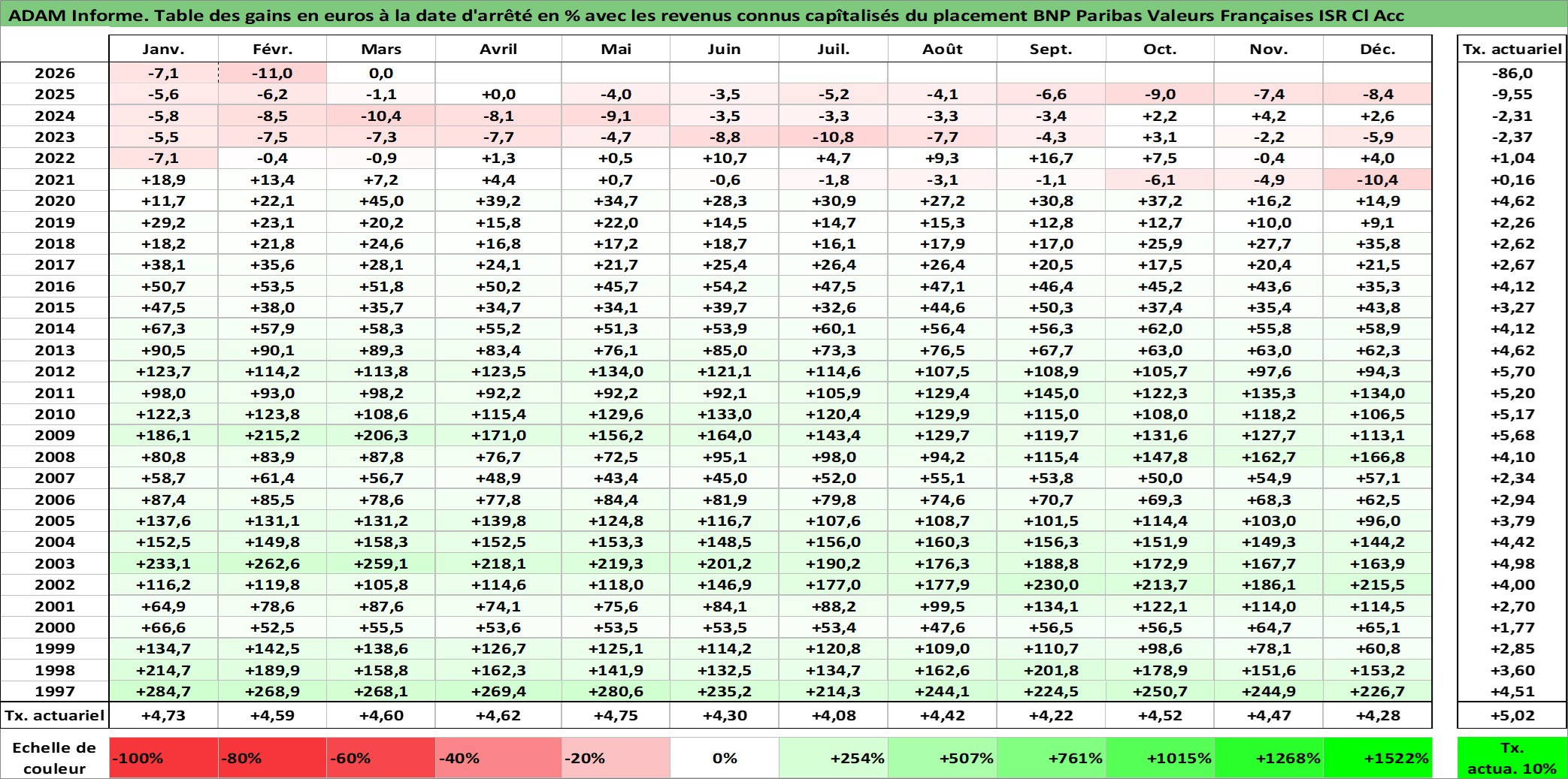 Dernière perfo 10 ans en %