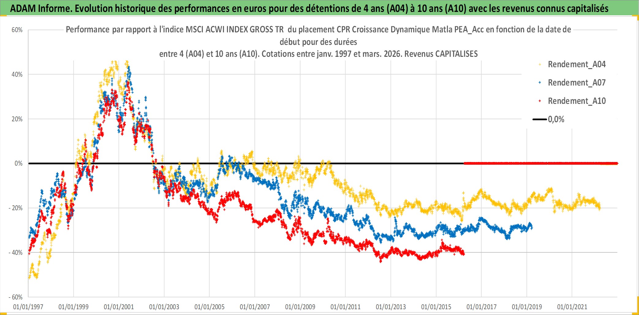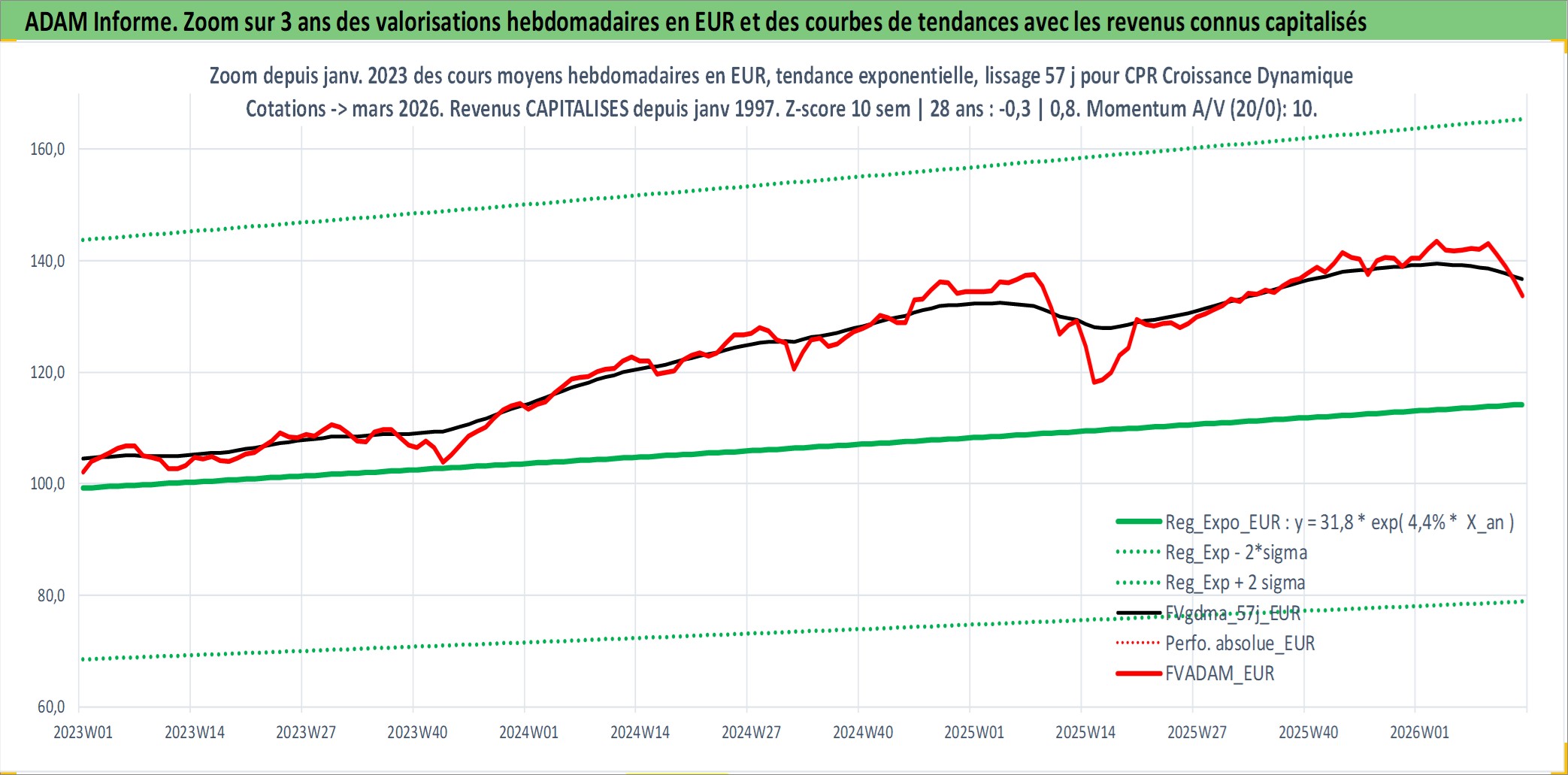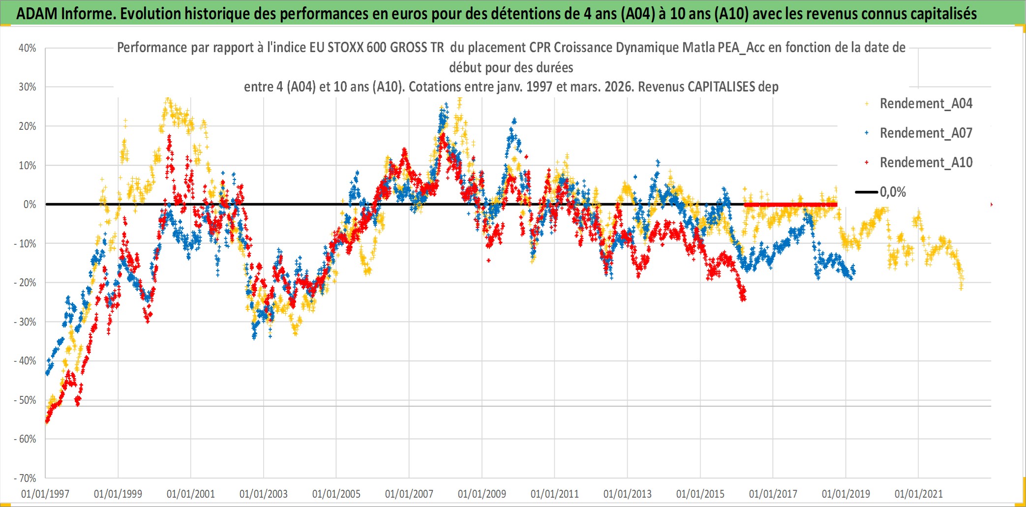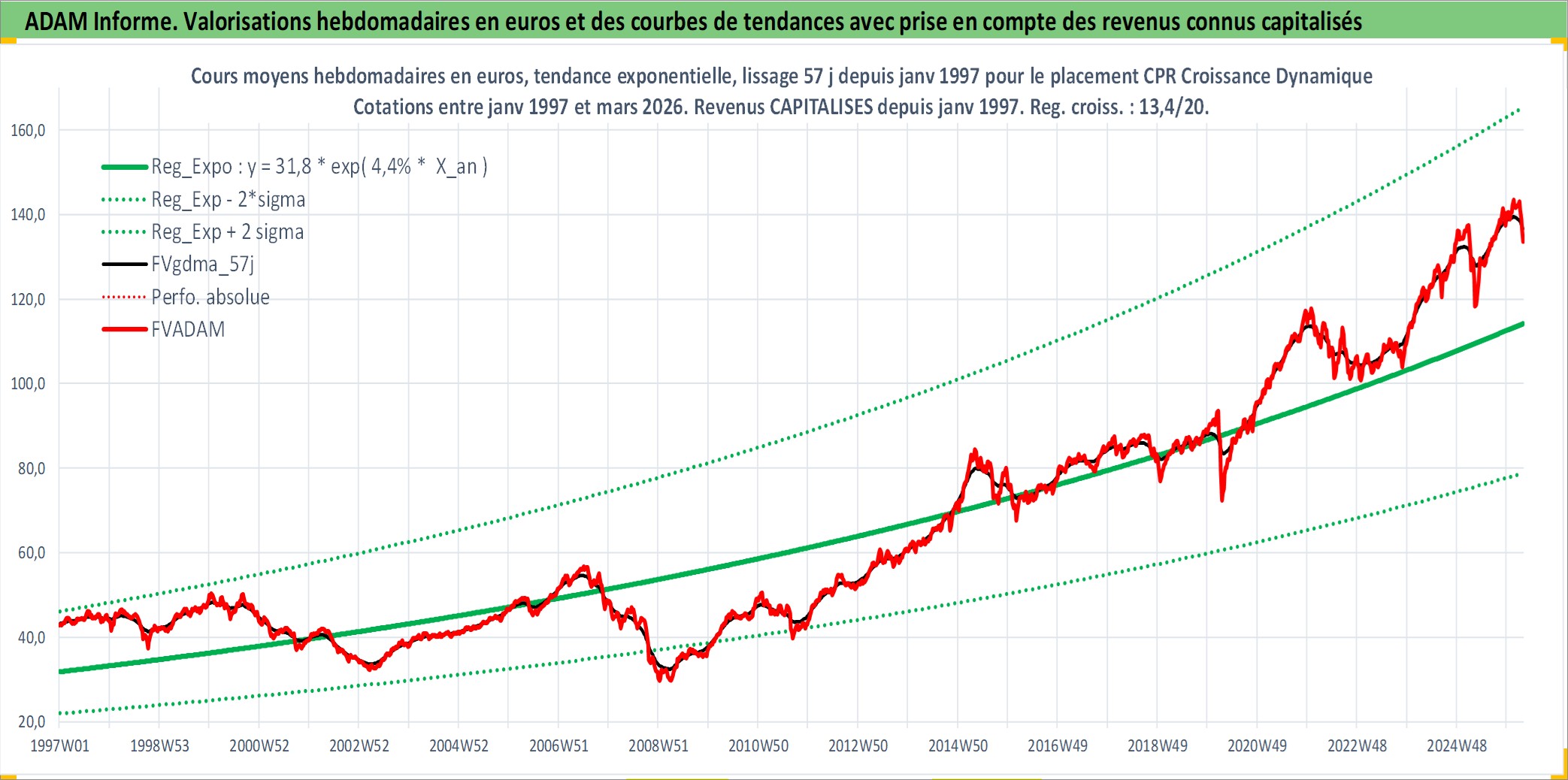 Site dédié aux investisseursPage dédiée sur site financeAnalyse des valorisations hebdomadaires du fonds CPR Croissance Dynamique Matla PEA_Acc. Cet actif est cote en EUR. Les valorisations couvrent les semaines 1997W01 a 2026W13. Les revenus de cet actif financier sont pris en compte depuis la semaine 1997W01. La note ESG de cet actif n'est pas connue.