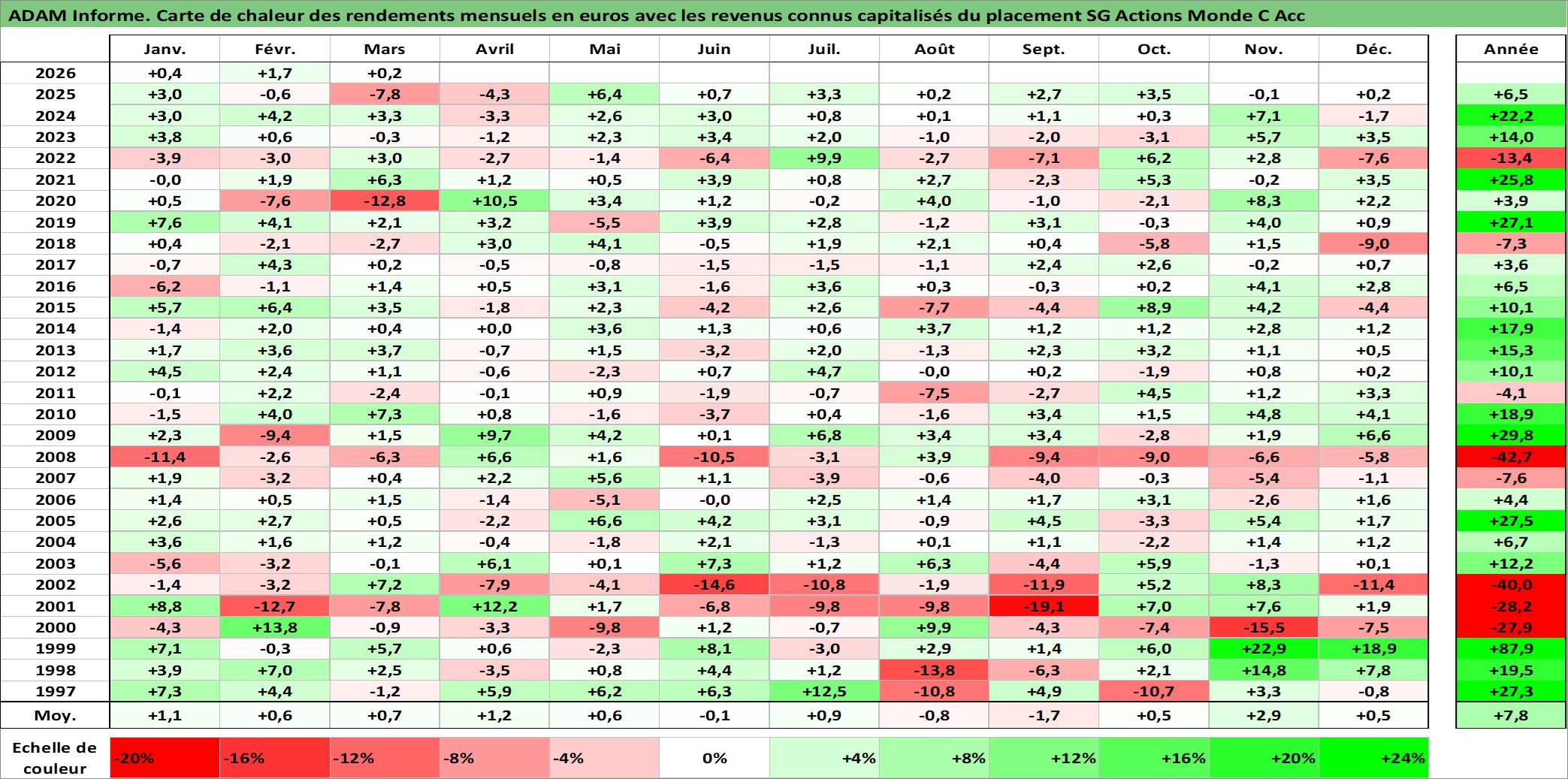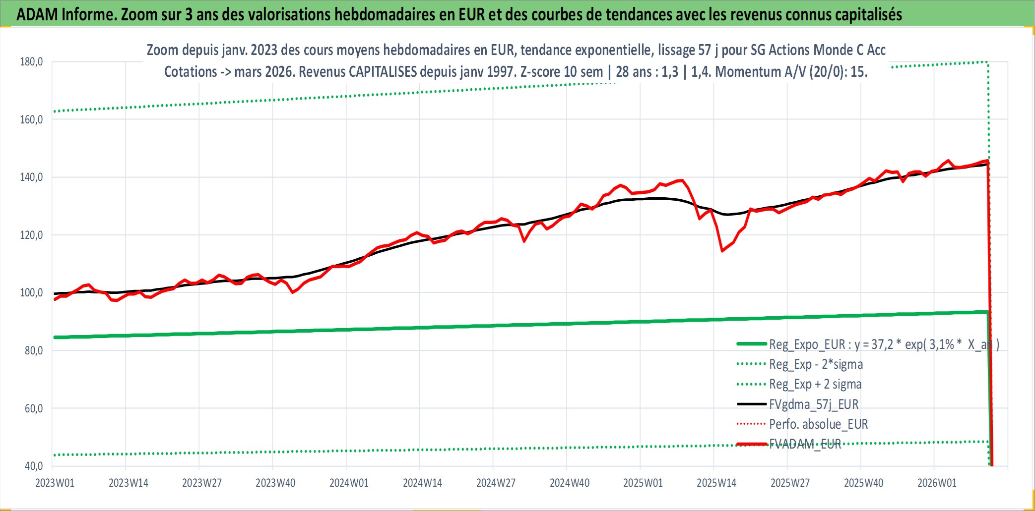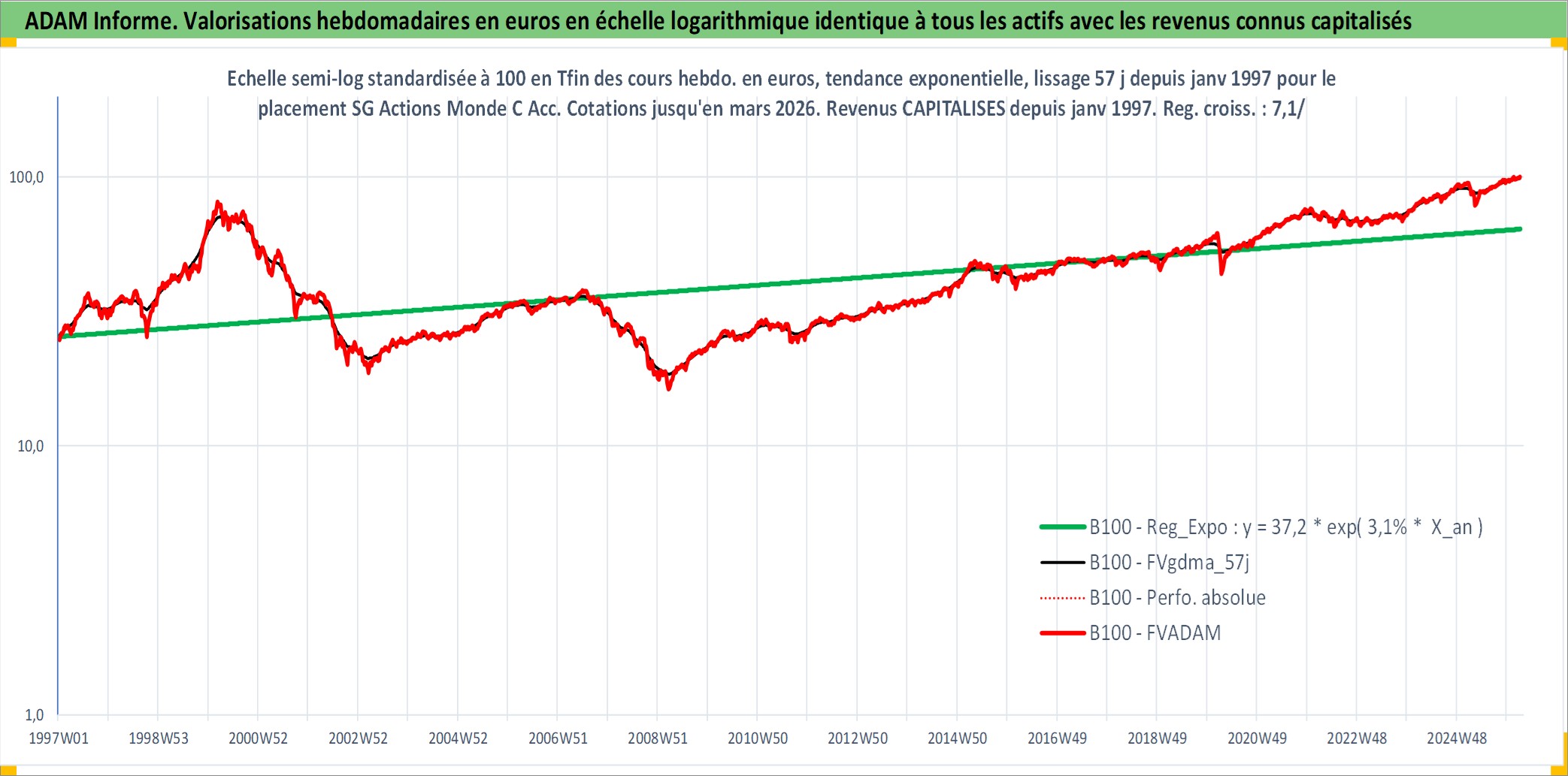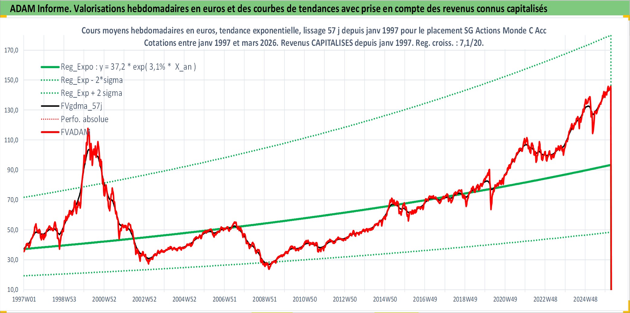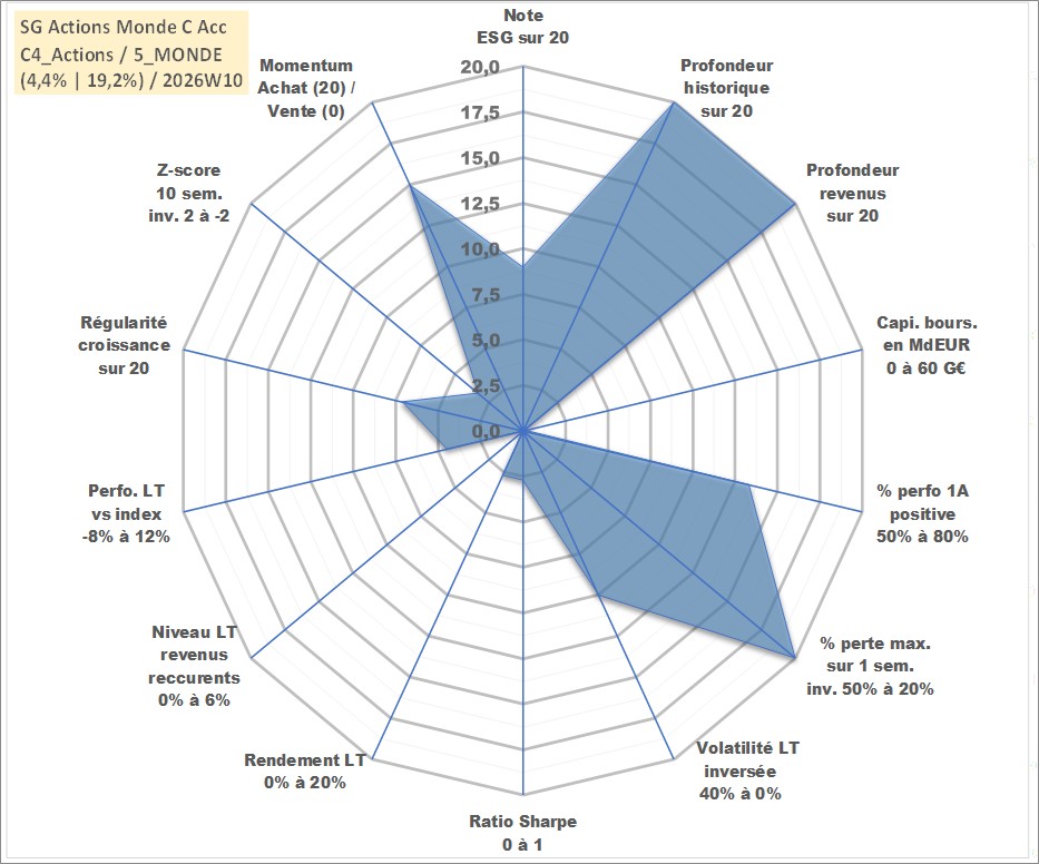 Site dédié aux investisseursPage dédiée sur site financeAnalyse des valorisations hebdomadaires du fonds SG Actions Monde C Acc. Cet actif est cote en EUR. Les valorisations couvrent les semaines 1997W01 a 2026W10. Les revenus de cet actif financier sont pris en compte depuis la semaine 1997W01. La note globale ESG de cet actif est estimee a 9.0 (apres rebasage entre 0 et 20).