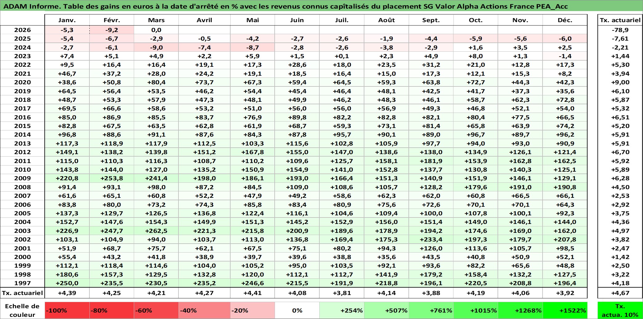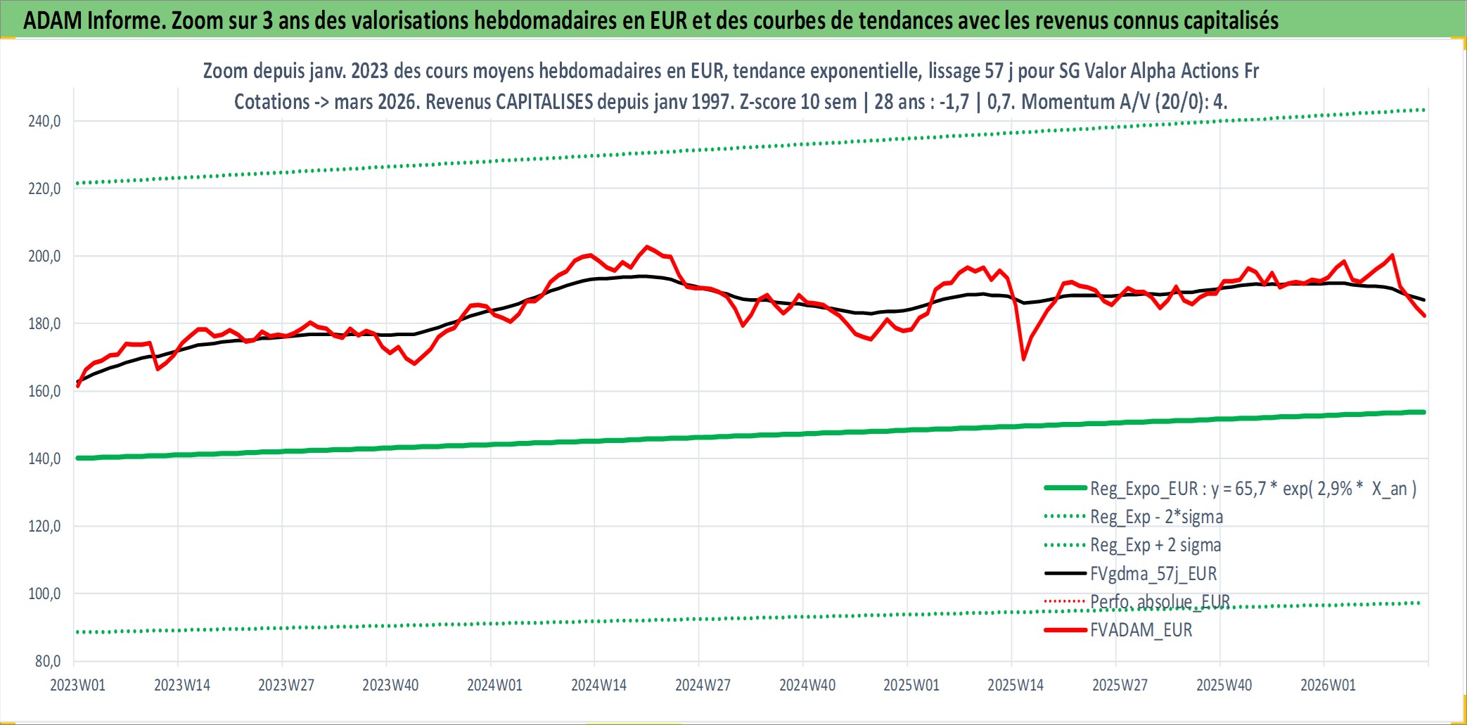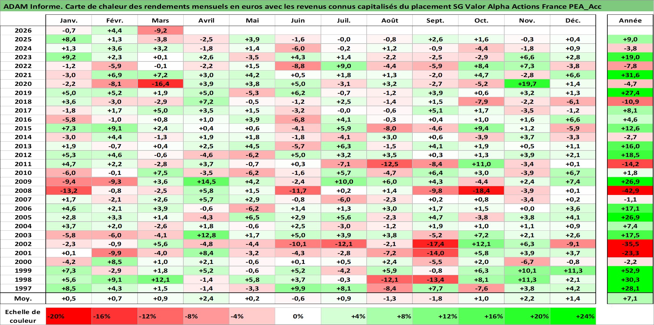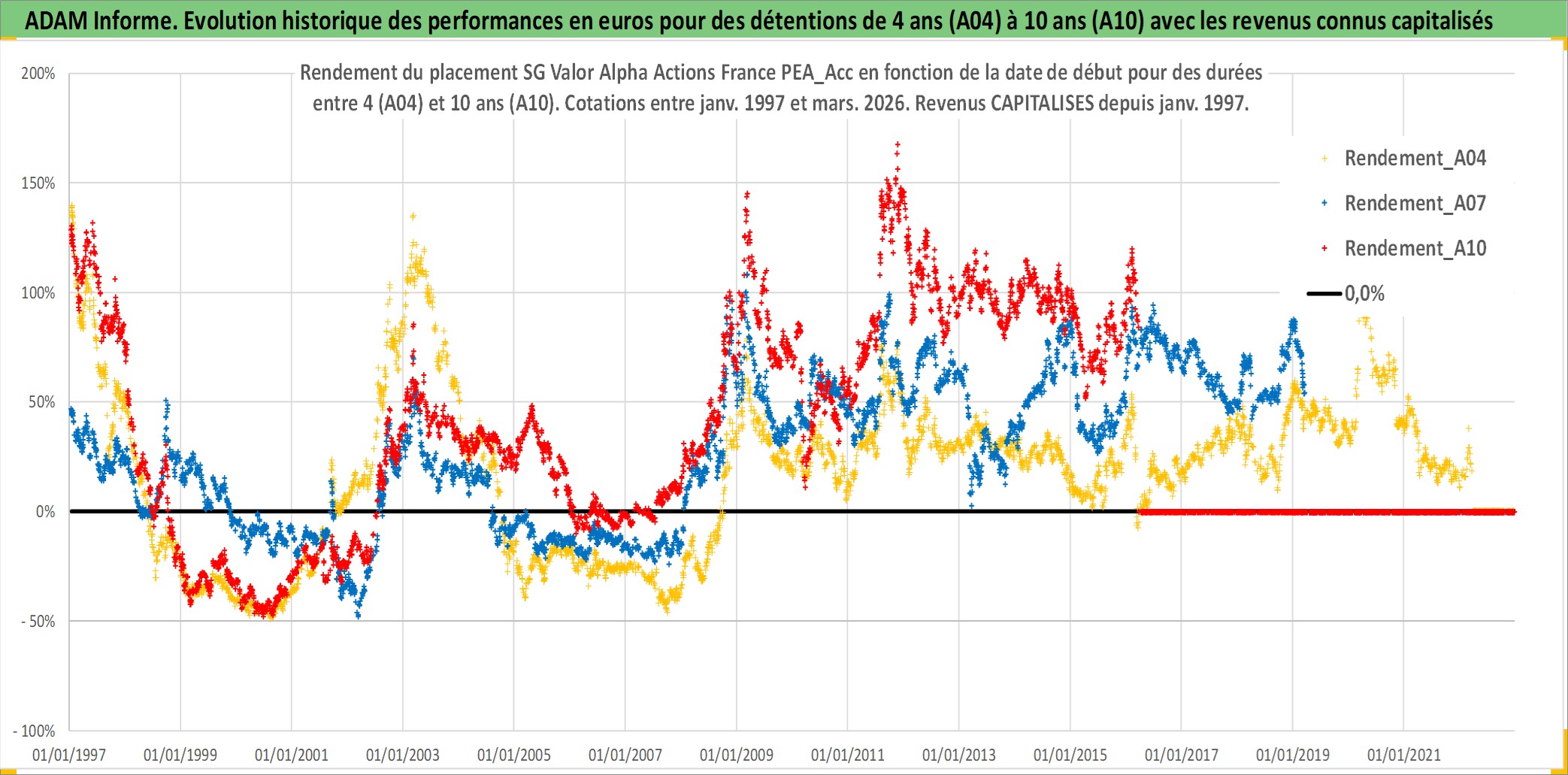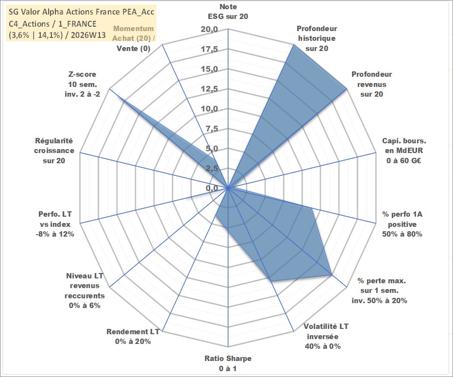 Site dédié aux investisseursPage dédiée sur site financeAnalyse des valorisations hebdomadaires du fonds SG Valor Alpha Actions France PEA_Acc. Cet actif est cote en EUR. Les valorisations couvrent les semaines 1997W01 a 2026W13. Les revenus de cet actif financier sont pris en compte depuis la semaine 1997W01. La note ESG de cet actif n'est pas connue.