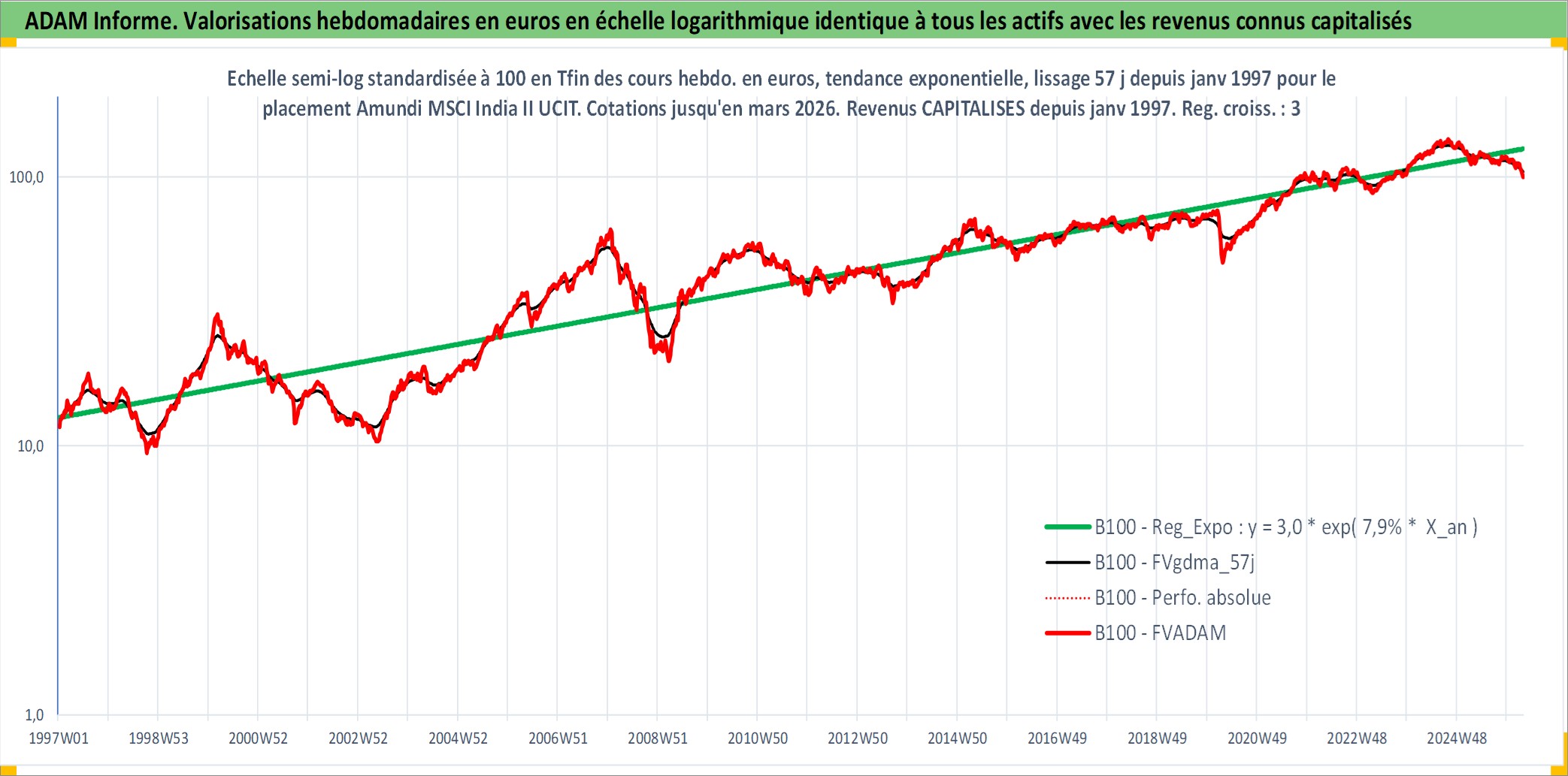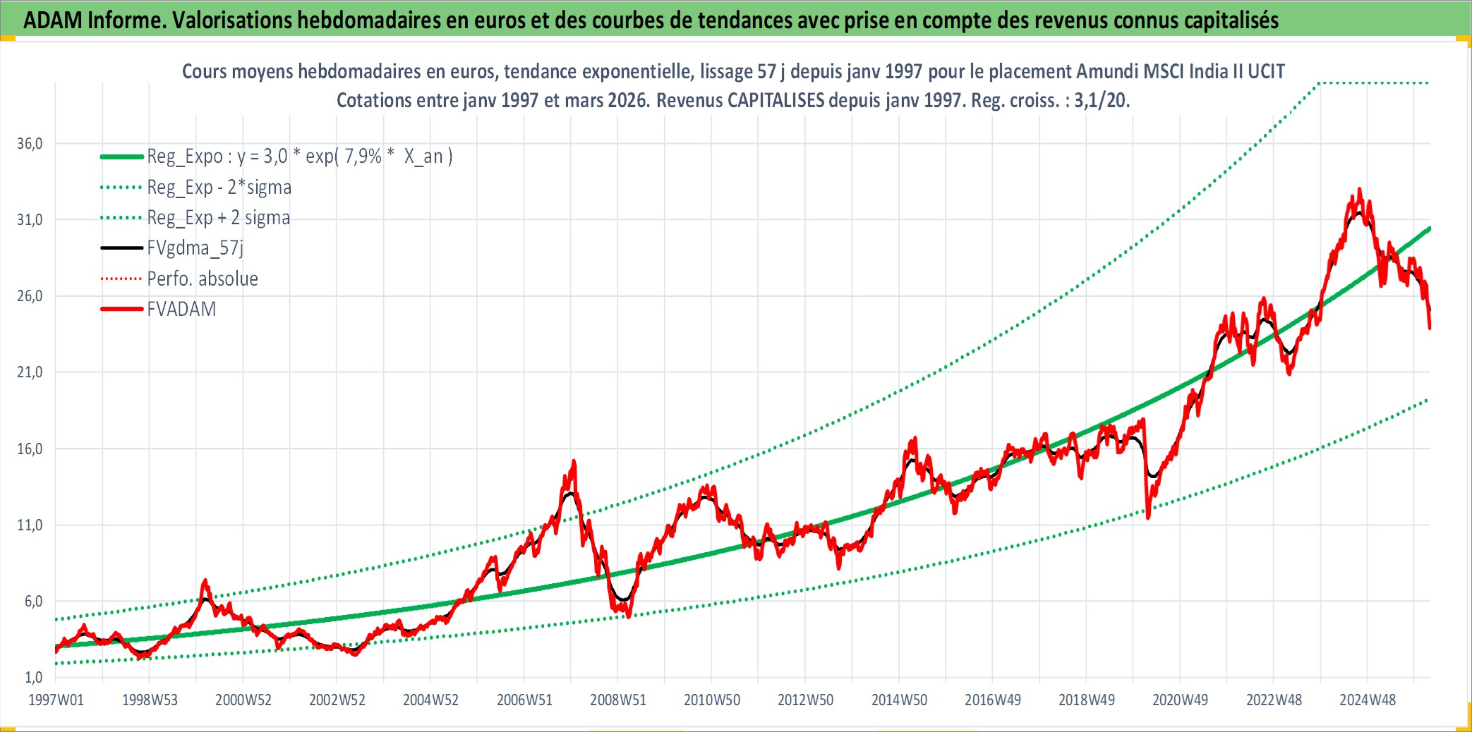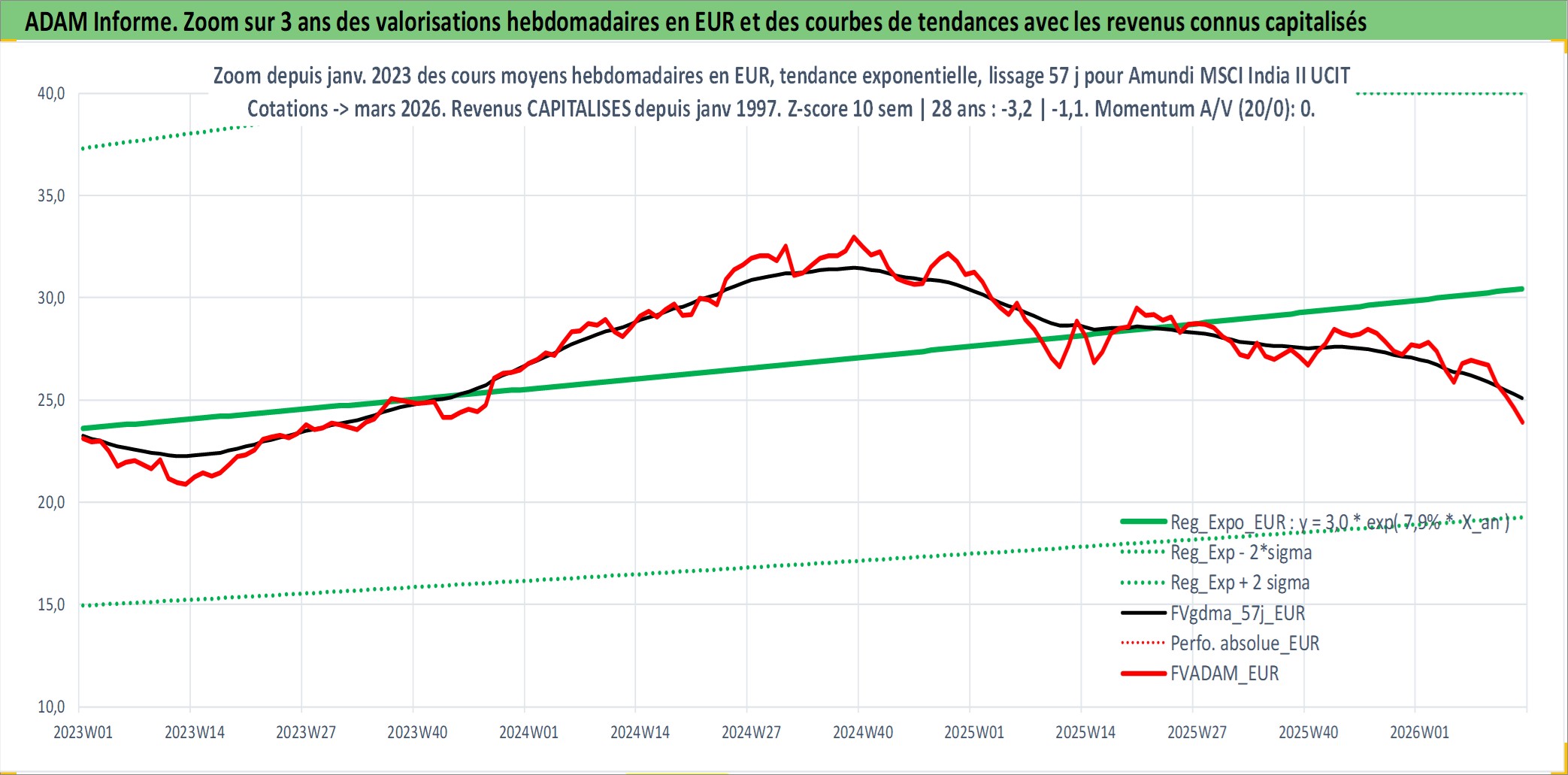 Site dédié aux investisseursPage dédiée sur site financeAnalyse des valorisations hebdomadaires du fonds Amundi MSCI India II UCITS ETF EUR Acc. Cet actif est cote en EUR. Les valorisations couvrent les semaines 1997W01 a 2026W13. Les revenus de cet actif financier sont pris en compte depuis la semaine 1997W01. La note ESG de cet actif n'est pas connue.
