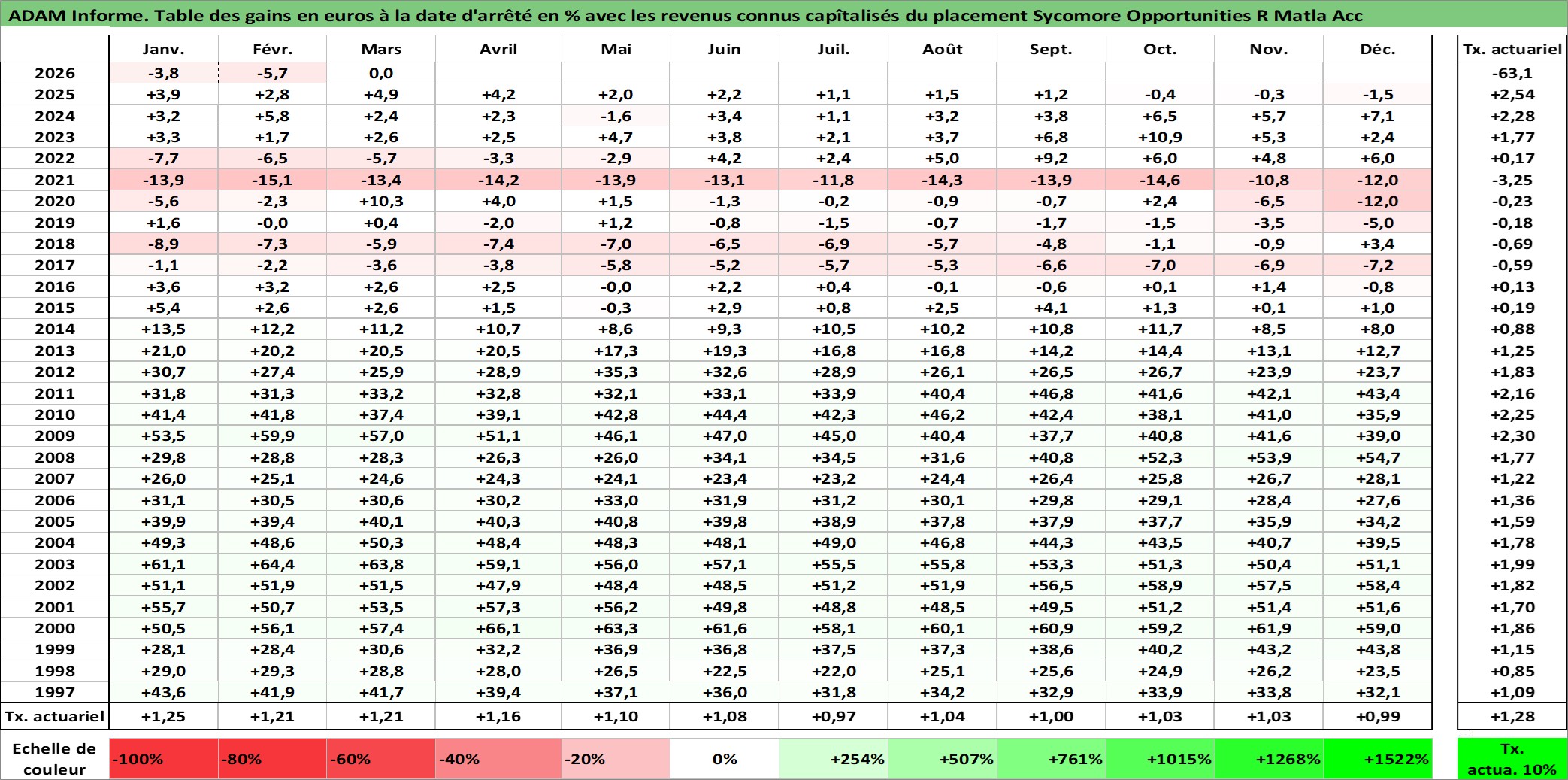 Dernière perfo 1 an en %