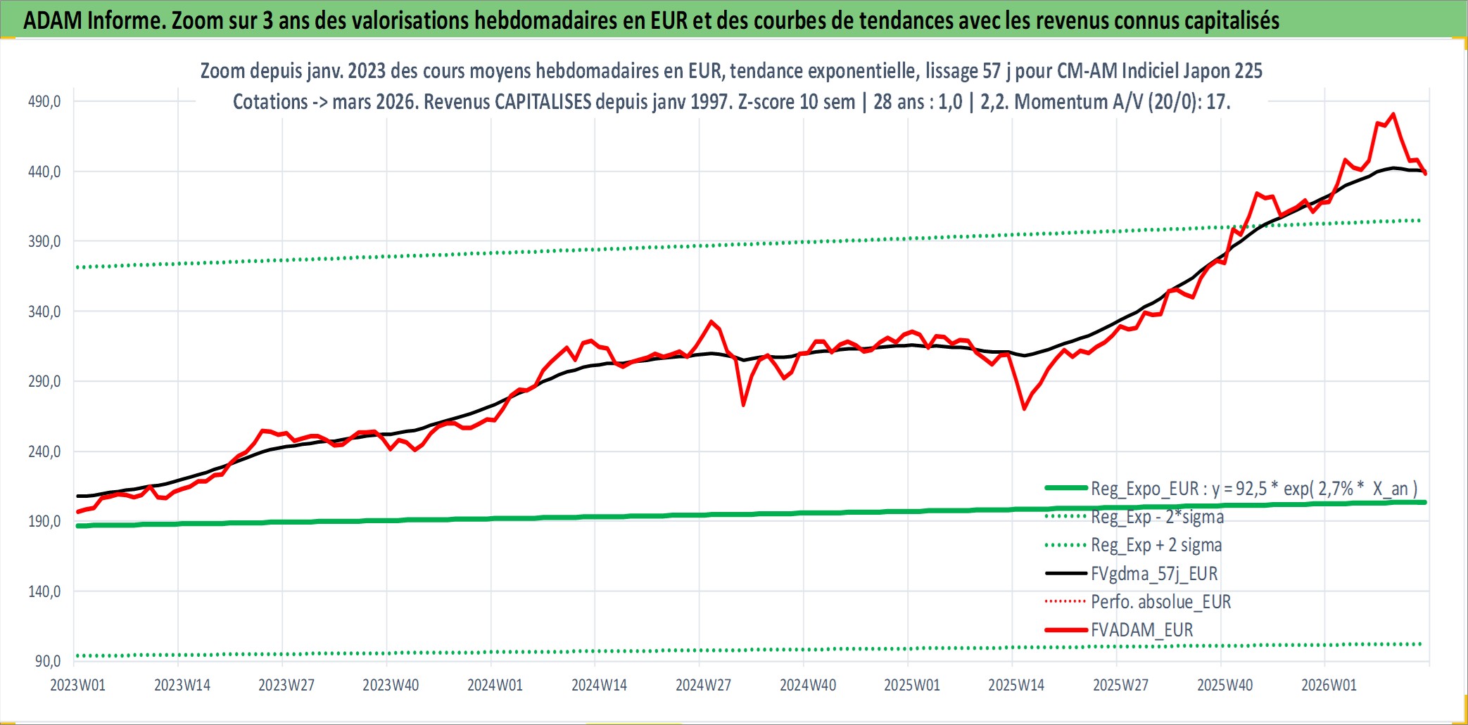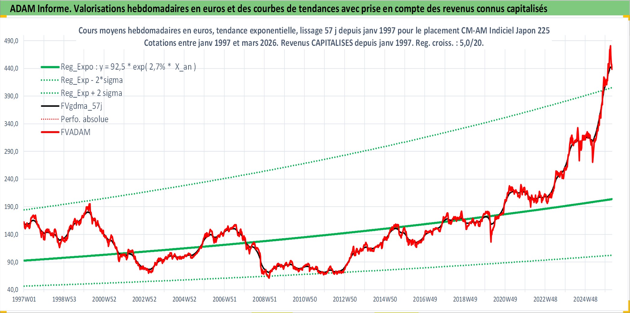 Site dédié aux investisseursPage dédiée sur site financeAnalyse des valorisations hebdomadaires du fonds CM-AM Indiciel Japon 225 EUR PEA_Acc. Cet actif est cote en EUR. Les valorisations couvrent les semaines 1997W01 a 2026W13. Les revenus de cet actif financier sont pris en compte depuis la semaine 1997W01. La note ESG de cet actif n'est pas connue.