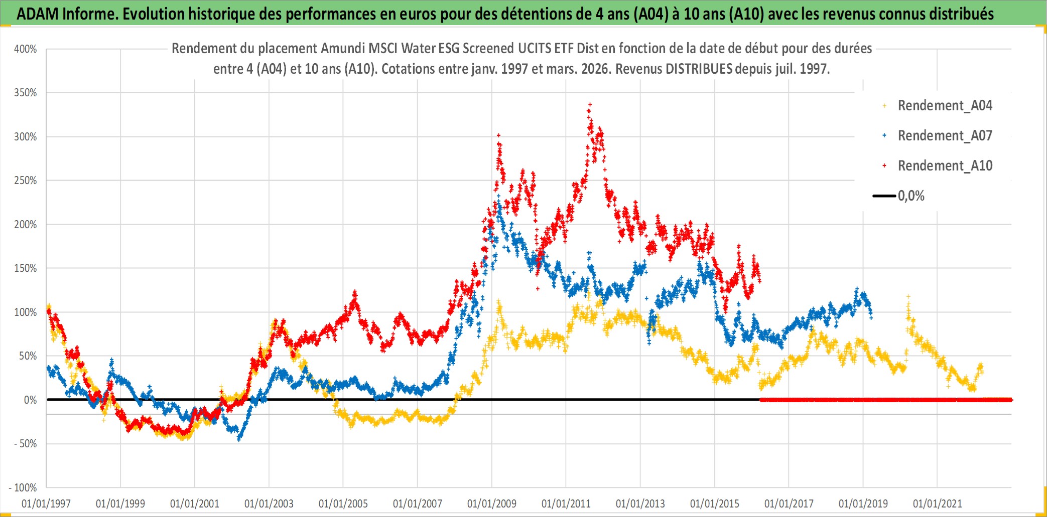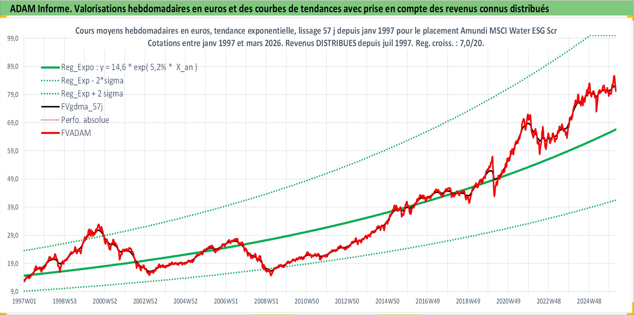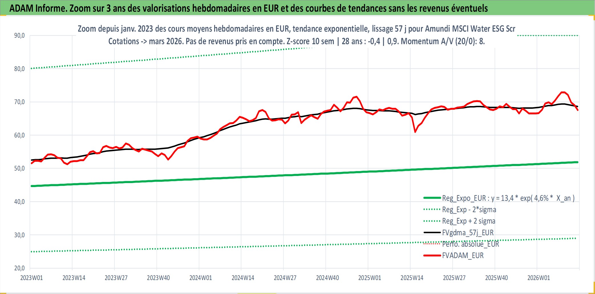 Site dédié aux investisseursPage dédiée sur site financeAnalyse des valorisations hebdomadaires du fonds Amundi MSCI Water ESG Screened UCITS ETF Dist. Cet actif est cote en EUR. Les valorisations couvrent les semaines 1997W01 a 2026W13. Les revenus de cet actif financier sont pris en compte depuis la semaine 1997W28. La note ESG de cet actif n'est pas connue.