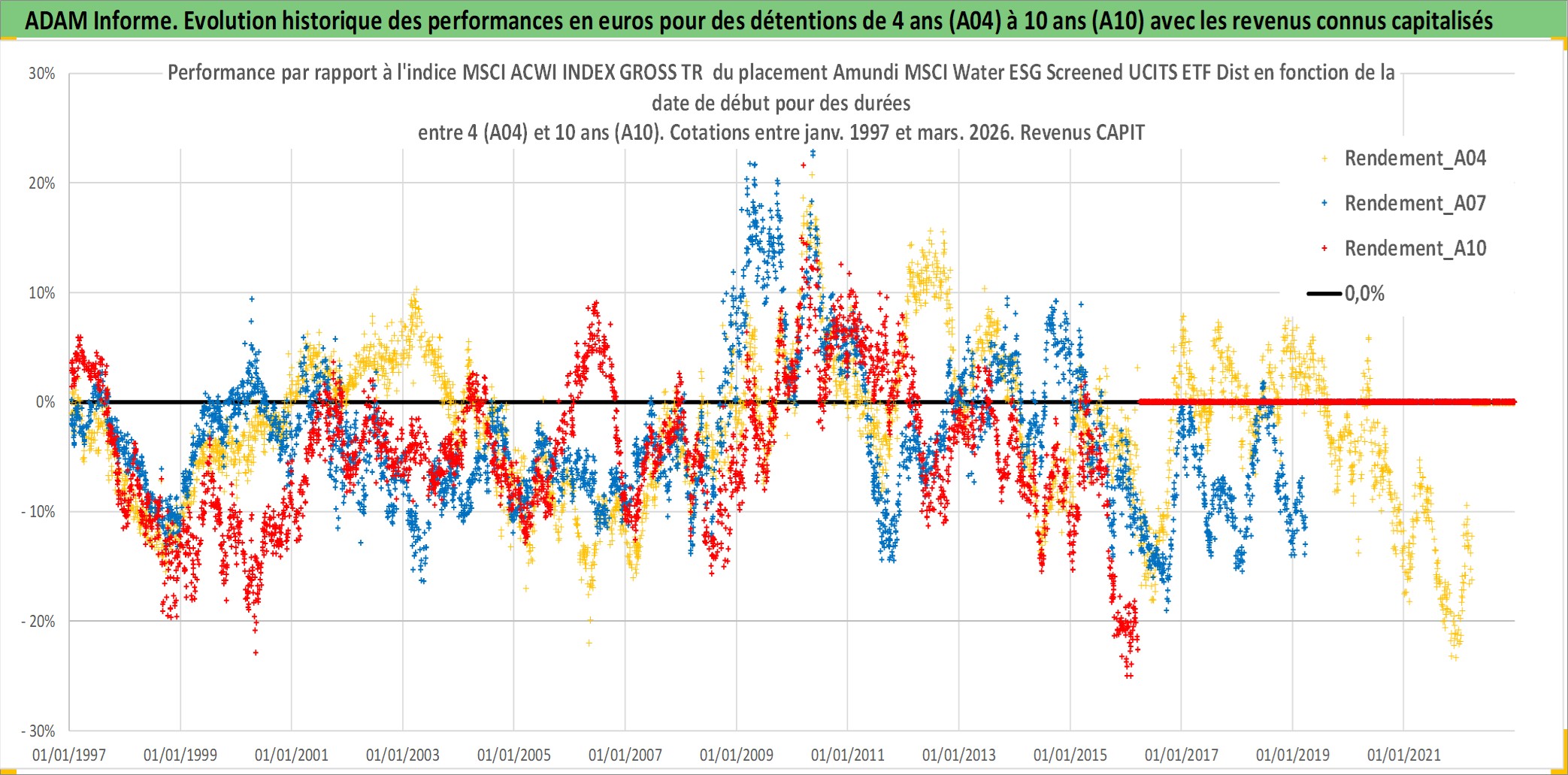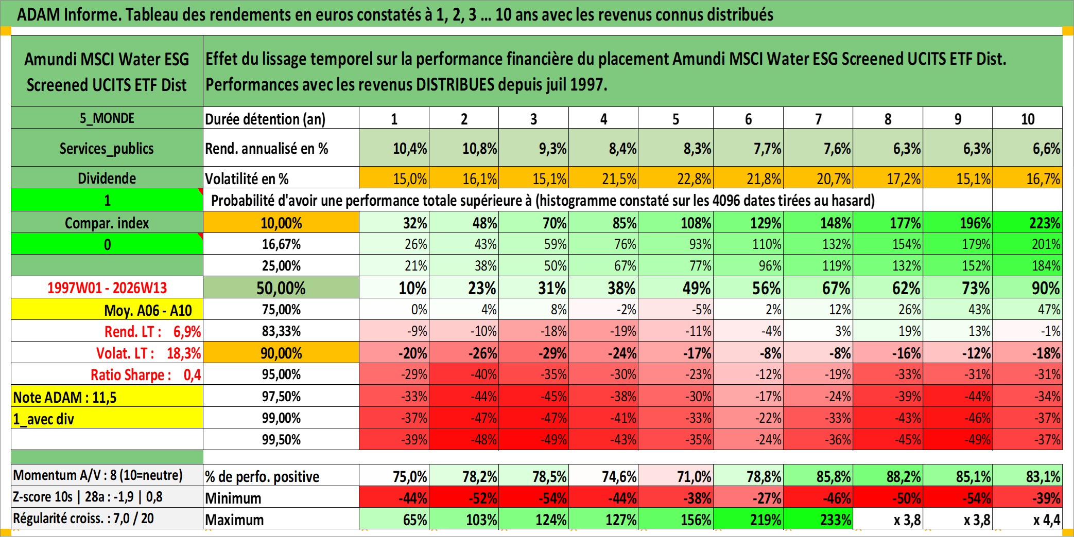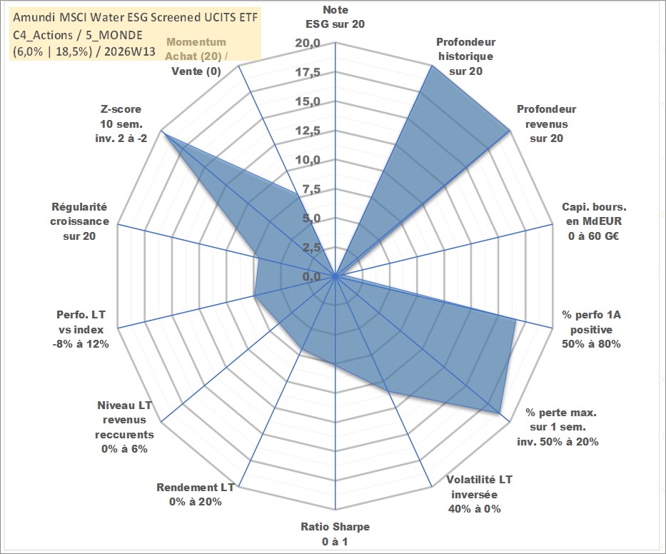 Site dédié aux investisseursPage dédiée sur site financeAnalyse des valorisations hebdomadaires du fonds Amundi MSCI Water ESG Screened UCITS ETF Dist. Cet actif est cote en EUR. Les valorisations couvrent les semaines 1997W01 a 2026W13. Les revenus de cet actif financier sont pris en compte depuis la semaine 1997W28. La note ESG de cet actif n'est pas connue.