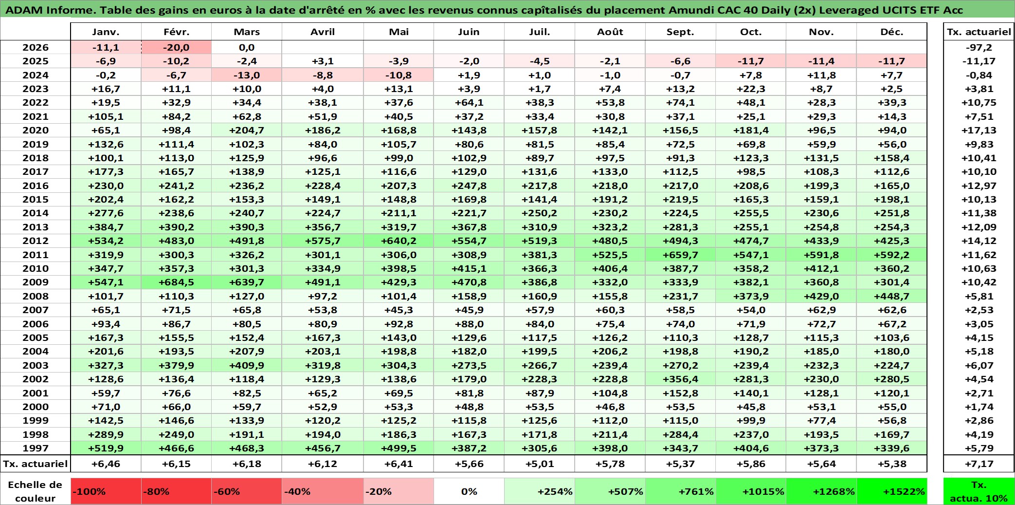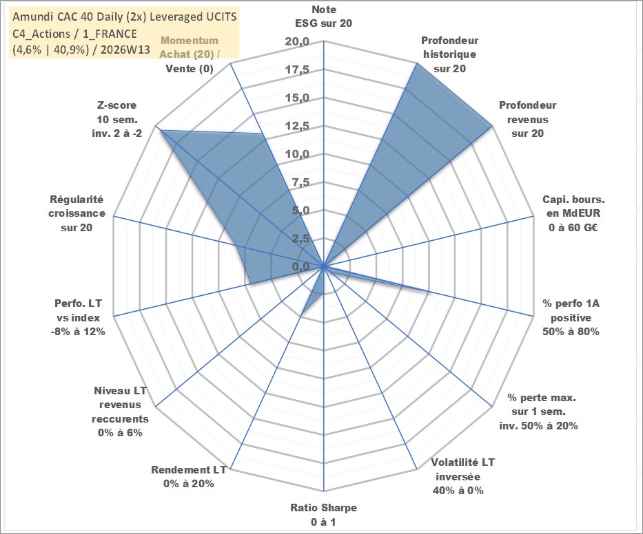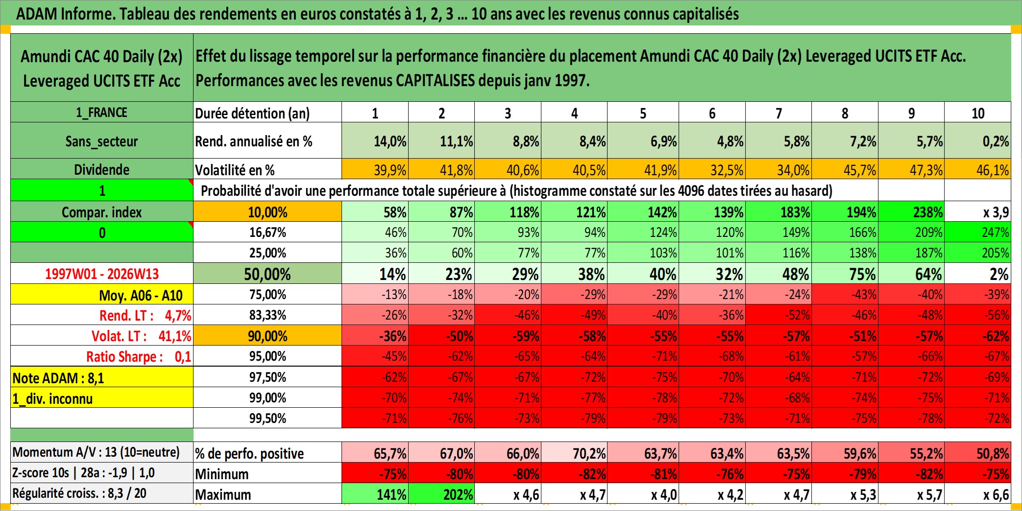 Site dédié aux investisseursPage dédiée sur site financeAnalyse des valorisations hebdomadaires du fonds Amundi CAC 40 Daily (2x) Leveraged UCITS ETF Acc. Cet actif est cote en EUR. Les valorisations couvrent les semaines 1997W01 a 2026W13. Les revenus de cet actif financier sont pris en compte depuis la semaine 1997W01. La note ESG de cet actif n'est pas connue.
