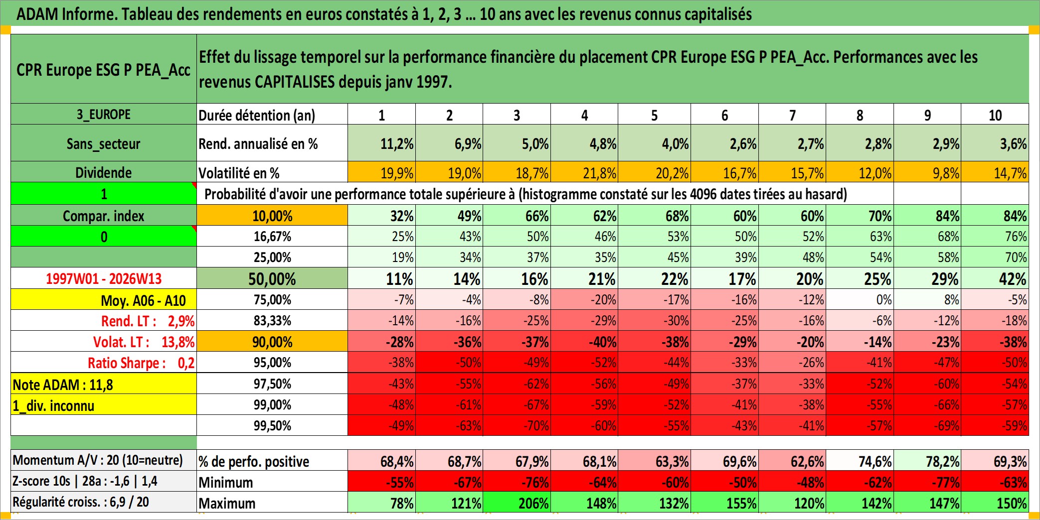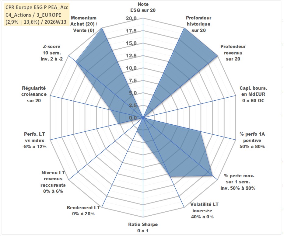 Site dédié aux investisseursPage dédiée sur site financeAnalyse des valorisations hebdomadaires du fonds CPR Europe ESG P PEA_Acc. Cet actif est cote en EUR. Les valorisations couvrent les semaines 1997W01 a 2026W13. Les revenus de cet actif financier sont pris en compte depuis la semaine 1997W01. La note ESG de cet actif n'est pas connue.