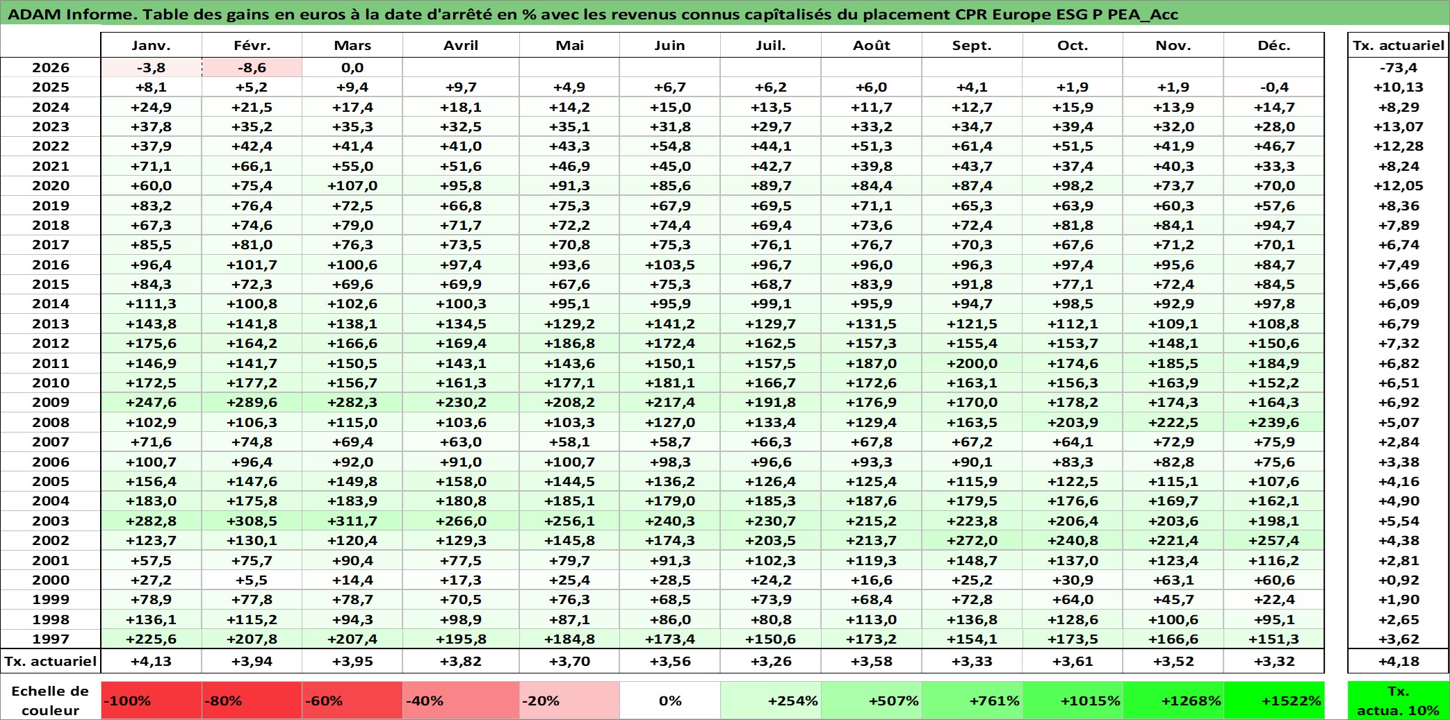 Dernière perfo 10 ans en %