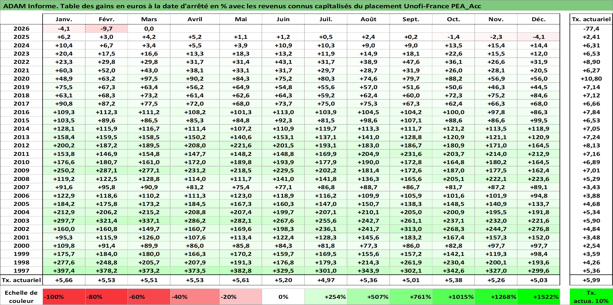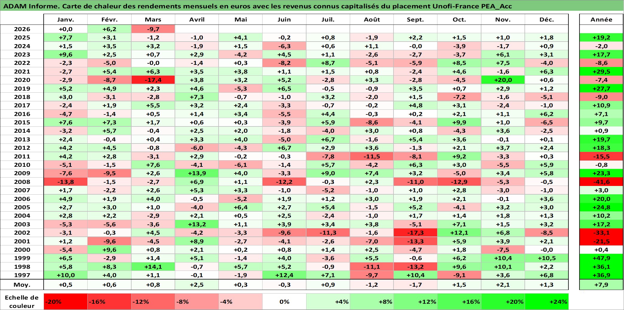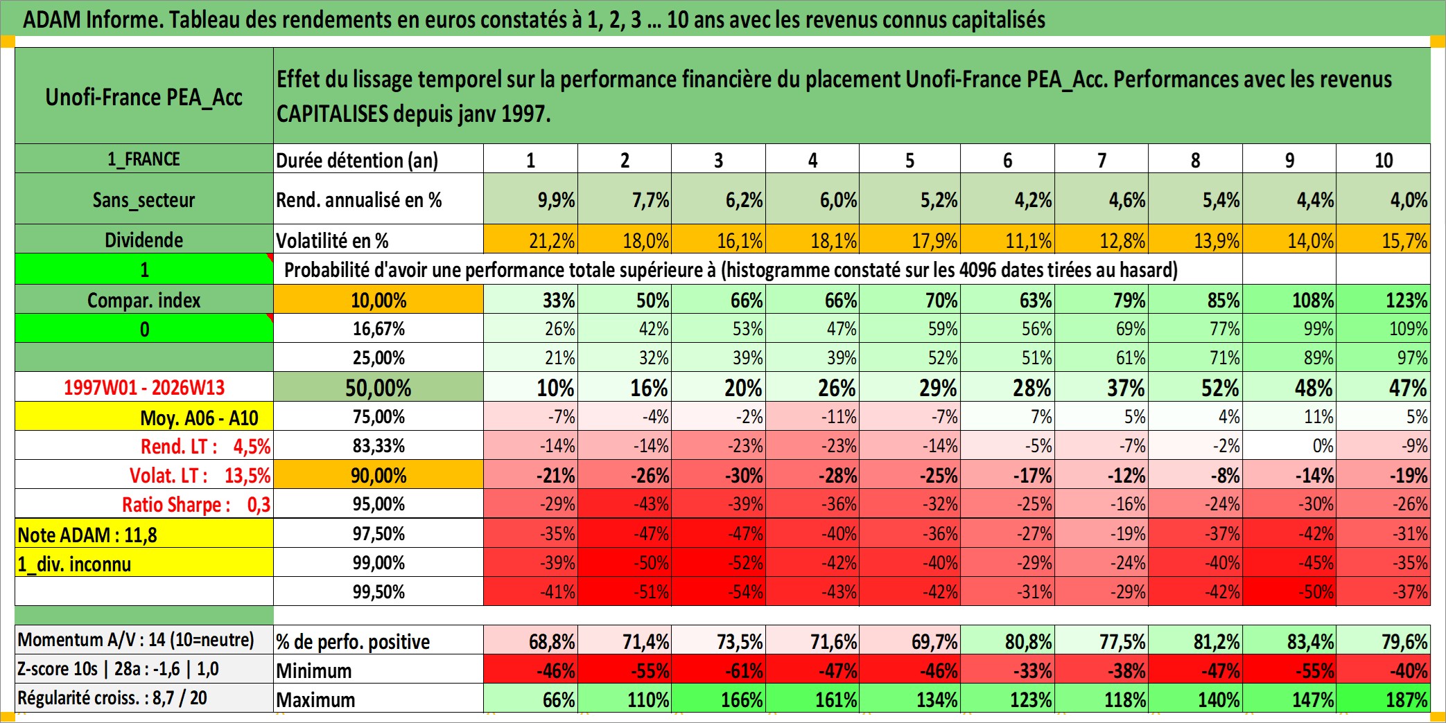 Site dédié aux investisseursPage dédiée sur site financeAnalyse des valorisations hebdomadaires du fonds Unofi-France PEA_Acc. Cet actif est cote en EUR. Les valorisations couvrent les semaines 1997W01 a 2026W13. Les revenus de cet actif financier sont pris en compte depuis la semaine 1997W01. La note ESG de cet actif n'est pas connue.