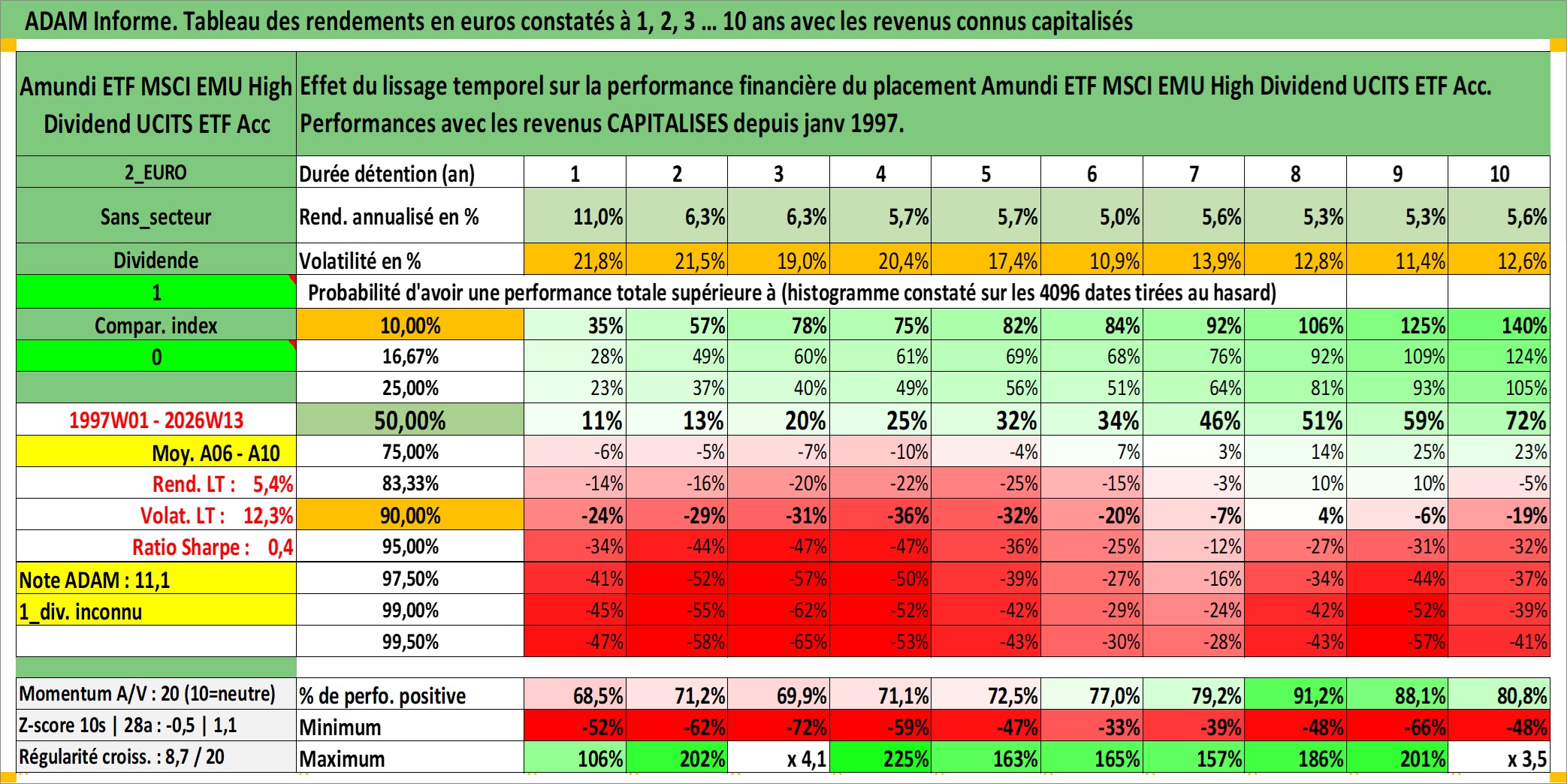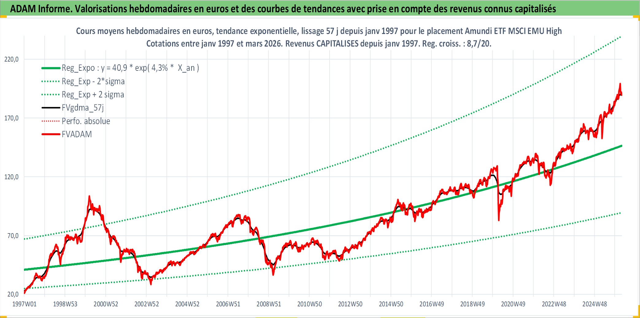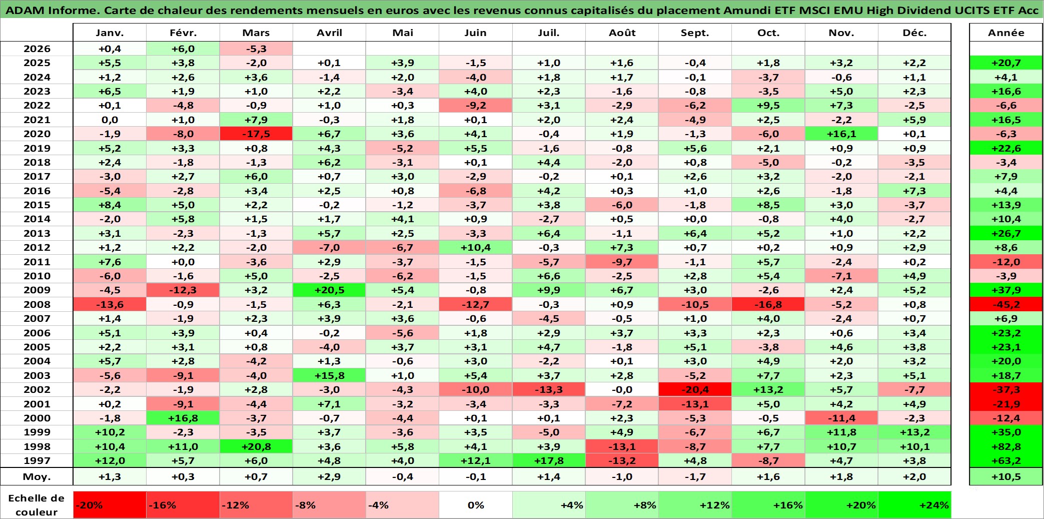 Site dédié aux investisseursPage dédiée sur site financeAnalyse des valorisations hebdomadaires du fonds Amundi ETF MSCI EMU High Dividend UCITS ETF Acc. Cet actif est cote en EUR. Les valorisations couvrent les semaines 1997W01 a 2026W13. Les revenus de cet actif financier sont pris en compte depuis la semaine 1997W01. La note ESG de cet actif n'est pas connue.