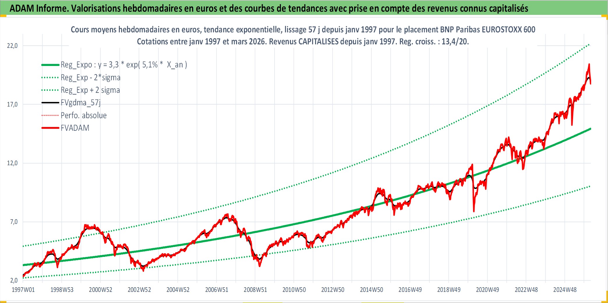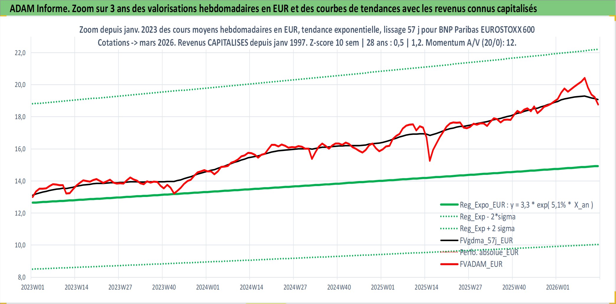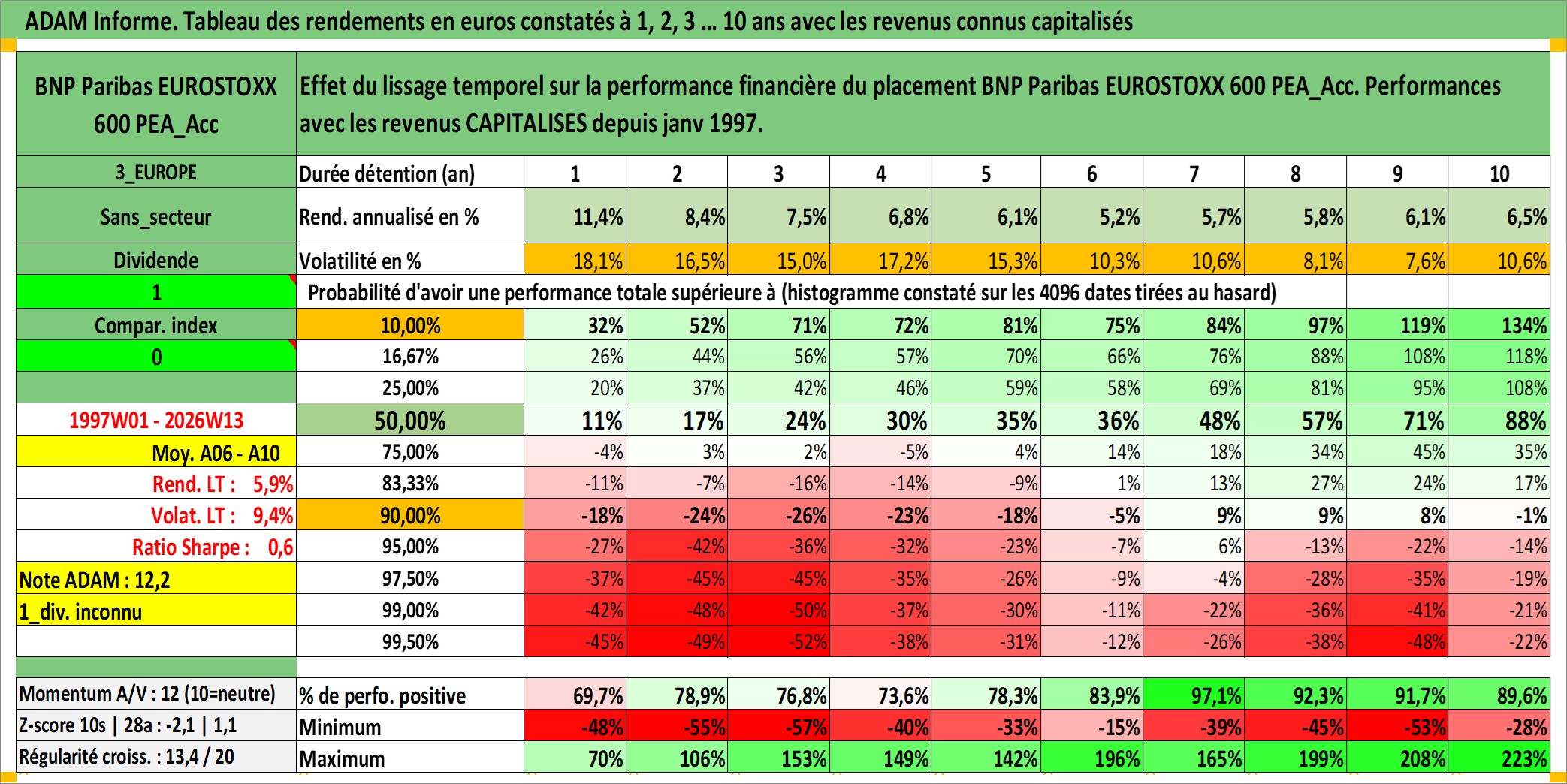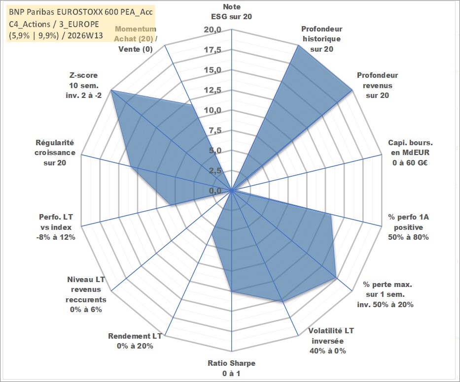Site dédié aux investisseursPage dédiée sur site financeAnalyse des valorisations hebdomadaires du fonds BNP Paribas EUROSTOXX 600 PEA_Acc. Cet actif est cote en EUR. Les valorisations couvrent les semaines 1997W01 a 2026W13. Les revenus de cet actif financier sont pris en compte depuis la semaine 1997W01. La note ESG de cet actif n'est pas connue.