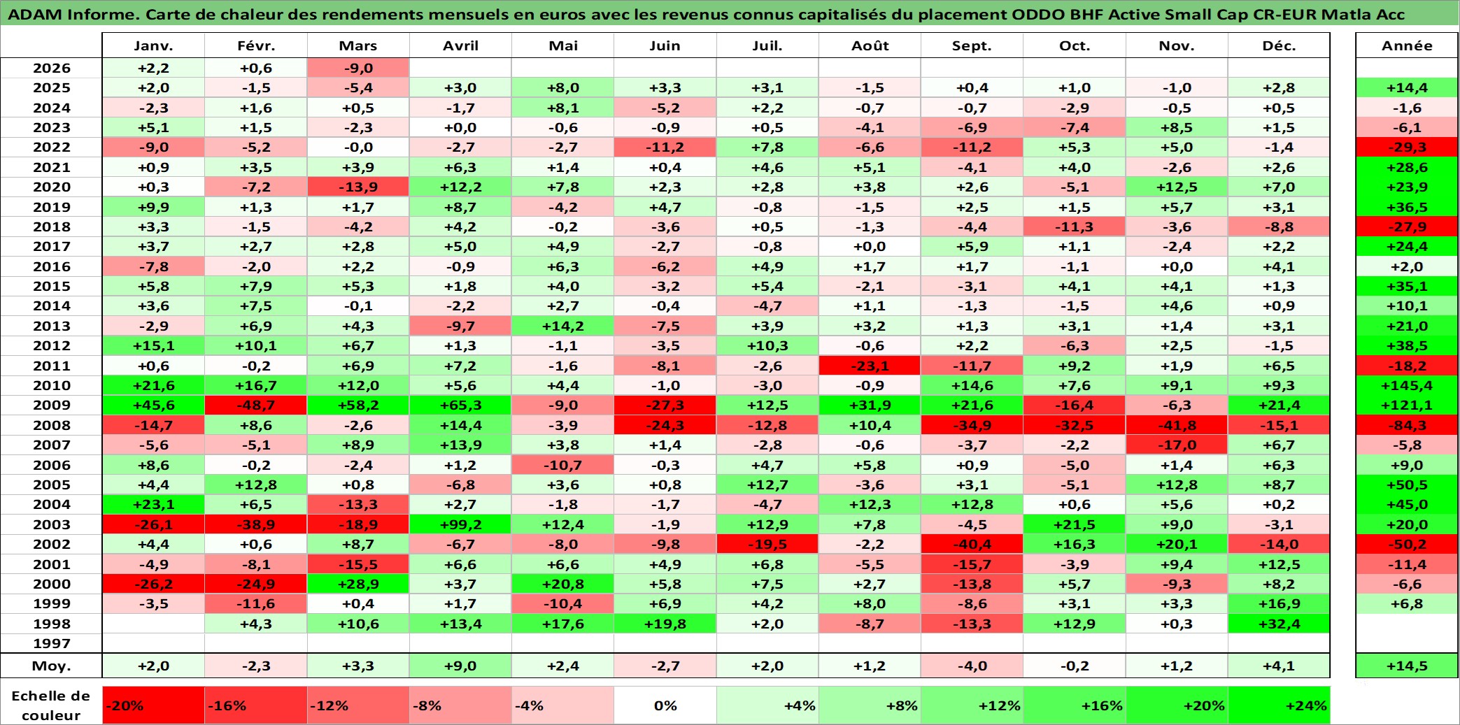 Site dédié aux investisseursPage dédiée sur site financeAnalyse des valorisations hebdomadaires du fonds ODDO BHF Active Small Cap CR-EUR Matla Acc. Cet actif est cote en EUR. Les valorisations couvrent les semaines 1998W01 a 2026W13. Les revenus de cet actif financier sont pris en compte depuis la semaine 1998W01. La note ESG de cet actif n'est pas connue.