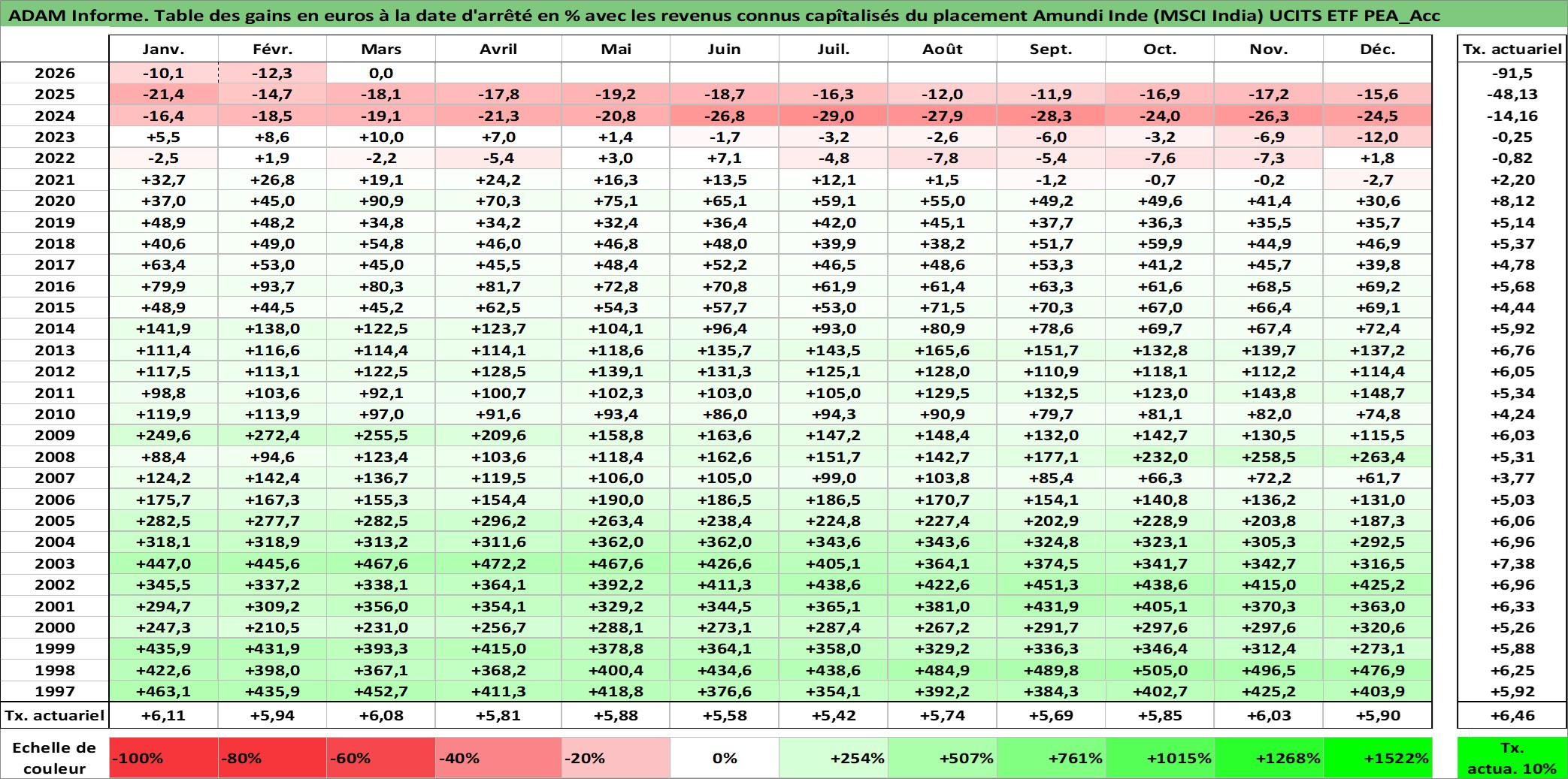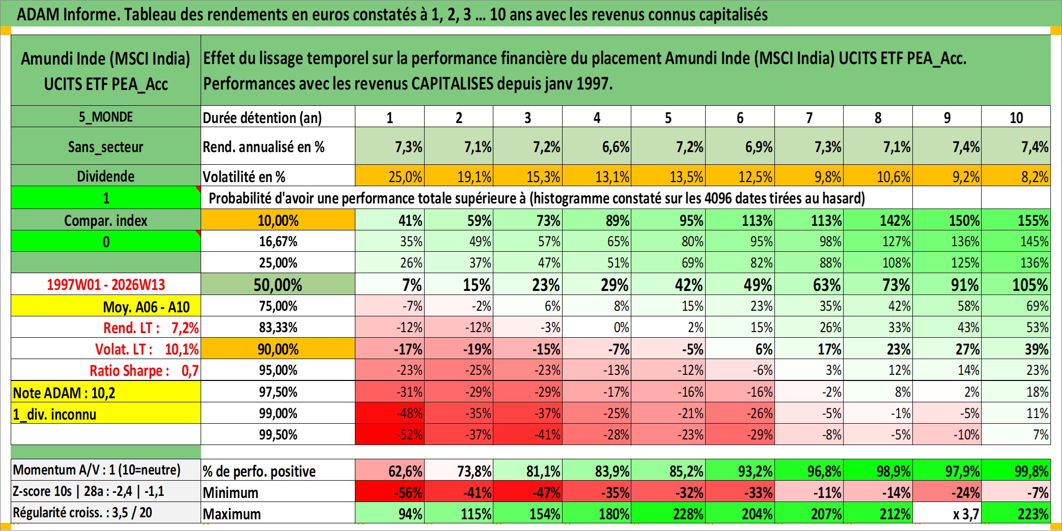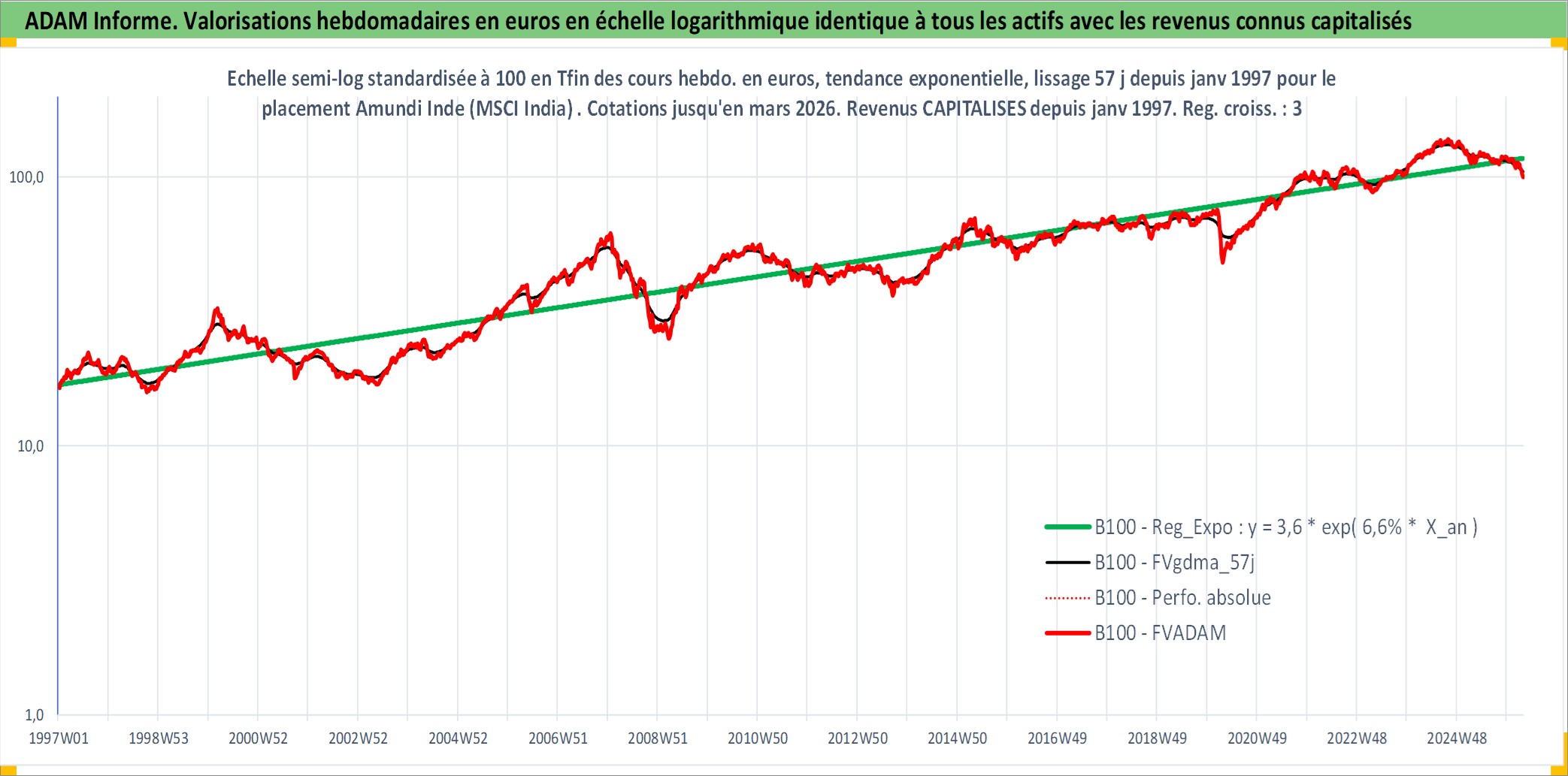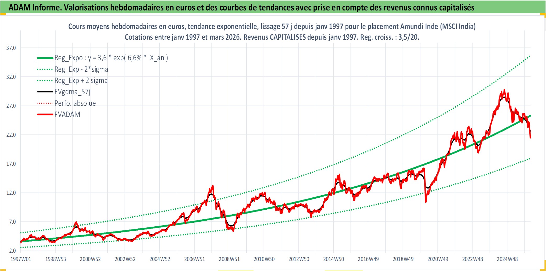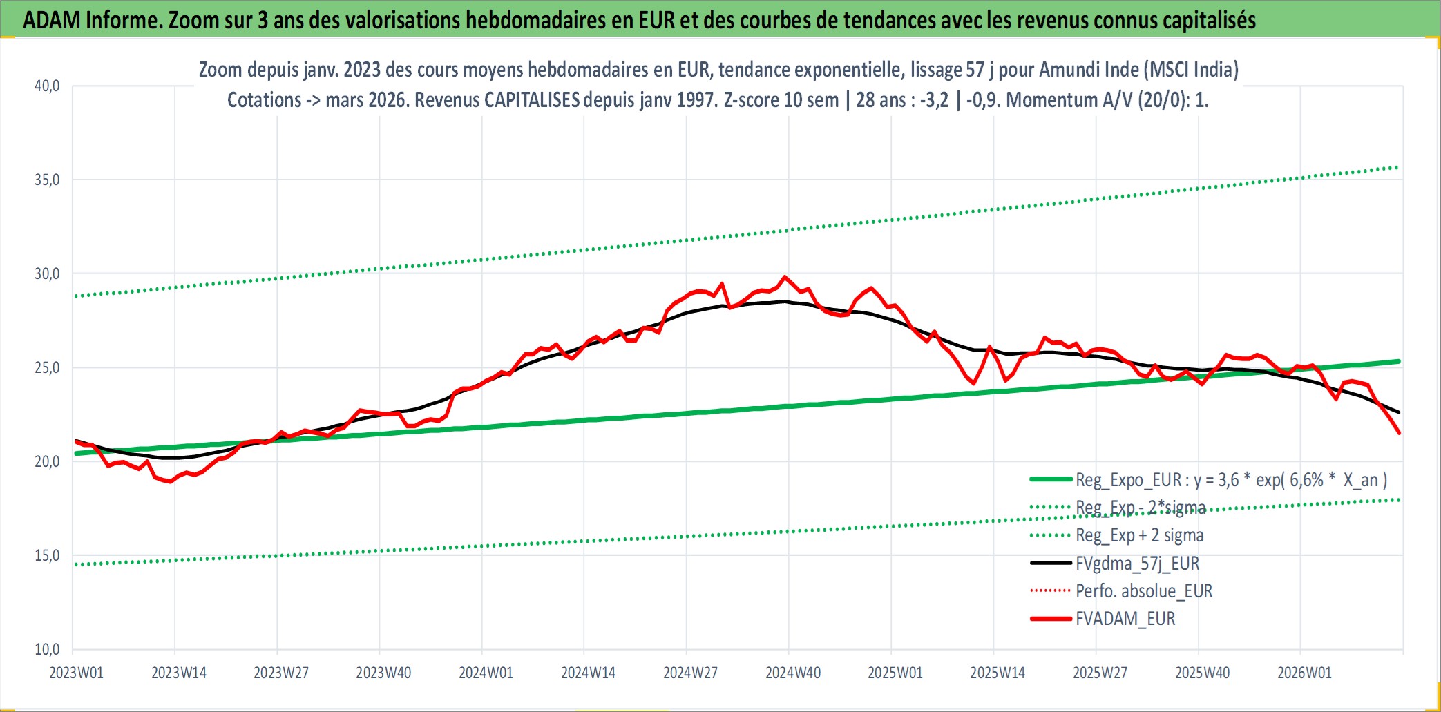 Site dédié aux investisseursPage dédiée sur site financeAnalyse des valorisations hebdomadaires du fonds Amundi Inde (MSCI India) UCITS ETF PEA_Acc. Cet actif est cote en EUR. Les valorisations couvrent les semaines 1997W01 a 2026W13. Les revenus de cet actif financier sont pris en compte depuis la semaine 1997W01. La note ESG de cet actif n'est pas connue.
