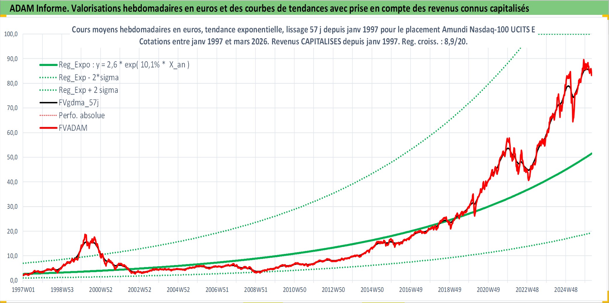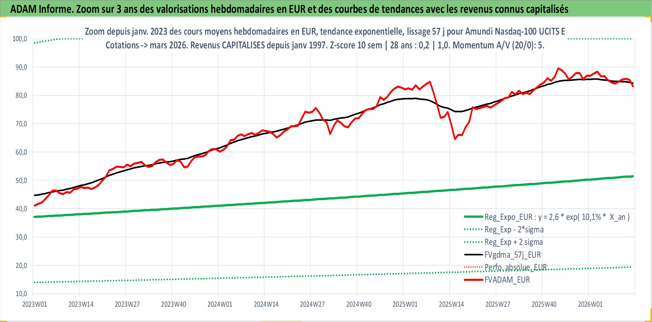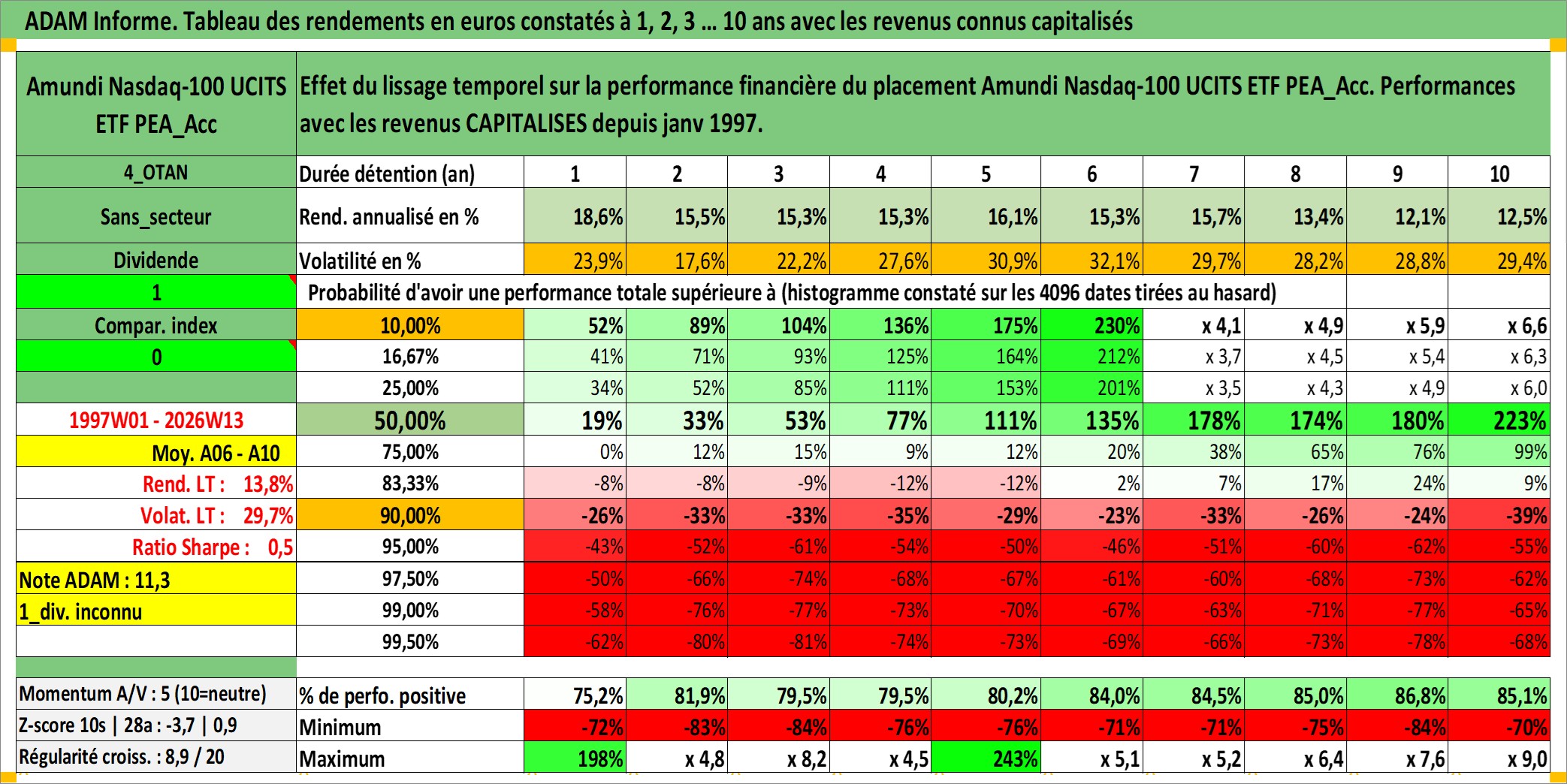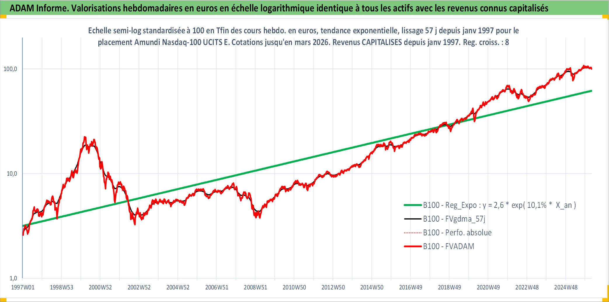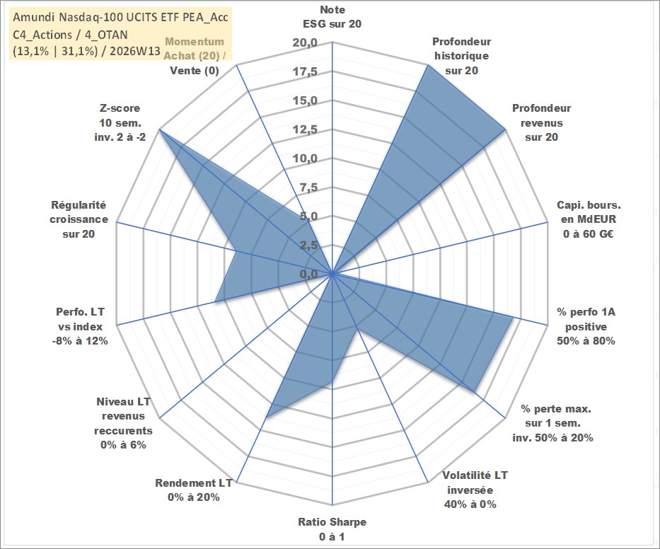 Site dédié aux investisseursPage dédiée sur site financeAnalyse des valorisations hebdomadaires du fonds Amundi Nasdaq-100 UCITS ETF PEA_Acc. Cet actif est cote en EUR. Les valorisations couvrent les semaines 1997W01 a 2026W13. Les revenus de cet actif financier sont pris en compte depuis la semaine 1997W01. La note ESG de cet actif n'est pas connue.