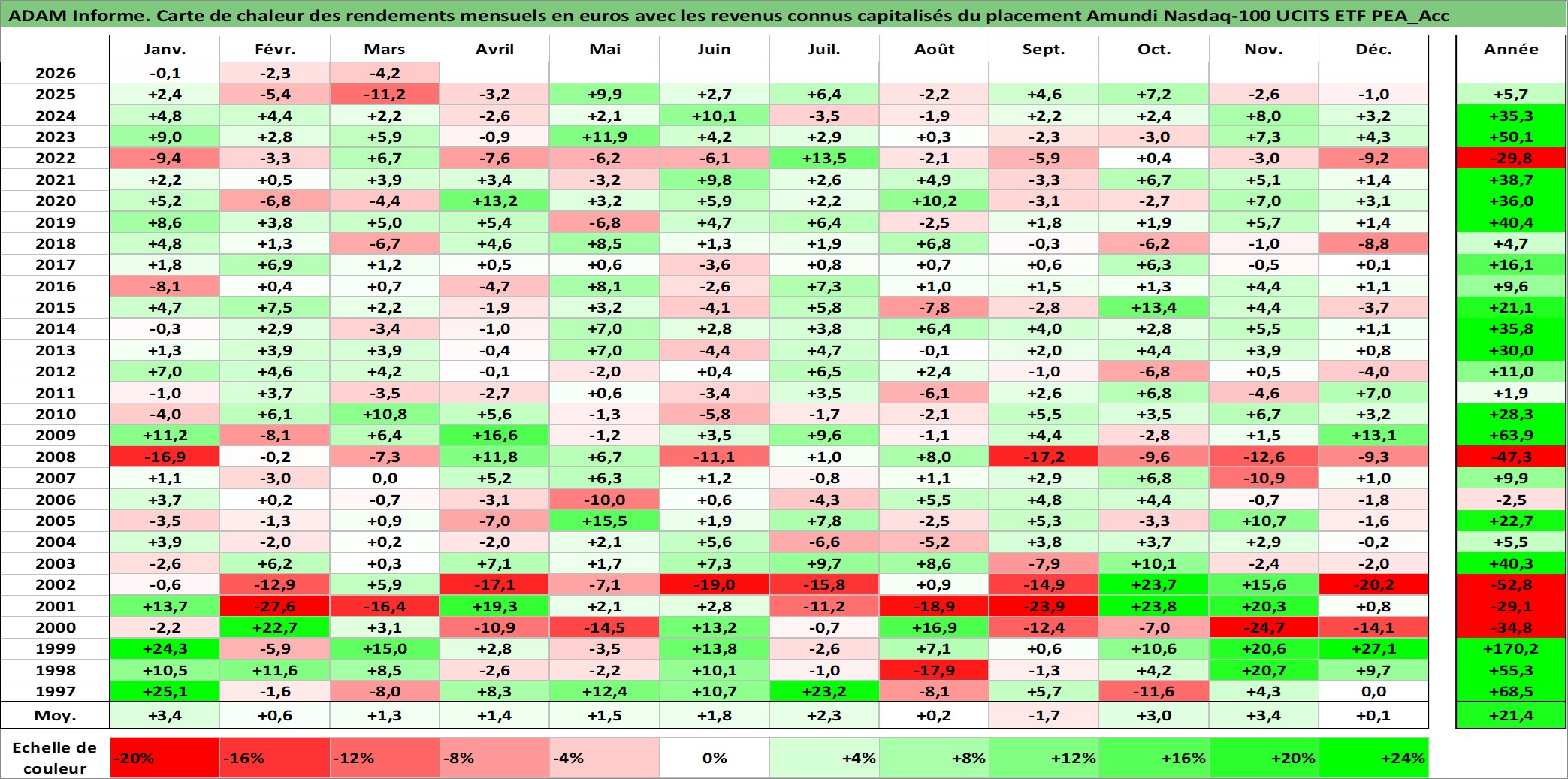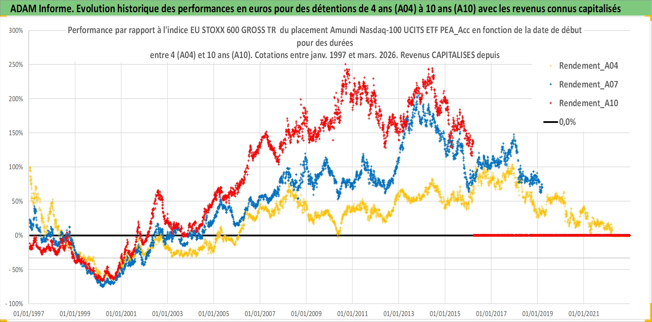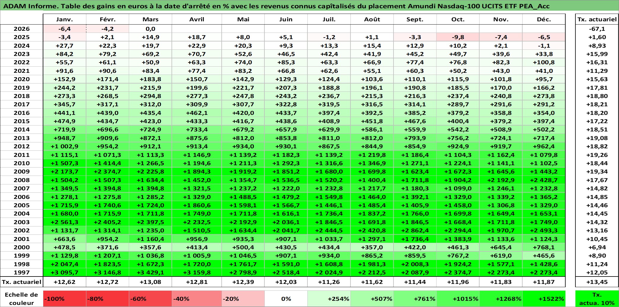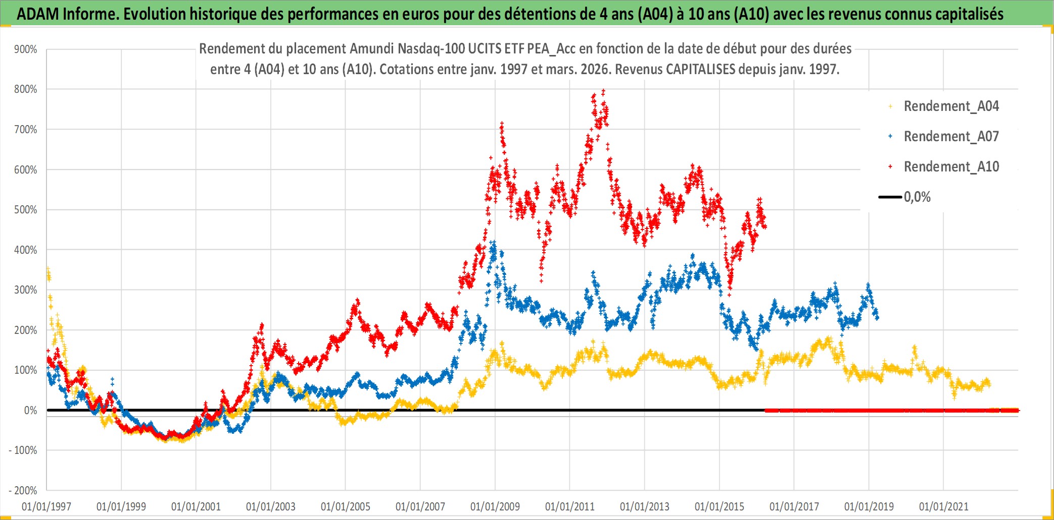 Site dédié aux investisseursPage dédiée sur site financeAnalyse des valorisations hebdomadaires du fonds Amundi Nasdaq-100 UCITS ETF PEA_Acc. Cet actif est cote en EUR. Les valorisations couvrent les semaines 1997W01 a 2026W13. Les revenus de cet actif financier sont pris en compte depuis la semaine 1997W01. La note ESG de cet actif n'est pas connue.