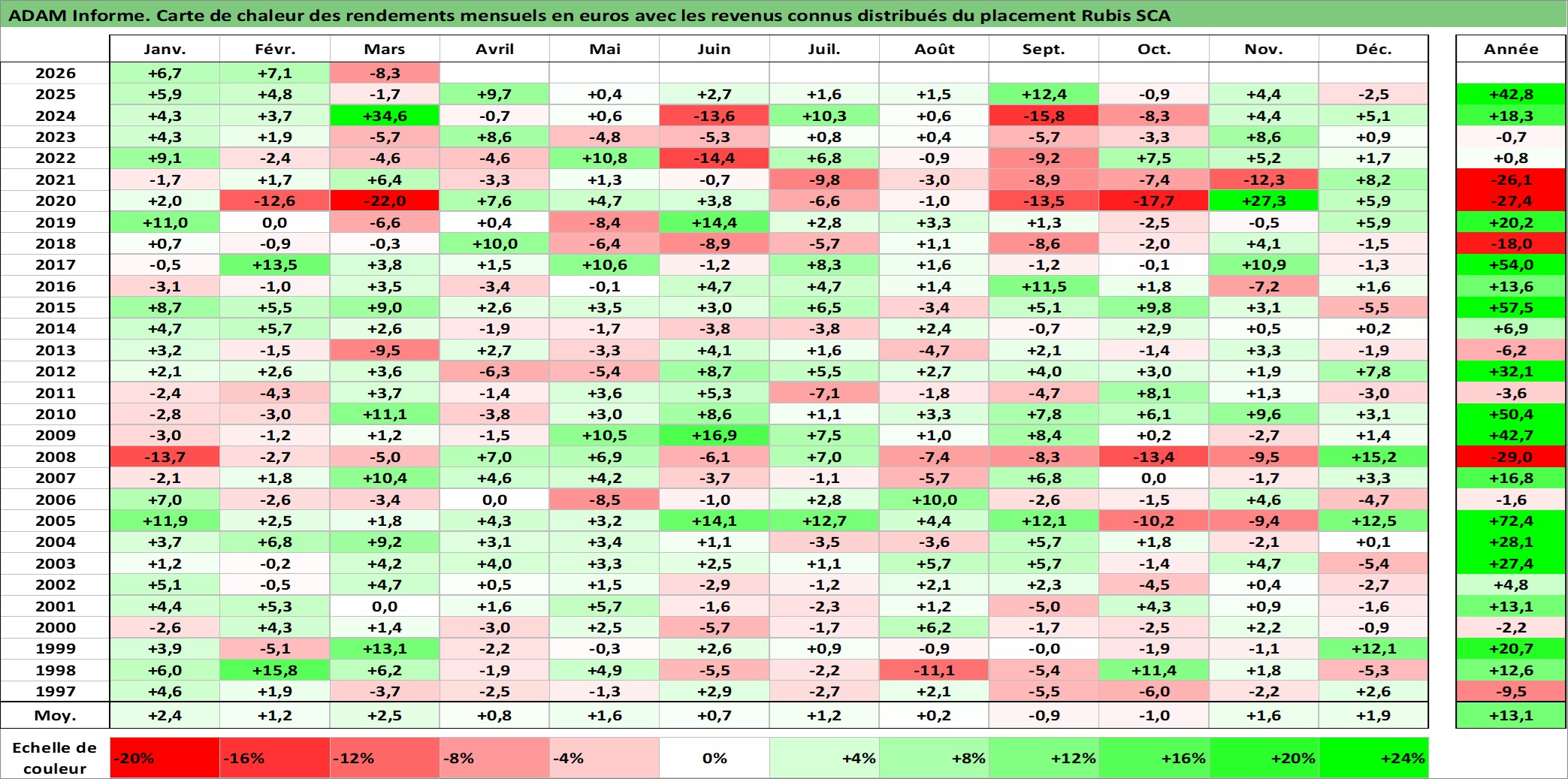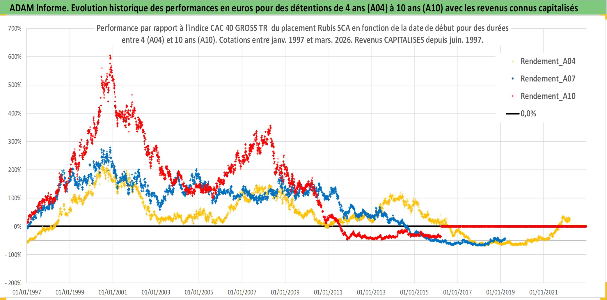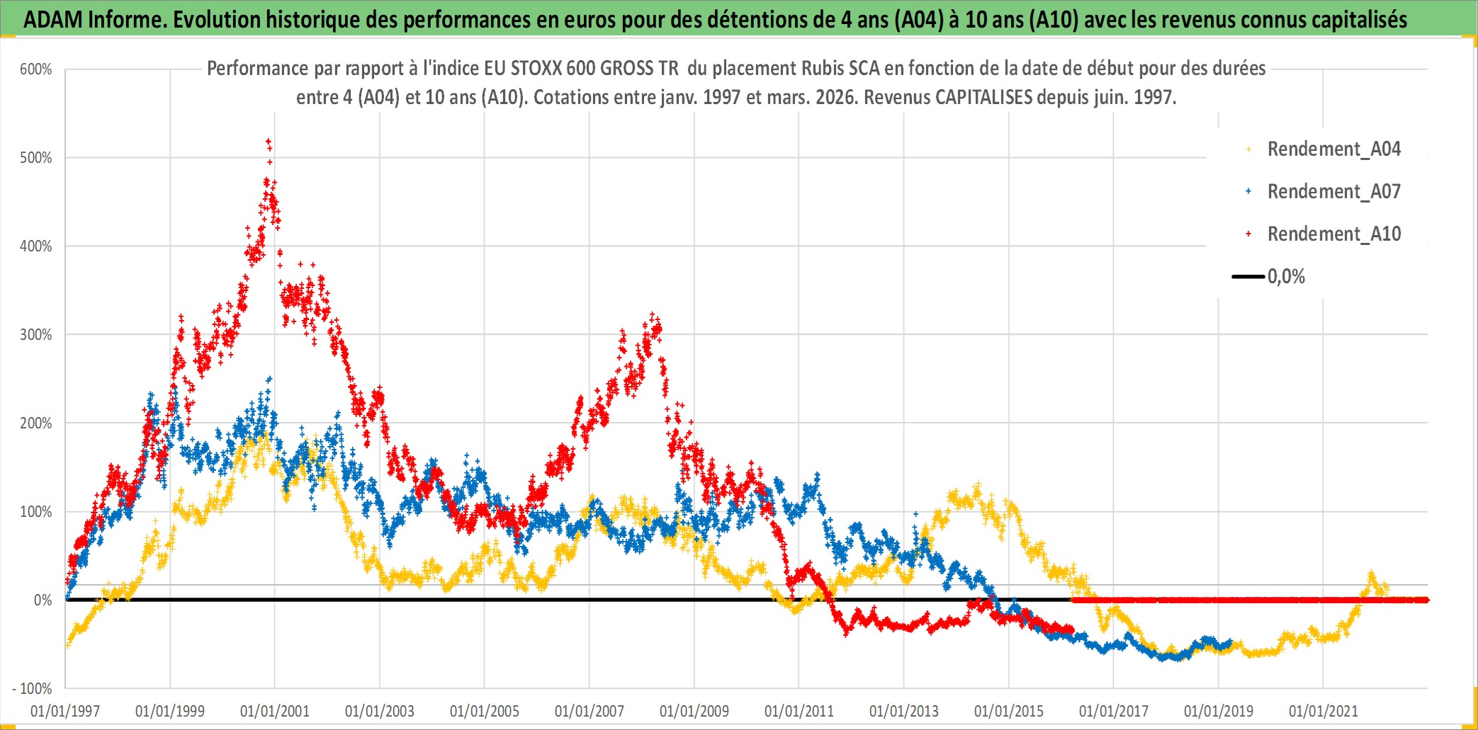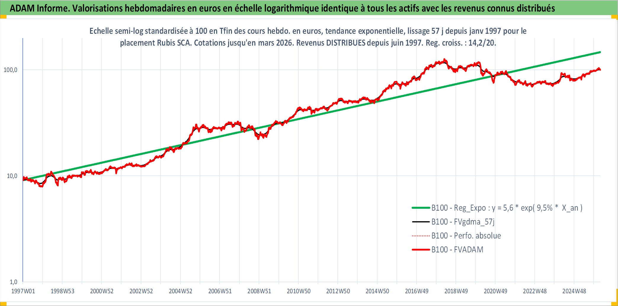 Site dédié aux investisseursPage dédiée sur site financeAnalyse des valorisations hebdomadaires de l'action Rubis SCA. Cet actif est cote en EUR. Les valorisations couvrent les semaines 1997W01 a 2026W13. Les revenus de cet actif financier sont pris en compte depuis la semaine 1997W26. La note ESG de cet actif n'est pas connue.