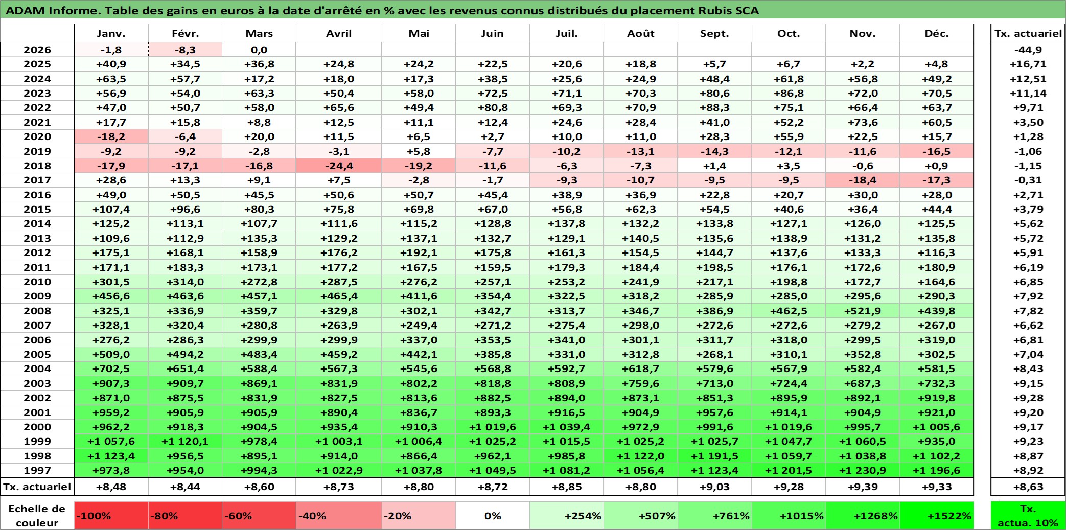 Dernière perfo 10 ans en %