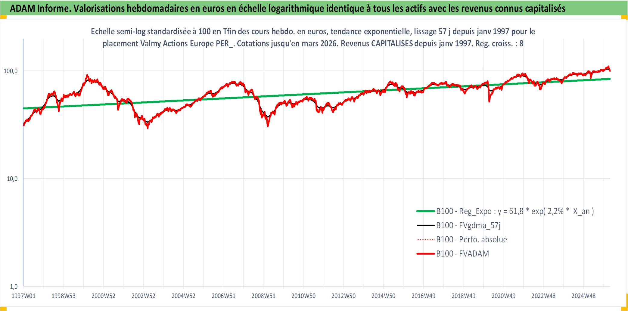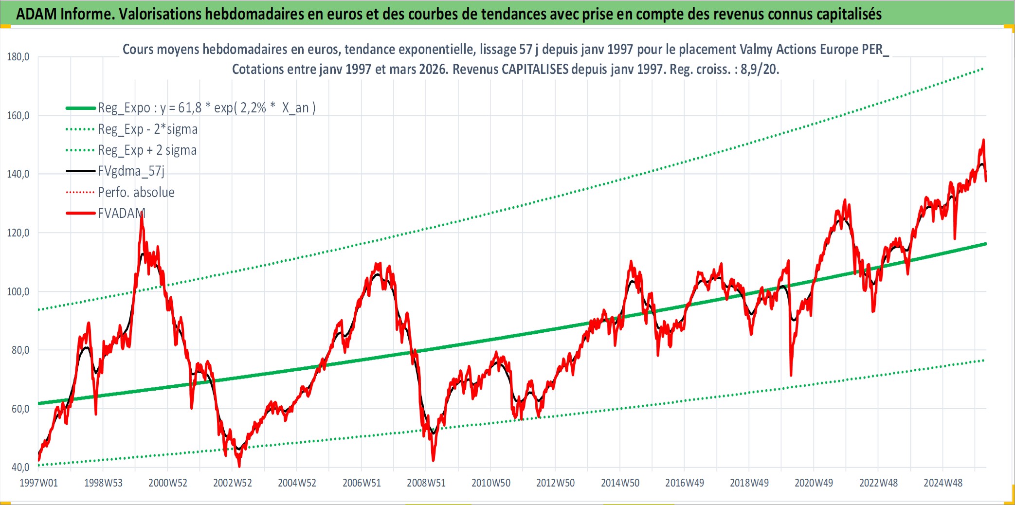 Site dédié aux investisseursPage dédiée sur site financeAnalyse des valorisations hebdomadaires du fonds Valmy Actions Europe PER_SG Acc. Cet actif est cote en EUR. Les valorisations couvrent les semaines 1997W01 a 2026W13. Les revenus de cet actif financier sont pris en compte depuis la semaine 1997W01. La note ESG de cet actif n'est pas connue.