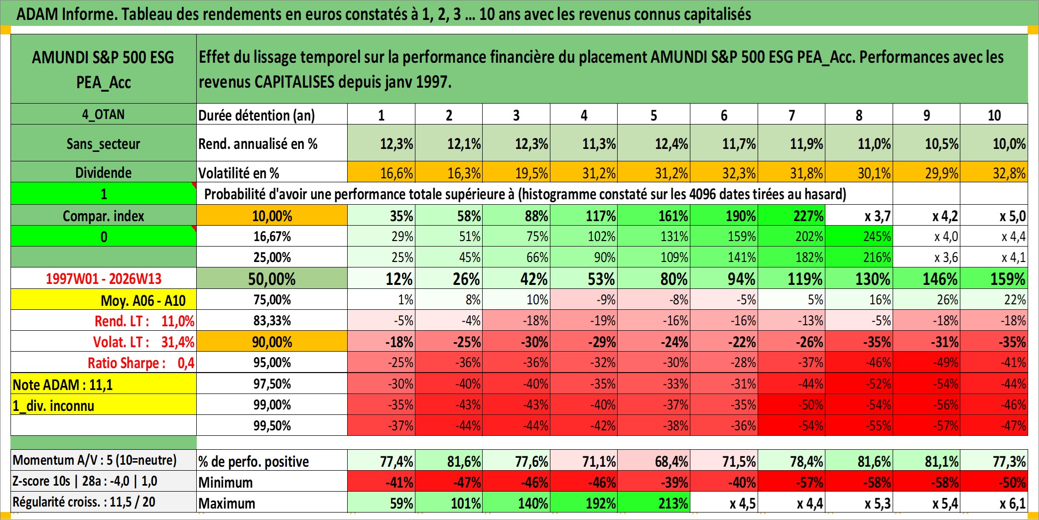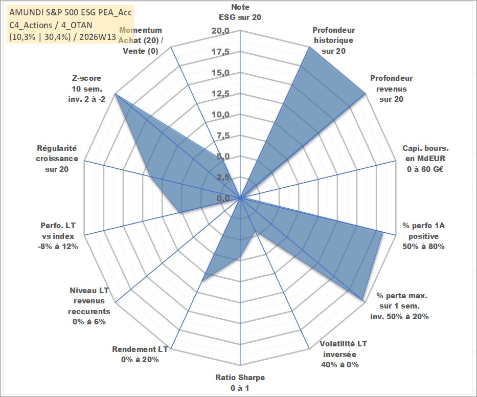Site dédié aux investisseursPage dédiée sur site financeAnalyse des valorisations hebdomadaires du fonds AMUNDI S&P 500 ESG PEA_Acc. Cet actif est cote en EUR. Les valorisations couvrent les semaines 1997W01 a 2026W13. Les revenus de cet actif financier sont pris en compte depuis la semaine 1997W01. La note ESG de cet actif n'est pas connue.