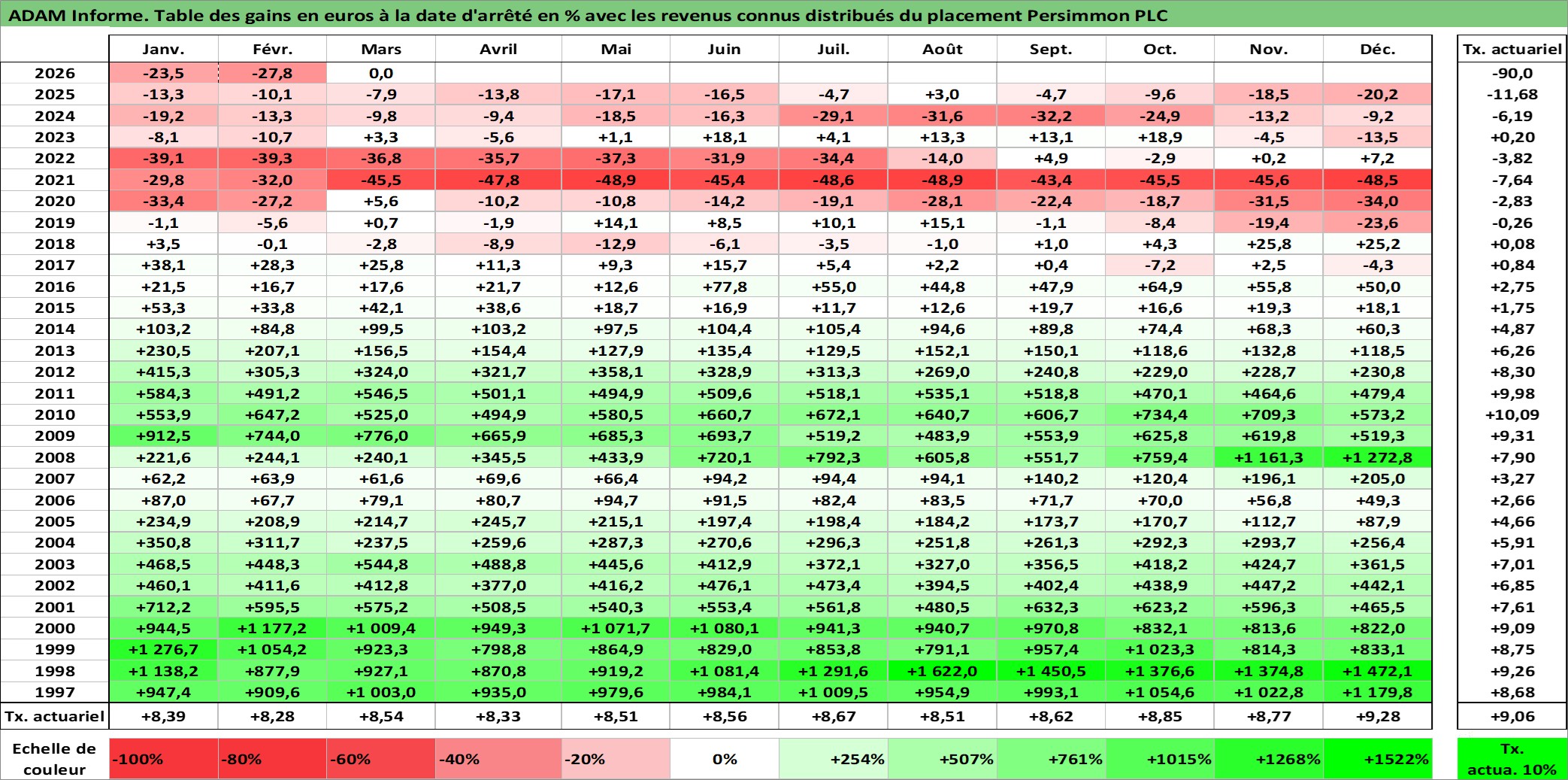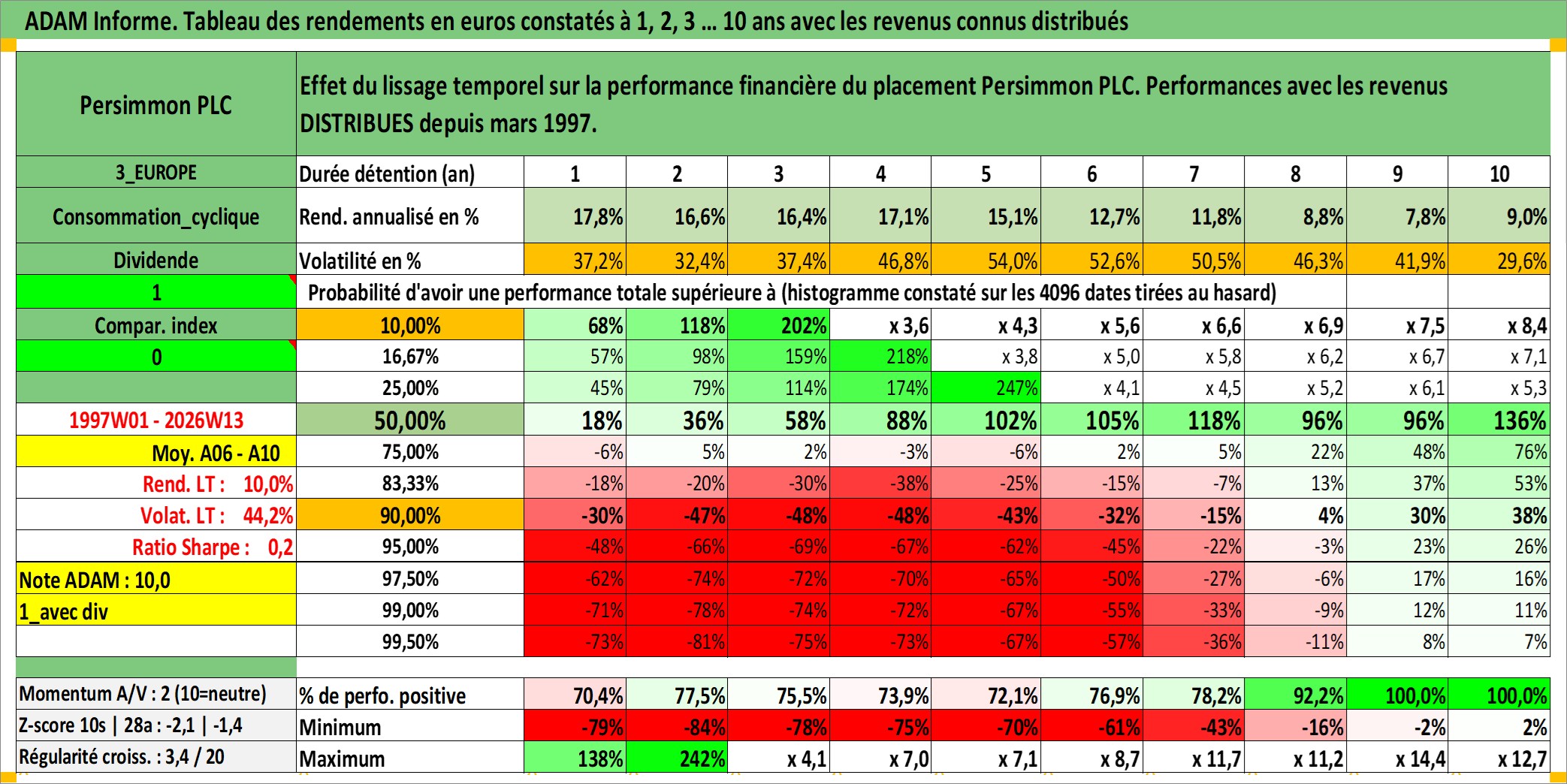 Dernière perfo 10 ans en %