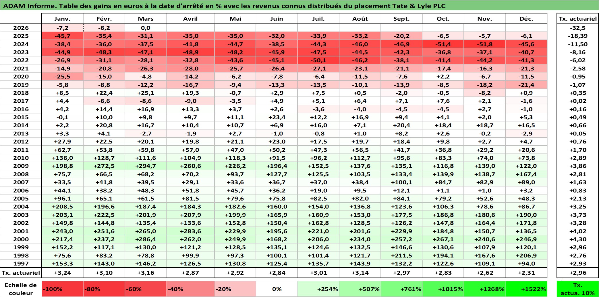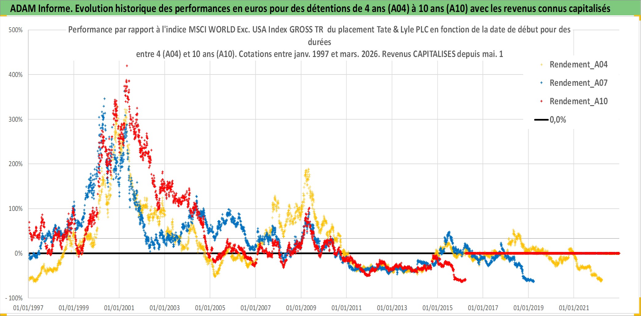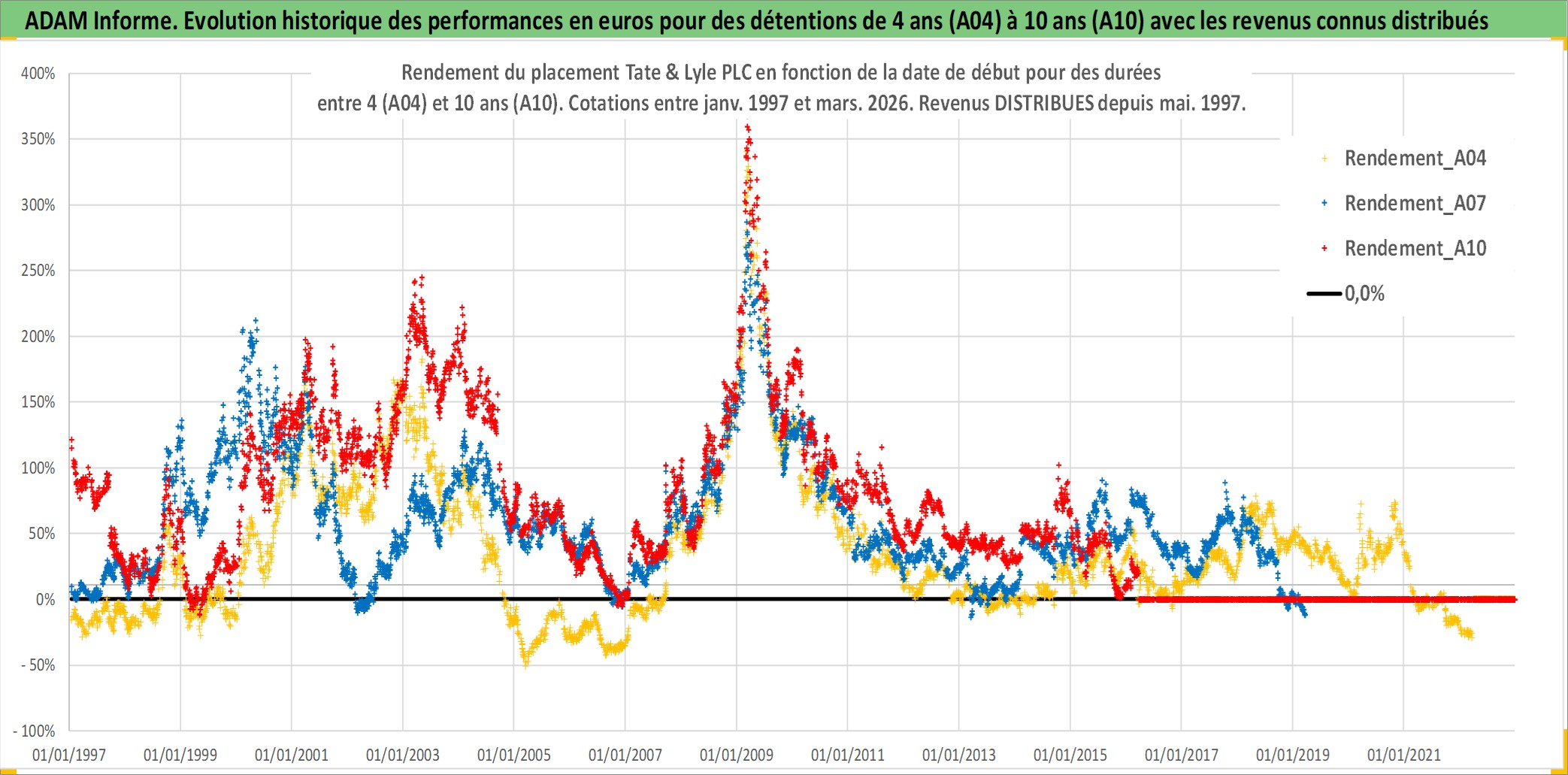Site dédié aux investisseursPage dédiée sur site financeAnalyse des valorisations hebdomadaires de l'action Tate & Lyle PLC. Cet actif est cote en GBX. Les valorisations sont en contrevaleur EURO et couvrent les semaines 1997W01 a 2026W13. Les revenus de cet actif financier sont pris en compte depuis la semaine 1997W21. La note ESG de cet actif n'est pas connue.