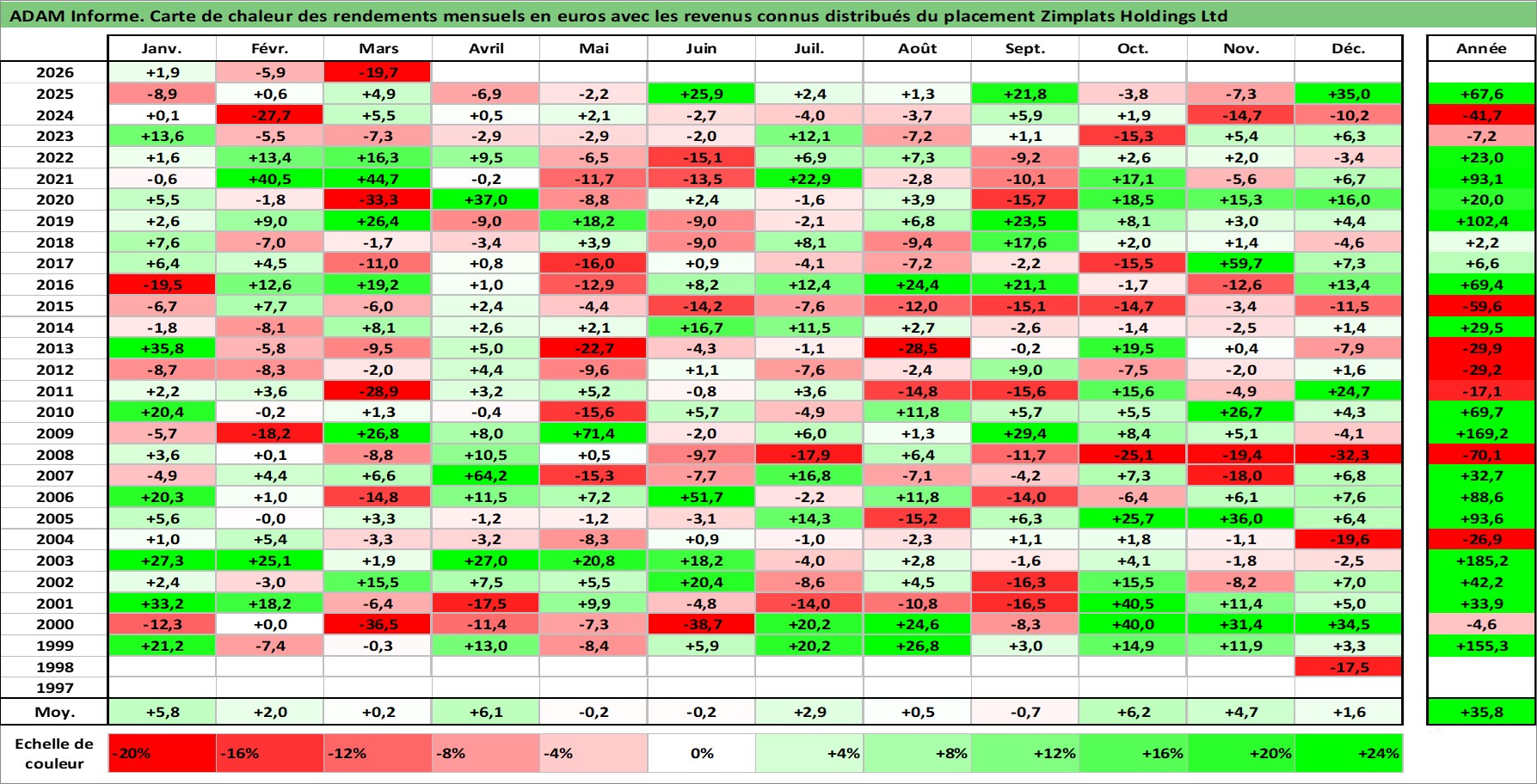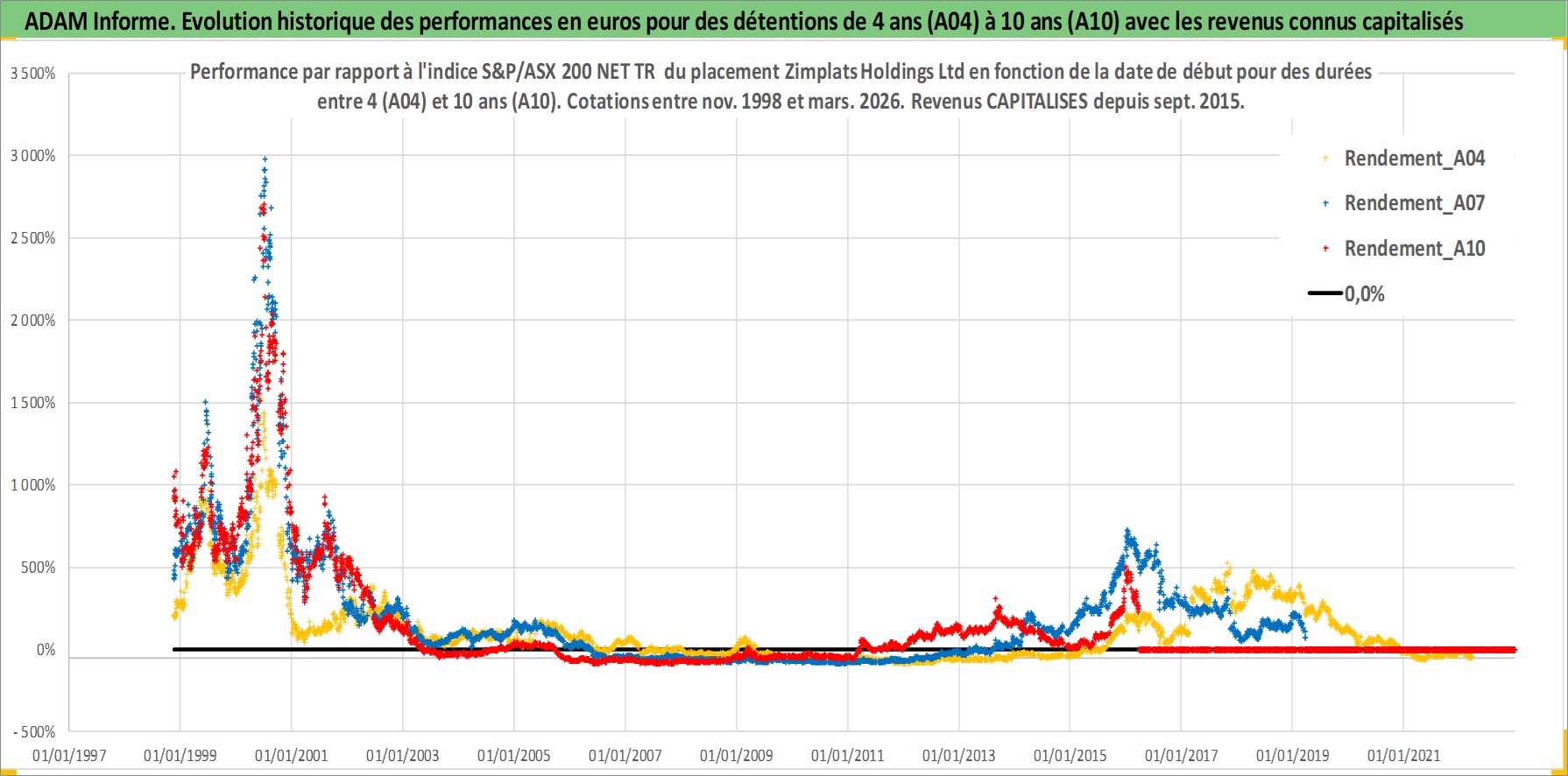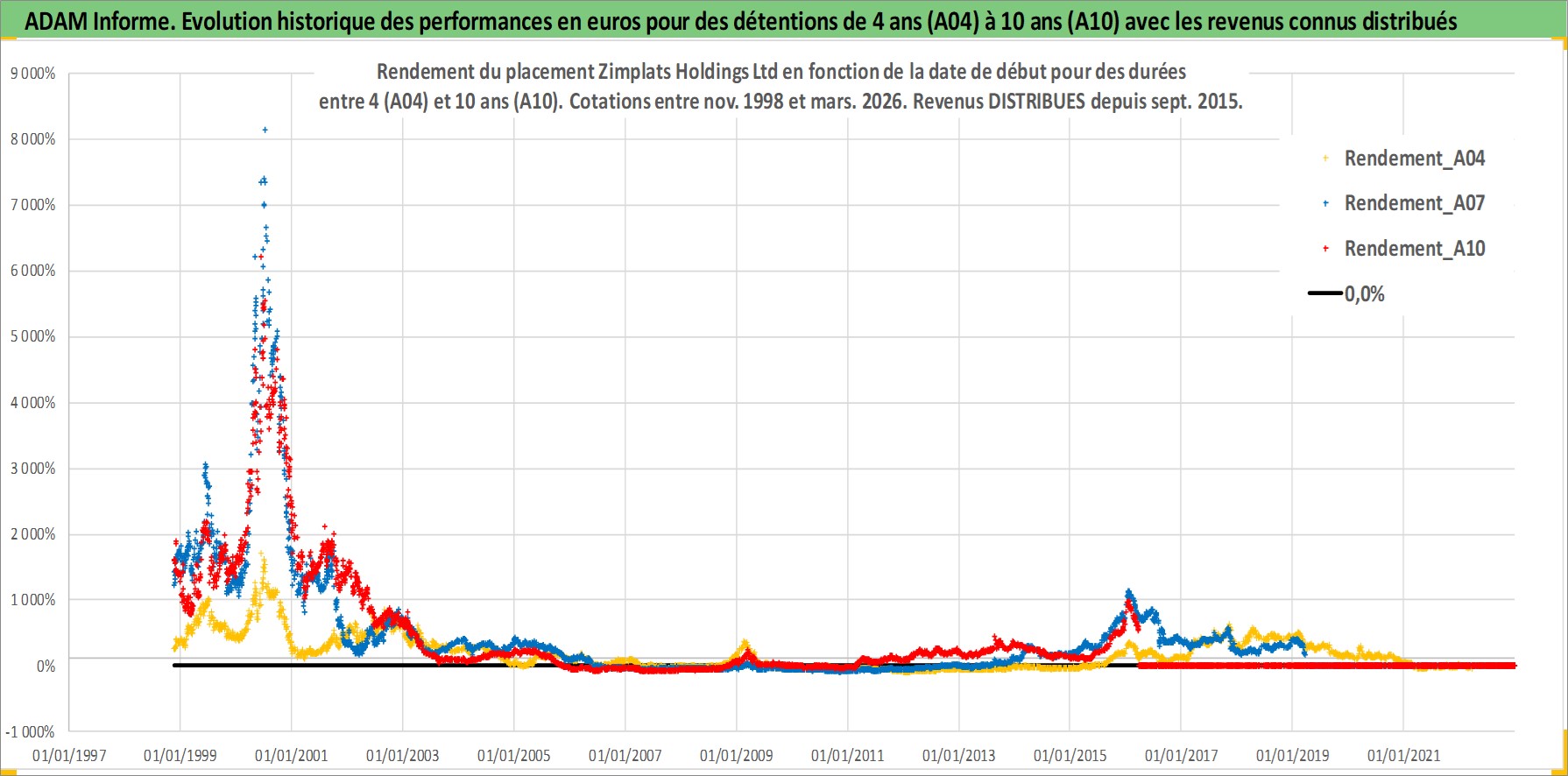 Site dédié aux investisseursPage dédiée sur site financeAnalyse des valorisations hebdomadaires de l'action Zimplats Holdings Ltd. Cet actif est cote en AUD. Les valorisations sont en contrevaleur EURO et couvrent les semaines 1998W45 a 2026W13. Les revenus de cet actif financier sont pris en compte depuis la semaine 2015W37. La note ESG de cet actif n'est pas connue.