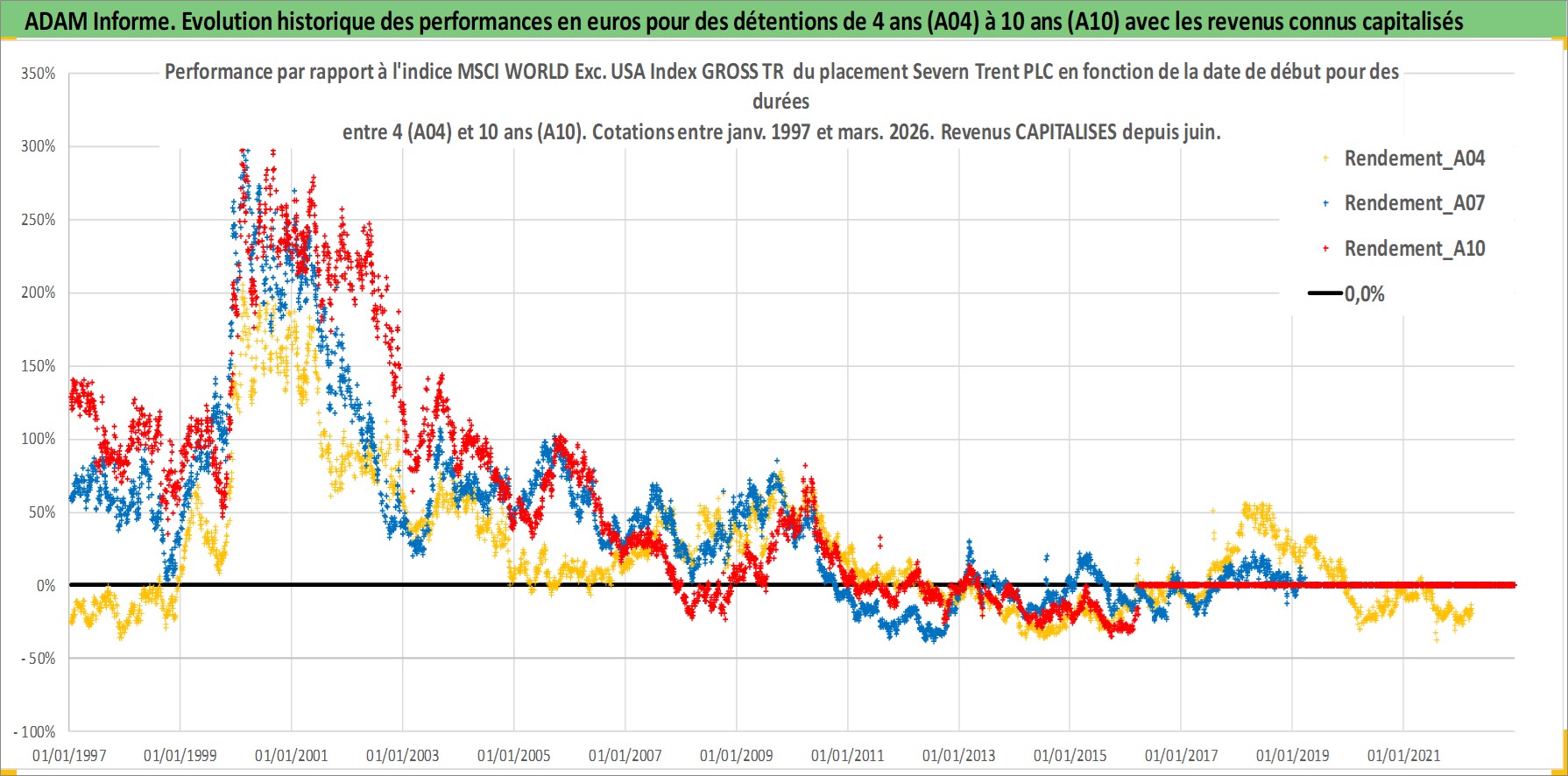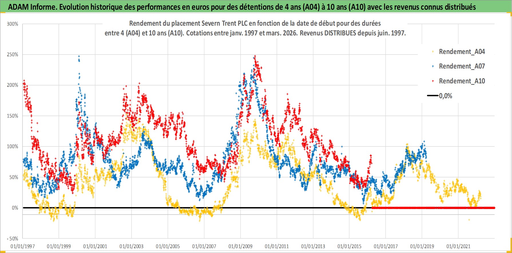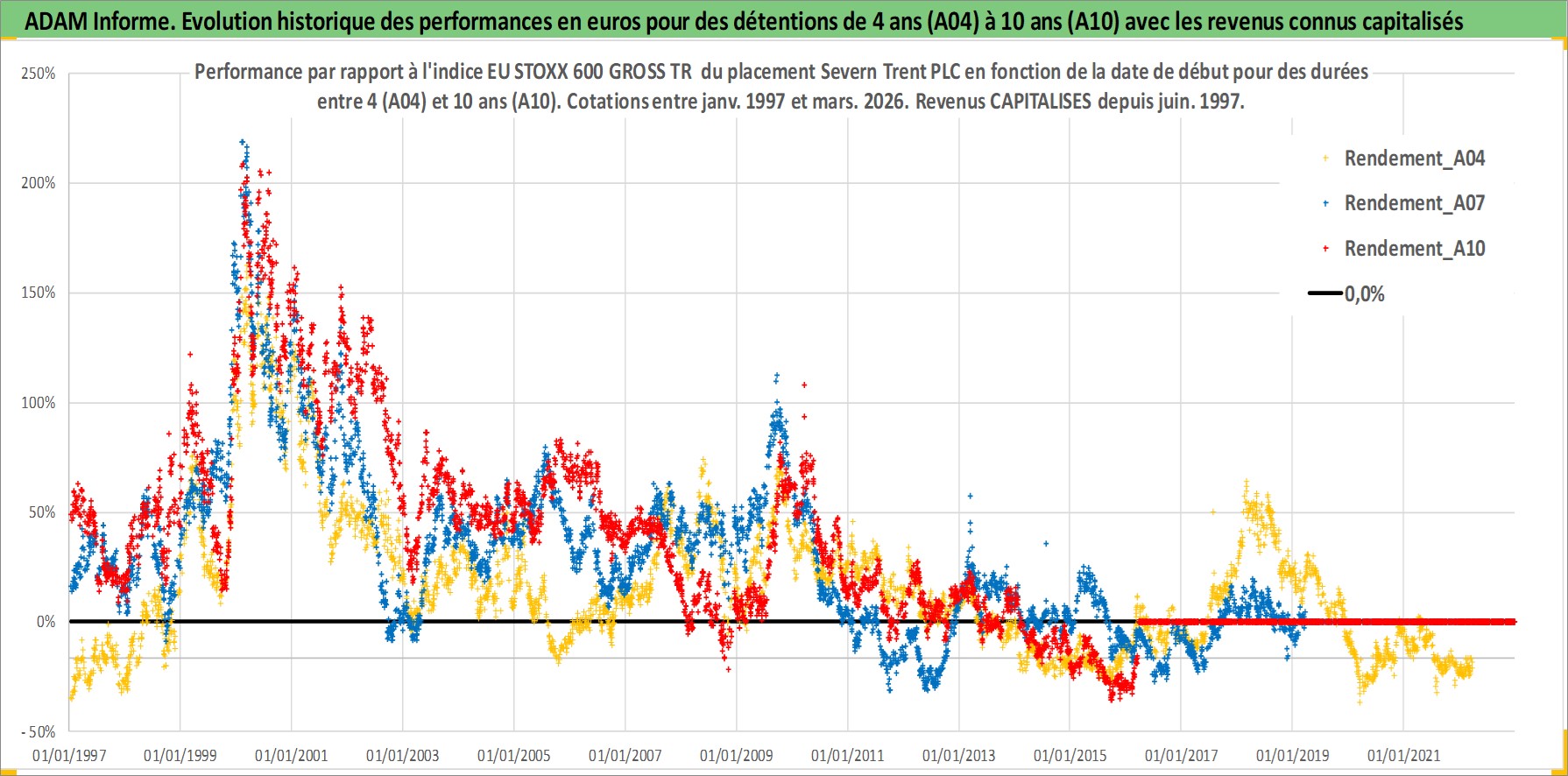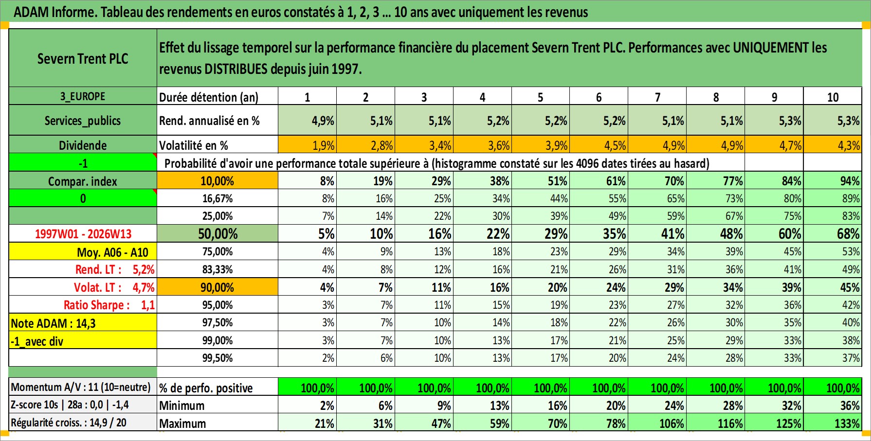Site dédié aux investisseursPage dédiée sur site financeAnalyse des valorisations hebdomadaires de l'action Severn Trent PLC. Cet actif est cote en GBX. Les valorisations sont en contrevaleur EURO et couvrent les semaines 1997W01 a 2026W13. Les revenus de cet actif financier sont pris en compte depuis la semaine 1997W25. La note globale ESG de cet actif est estimee a 13.0 (apres rebasage entre 0 et 20).