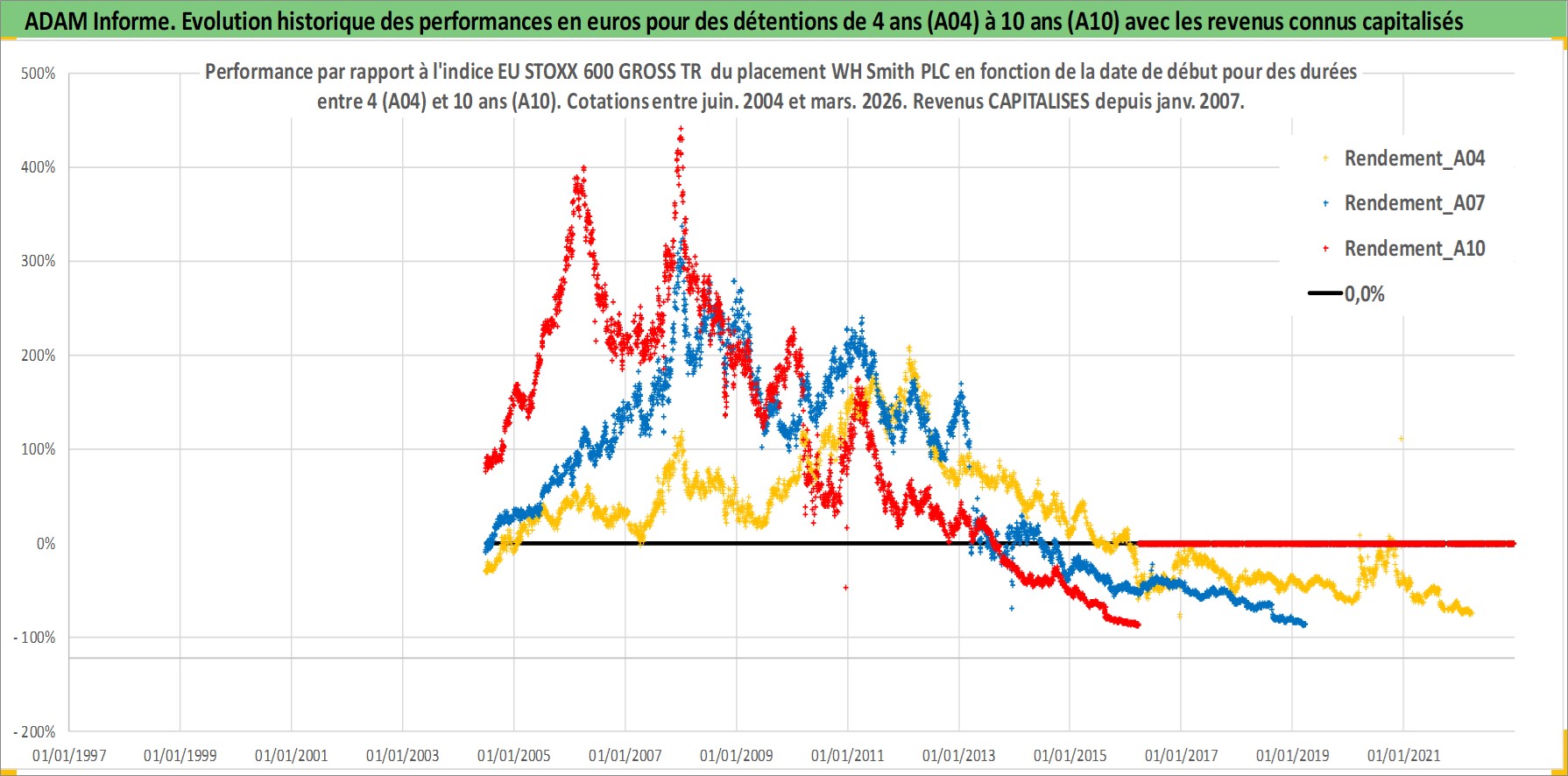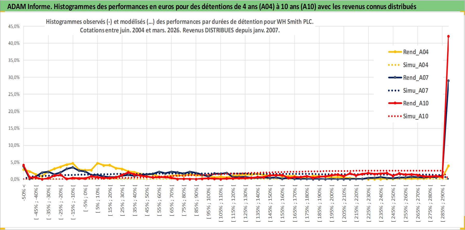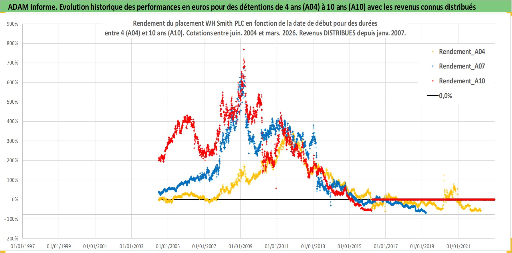 Site dédié aux investisseursPage dédiée sur site financeAnalyse des valorisations hebdomadaires de l'action WH Smith PLC. Cet actif est cote en GBX. Les valorisations sont en contrevaleur EURO et couvrent les semaines 2004W25 a 2026W13. Les revenus de cet actif financier sont pris en compte depuis la semaine 2007W01. La note ESG de cet actif n'est pas connue.