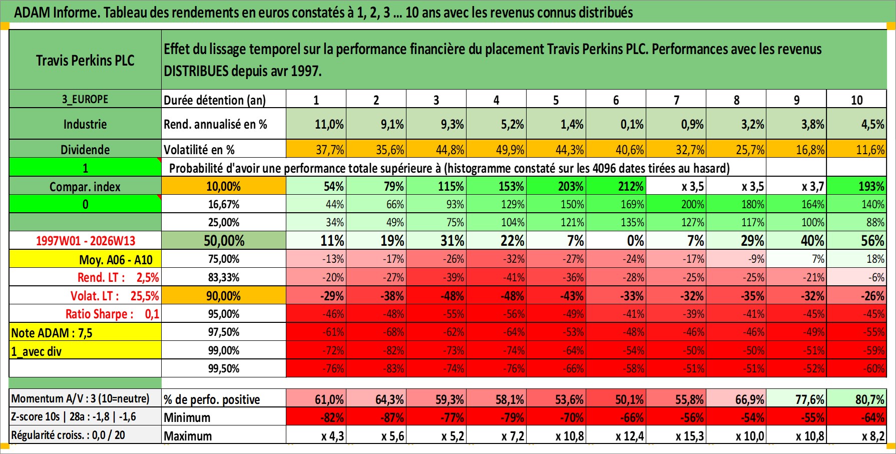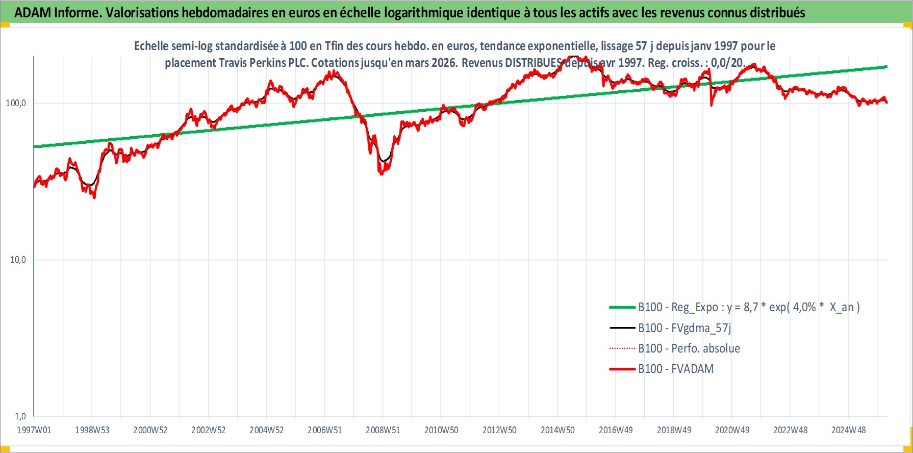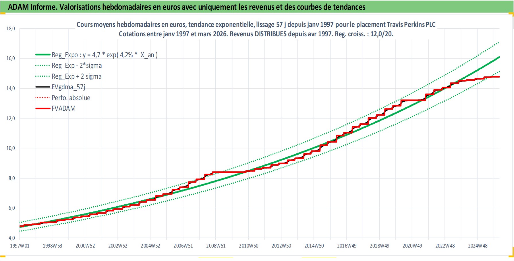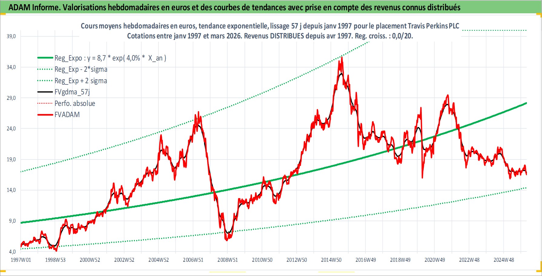 Site dédié aux investisseursPage dédiée sur site financeAnalyse des valorisations hebdomadaires de l'action Travis Perkins PLC. Cet actif est cote en GBX. Les valorisations sont en contrevaleur EURO et couvrent les semaines 1997W01 a 2026W13. Les revenus de cet actif financier sont pris en compte depuis la semaine 1997W15. La note ESG de cet actif n'est pas connue.