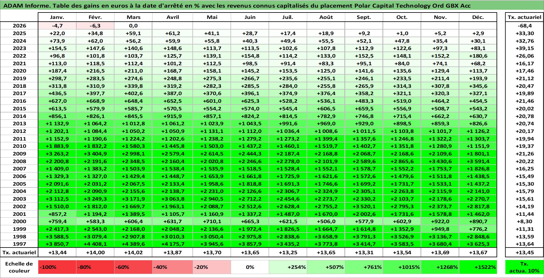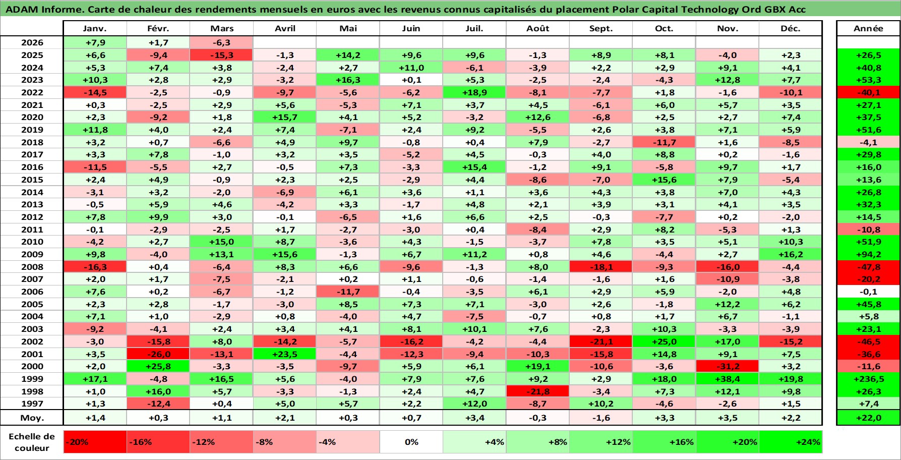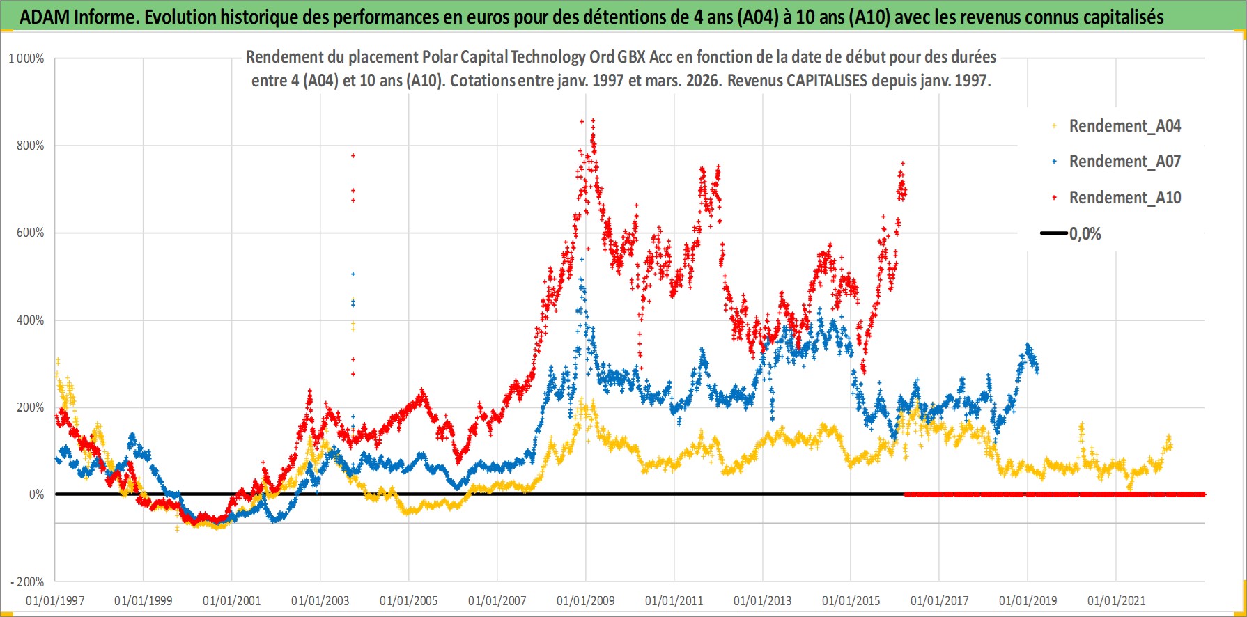 Site dédié aux investisseursPage dédiée sur site financeAnalyse des valorisations hebdomadaires du fonds Polar Capital Technology Ord GBX Acc. Cet actif est cote en GBX. Les valorisations sont en contrevaleur EURO et couvrent les semaines 1997W01 a 2026W13. Les revenus de cet actif financier sont pris en compte depuis la semaine 1997W01. La note ESG de cet actif n'est pas connue.