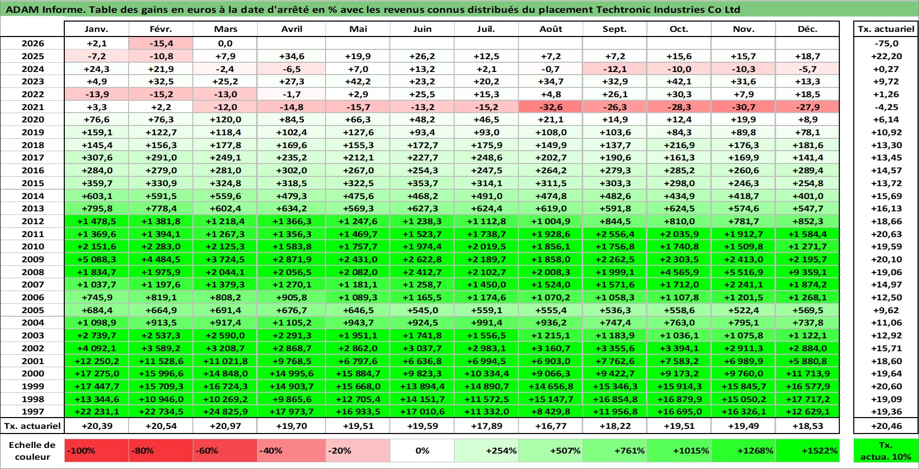 Dernière perfo 10 ans en %