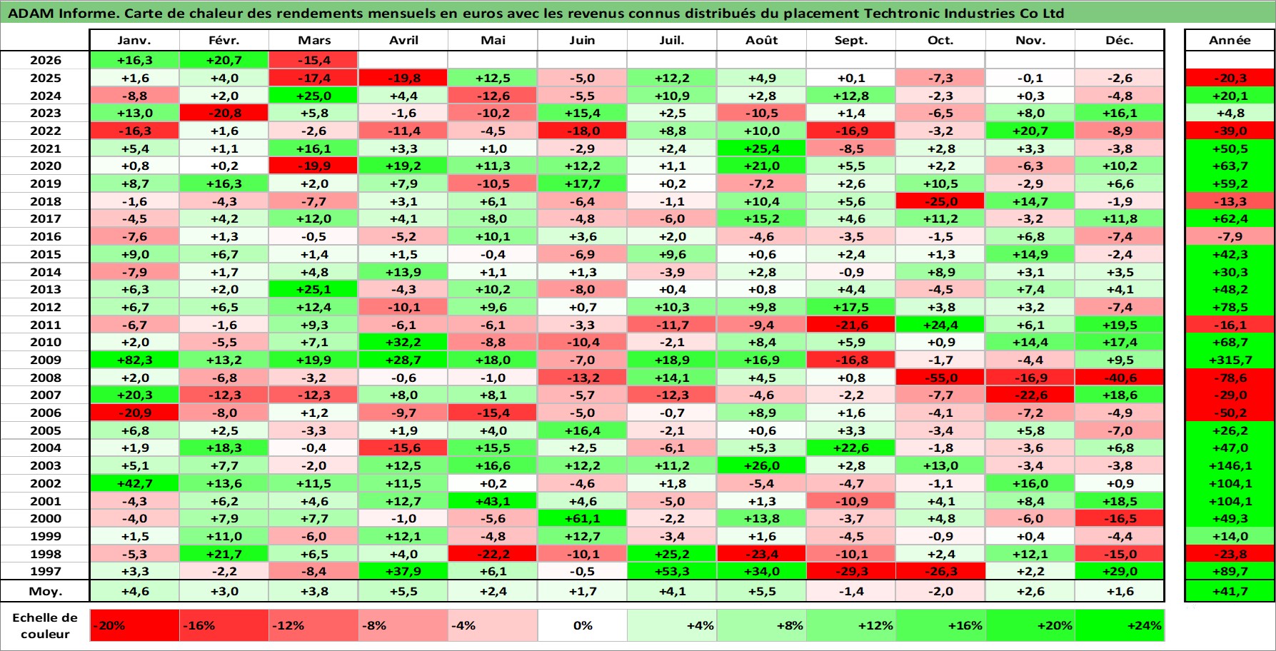 Dernière perfo 1 an en %