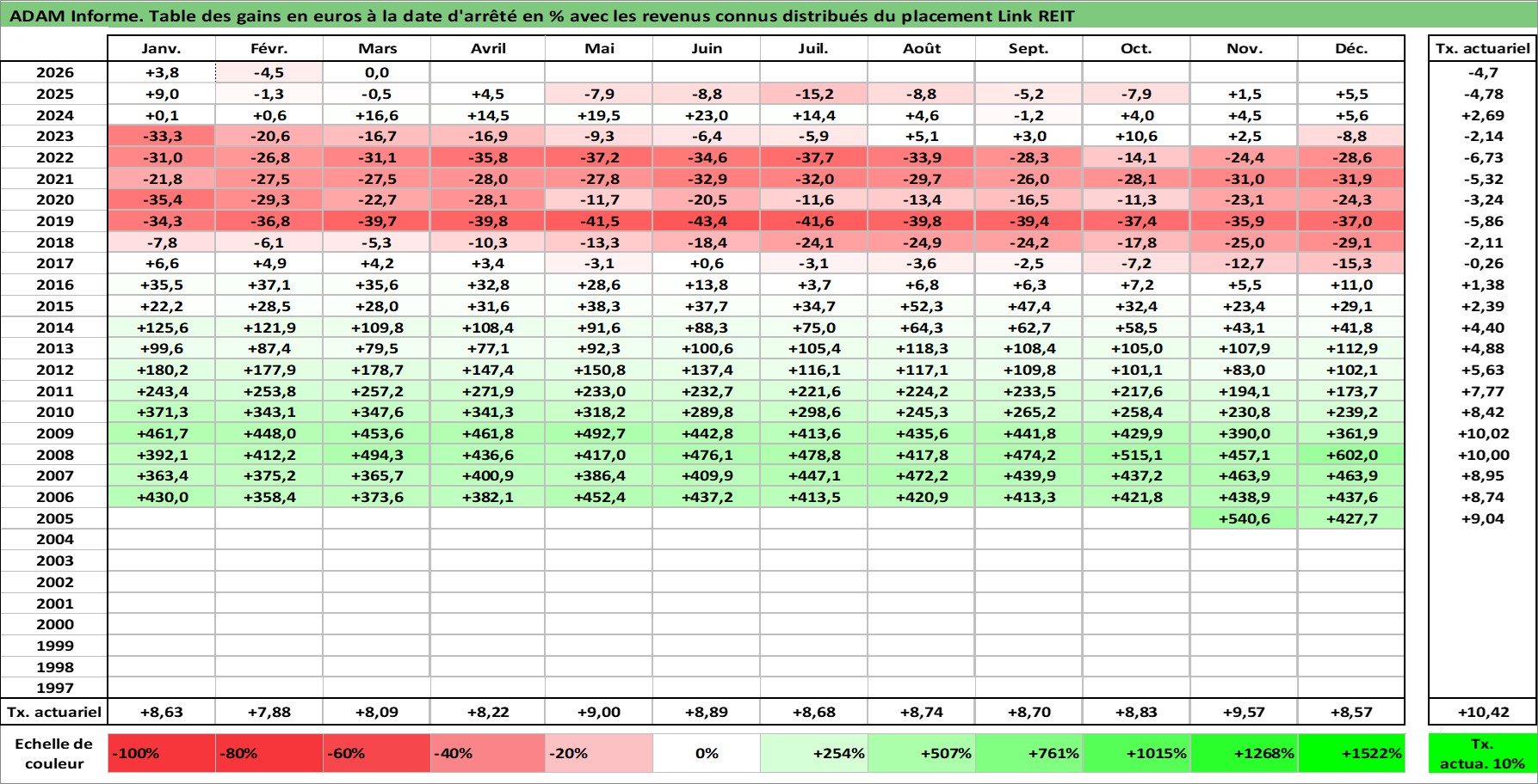 Dernière perfo 10 ans en %