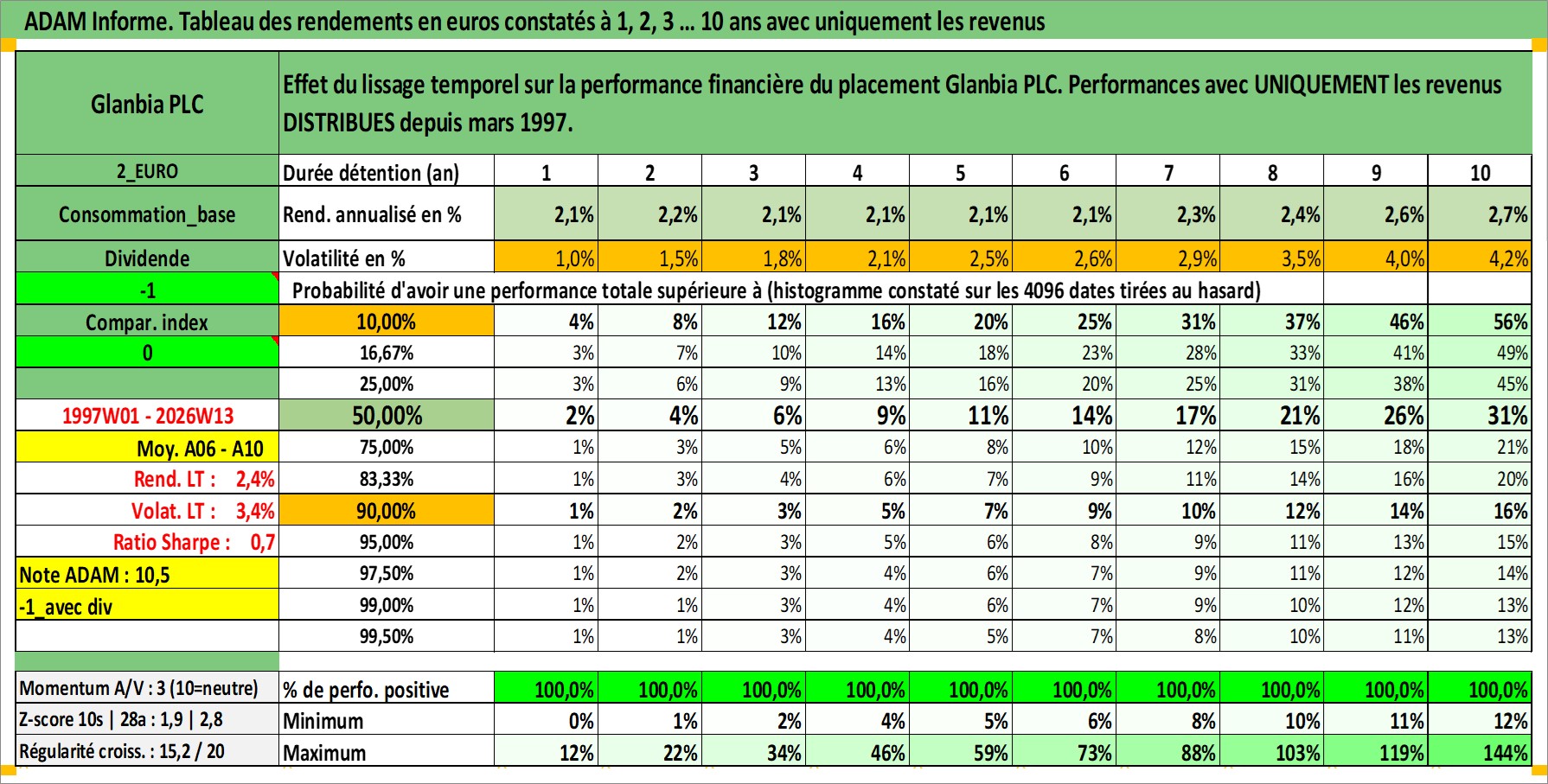 Dernière perfo 10 ans en %