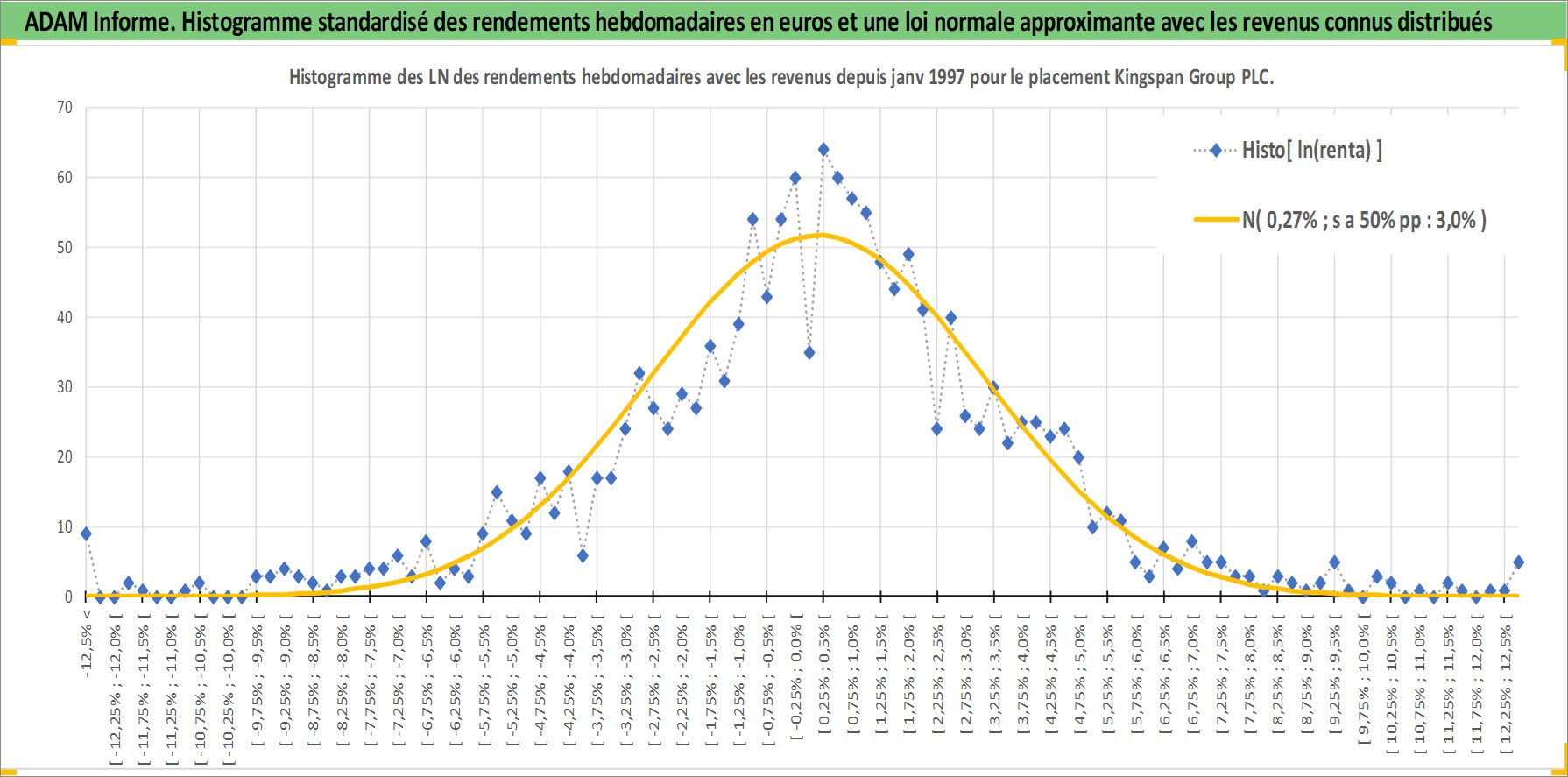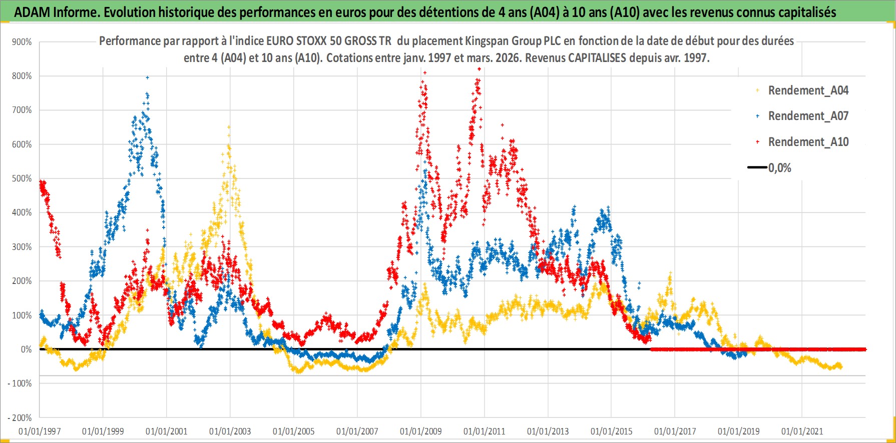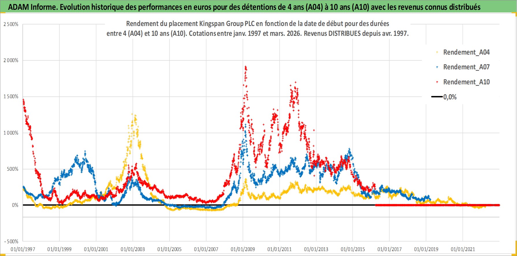 Site dédié aux investisseursPage dédiée sur site financeAnalyse des valorisations hebdomadaires de l'action Kingspan Group PLC. Cet actif est cote en EUR. Les valorisations couvrent les semaines 1997W01 a 2026W13. Les revenus de cet actif financier sont pris en compte depuis la semaine 1997W18. La note ESG de cet actif n'est pas connue.