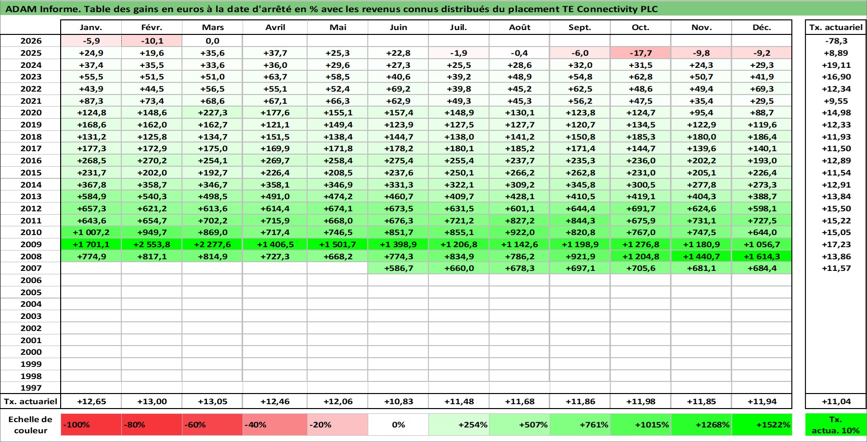 Dernière perfo 10 ans en %