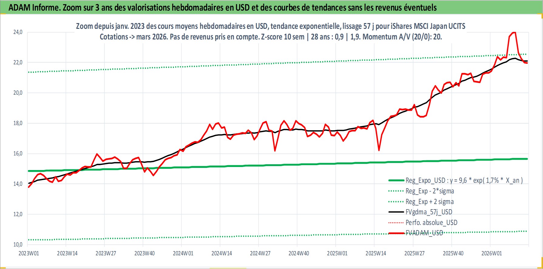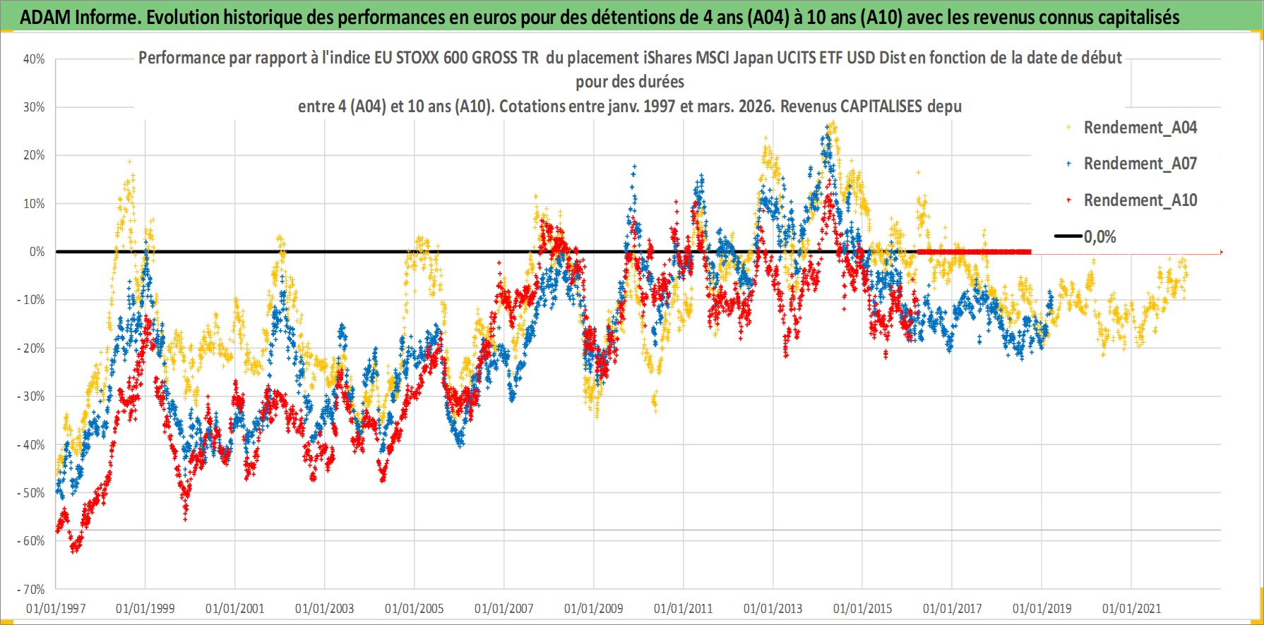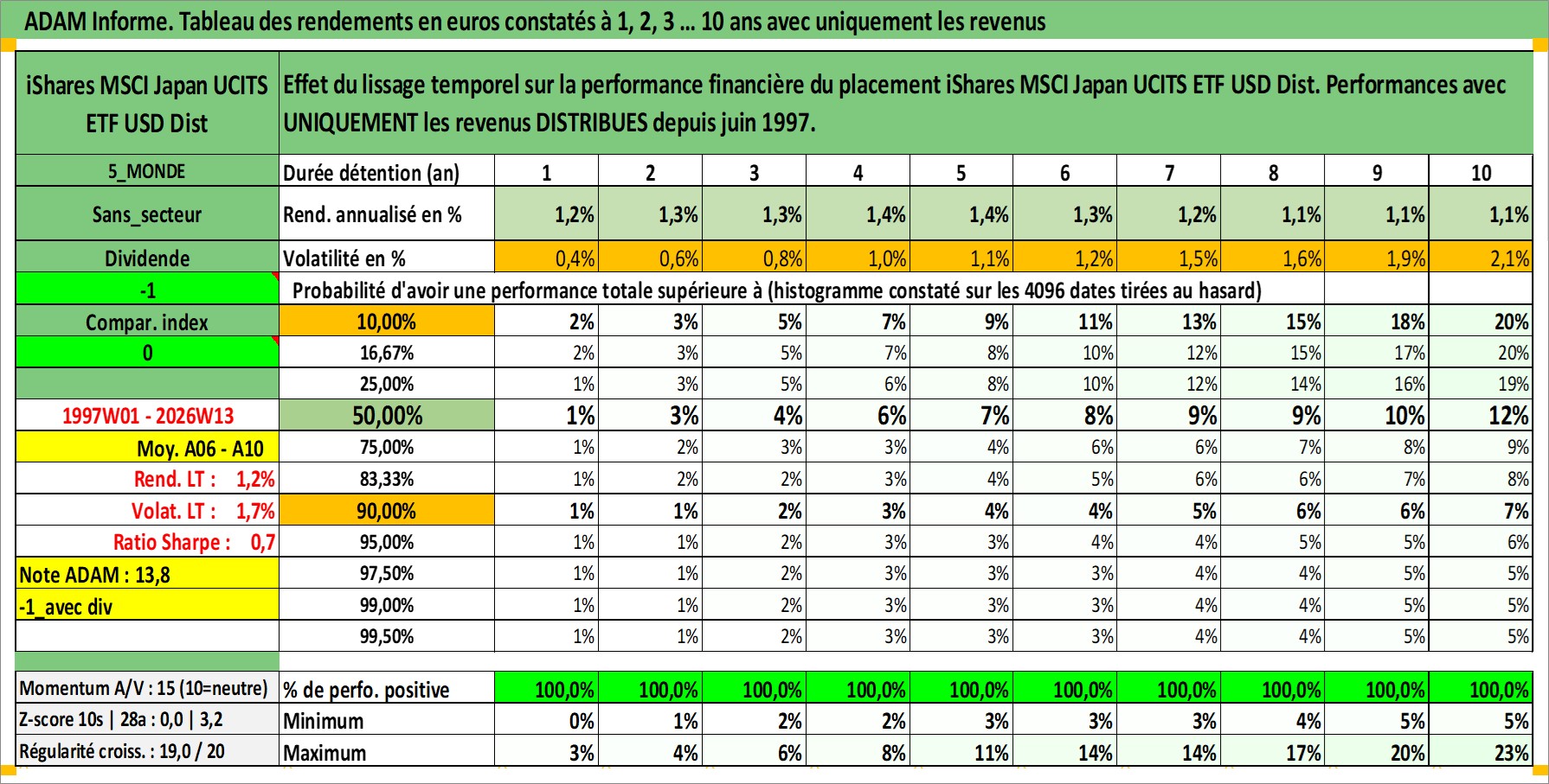 Site dédié aux investisseursPage dédiée sur site financeAnalyse des valorisations hebdomadaires du fonds iShares MSCI Japan UCITS ETF USD Dist. Cet actif est cote en USD. Les valorisations sont en contrevaleur EURO et couvrent les semaines 1997W01 a 2026W13. Les revenus de cet actif financier sont pris en compte depuis la semaine 1997W26. La note ESG de cet actif n'est pas connue.