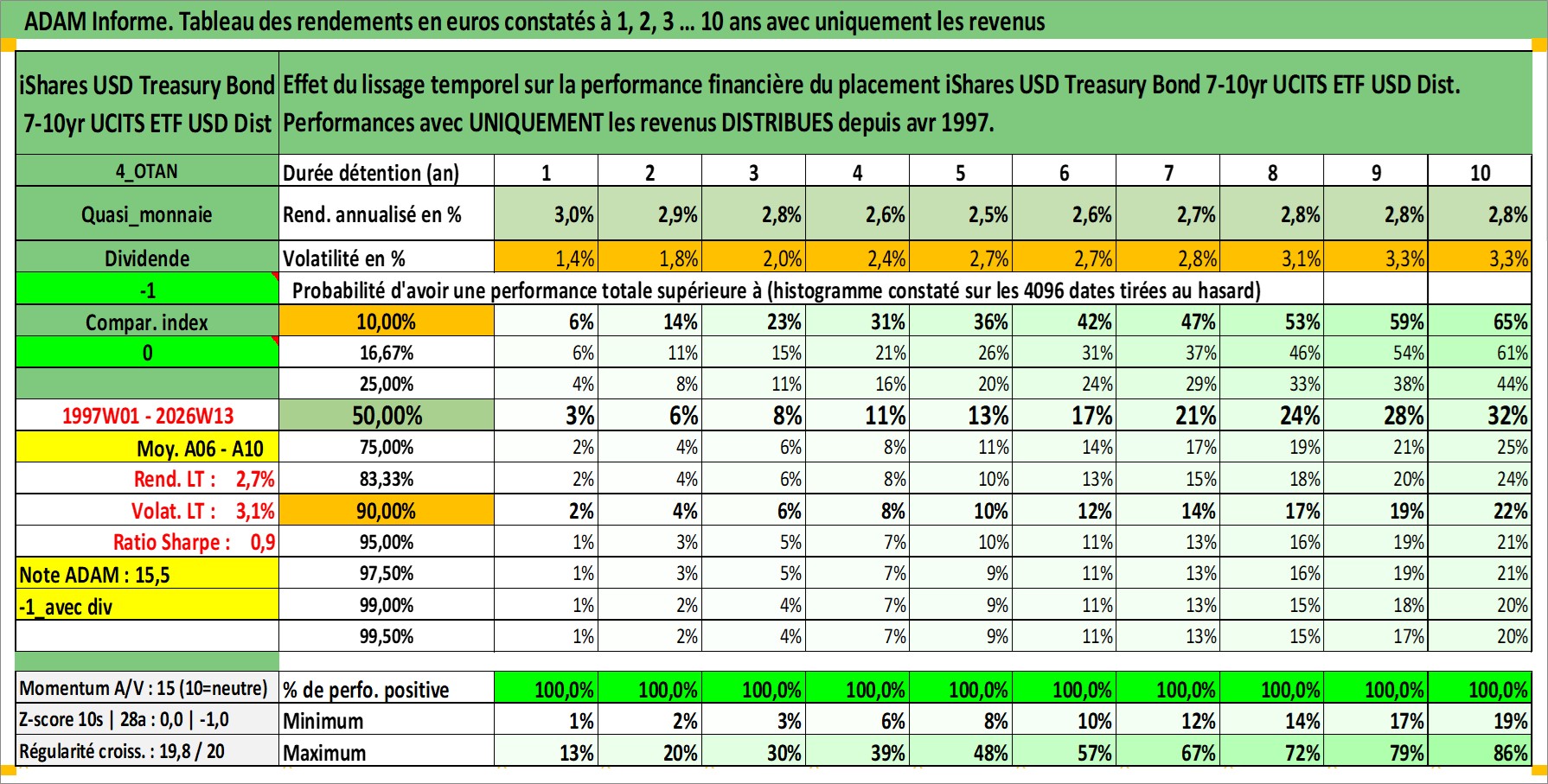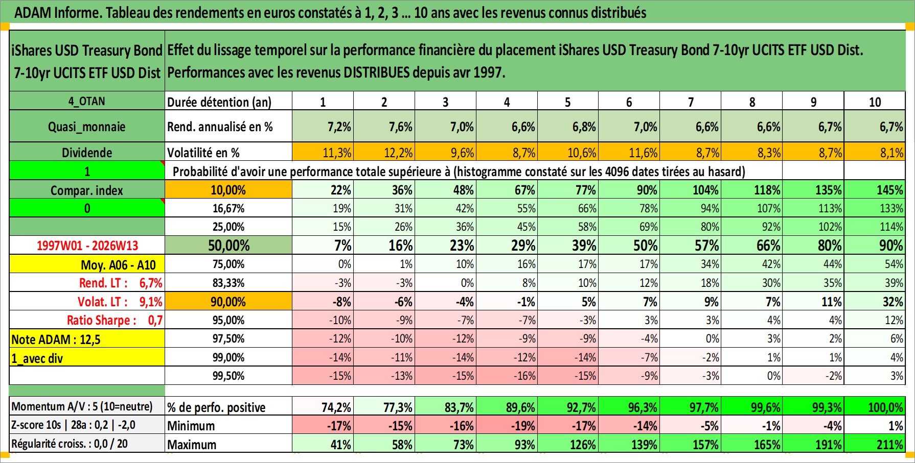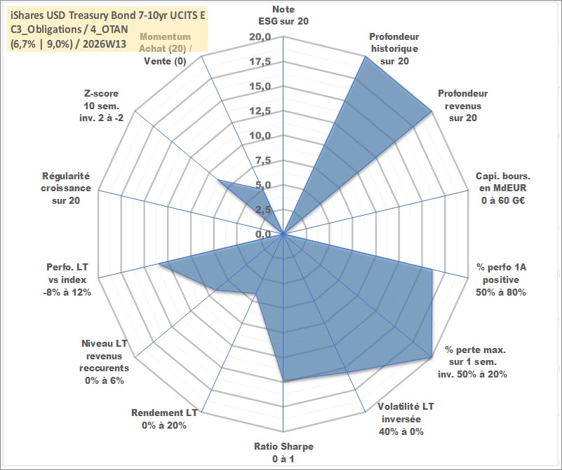 Site dédié aux investisseursPage dédiée sur site financeAnalyse des valorisations hebdomadaires du fonds iShares USD Treasury Bond 7-10yr UCITS ETF USD Dist. Cet actif est cote en USD. Les valorisations sont en contrevaleur EURO et couvrent les semaines 1997W01 a 2026W13. Les revenus de cet actif financier sont pris en compte depuis la semaine 1997W17. La note ESG de cet actif n'est pas connue.