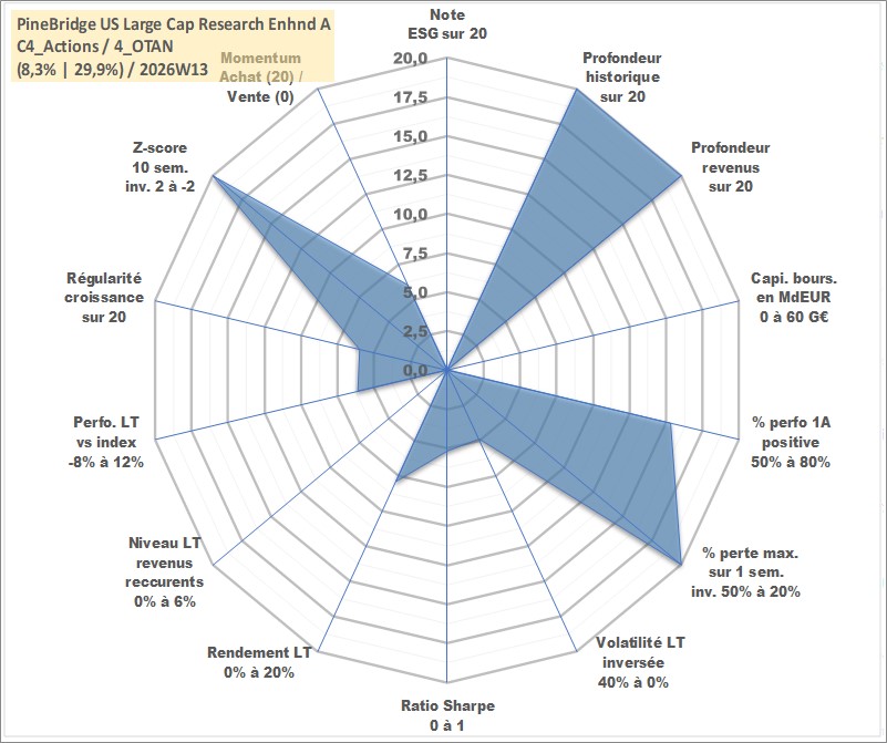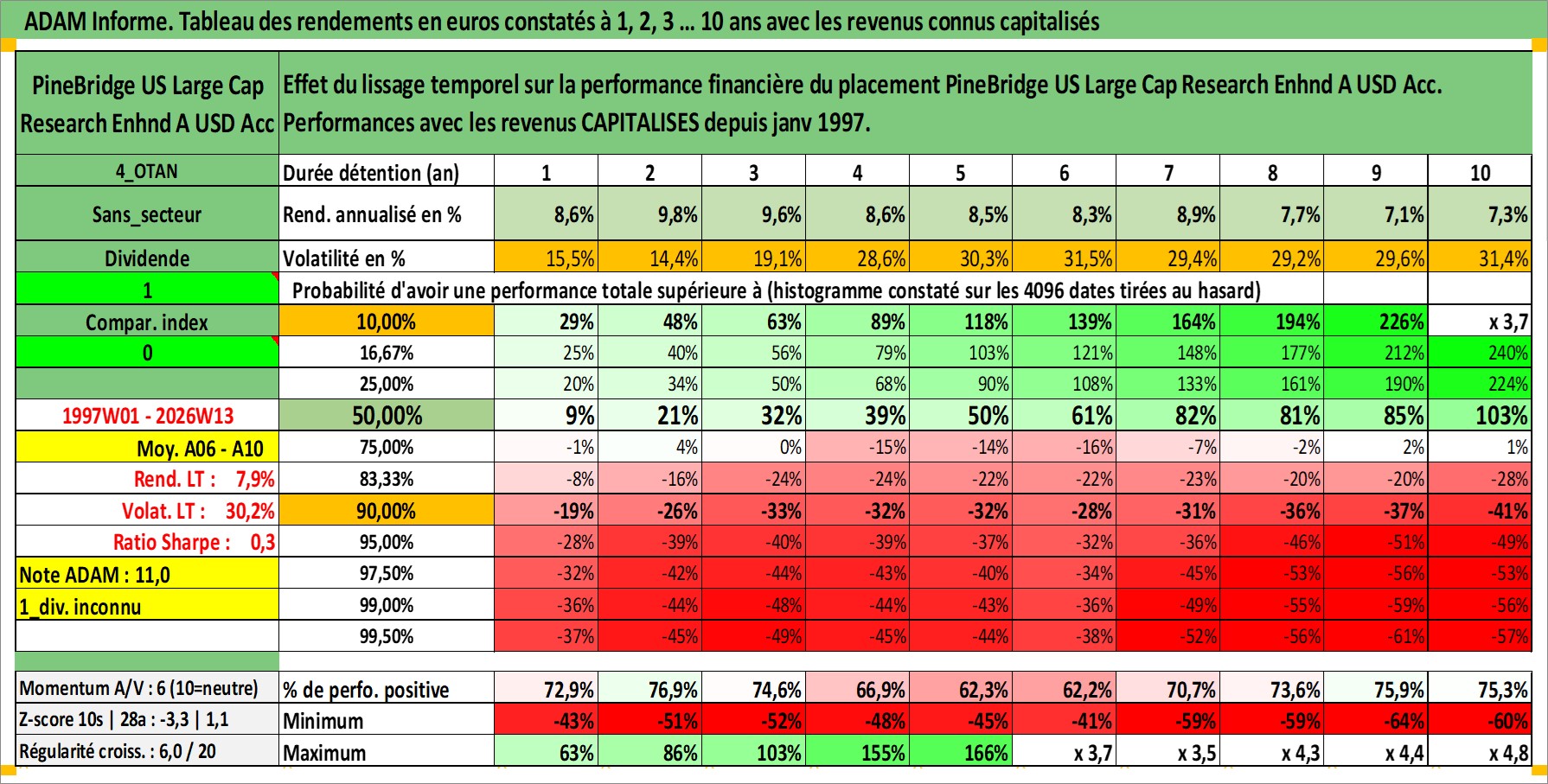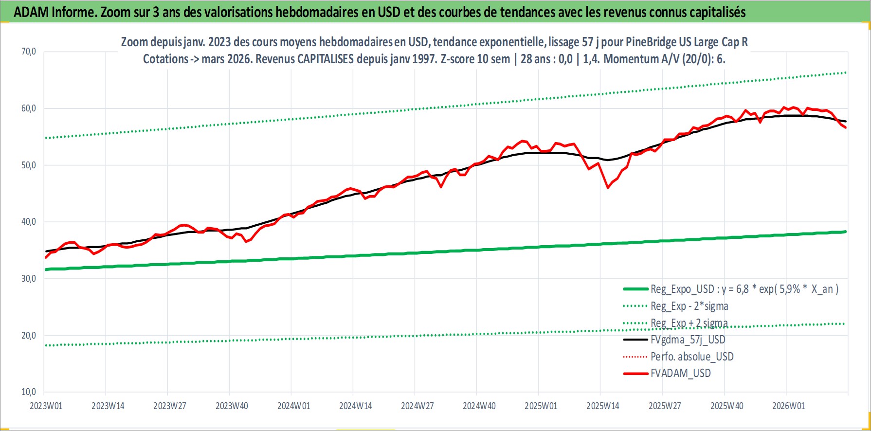 Site dédié aux investisseursPage dédiée sur site financeAnalyse des valorisations hebdomadaires du fonds PineBridge US Large Cap Research Enhnd A USD Acc. Cet actif est cote en USD. Les valorisations sont en contrevaleur EURO et couvrent les semaines 1997W01 a 2026W13. Les revenus de cet actif financier sont pris en compte depuis la semaine 1997W01. La note ESG de cet actif n'est pas connue.