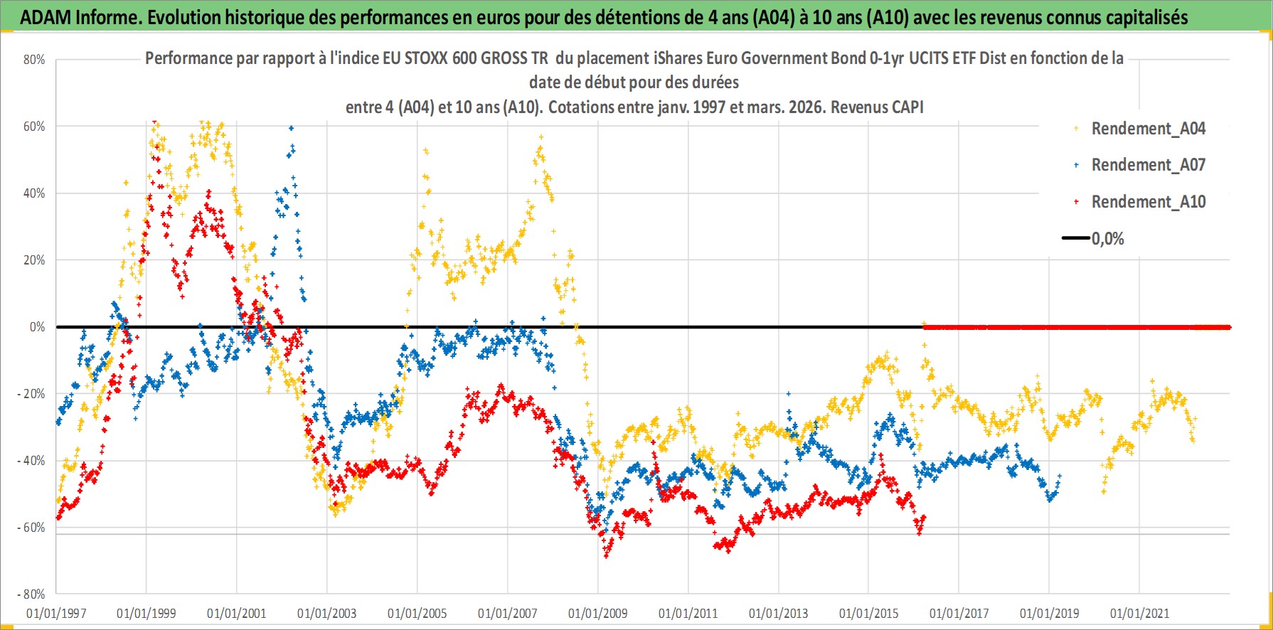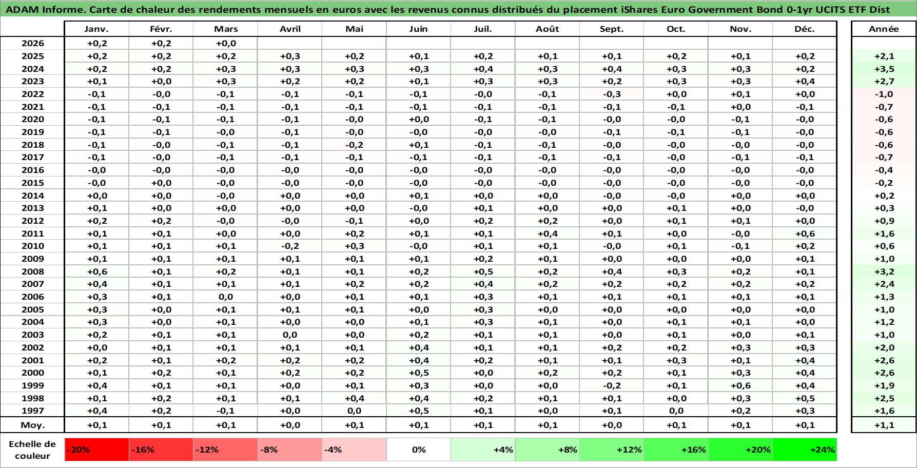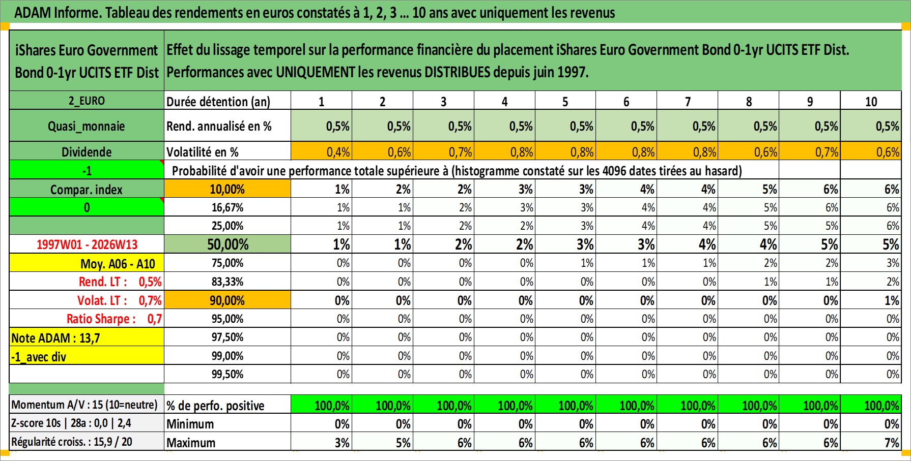 Site dédié aux investisseursPage dédiée sur site financeAnalyse des valorisations hebdomadaires du fonds iShares Euro Government Bond 0-1yr UCITS ETF Dist. Cet actif est cote en EUR. Les valorisations couvrent les semaines 1997W01 a 2026W13. Les revenus de cet actif financier sont pris en compte depuis la semaine 1997W26. La note ESG de cet actif n'est pas connue.