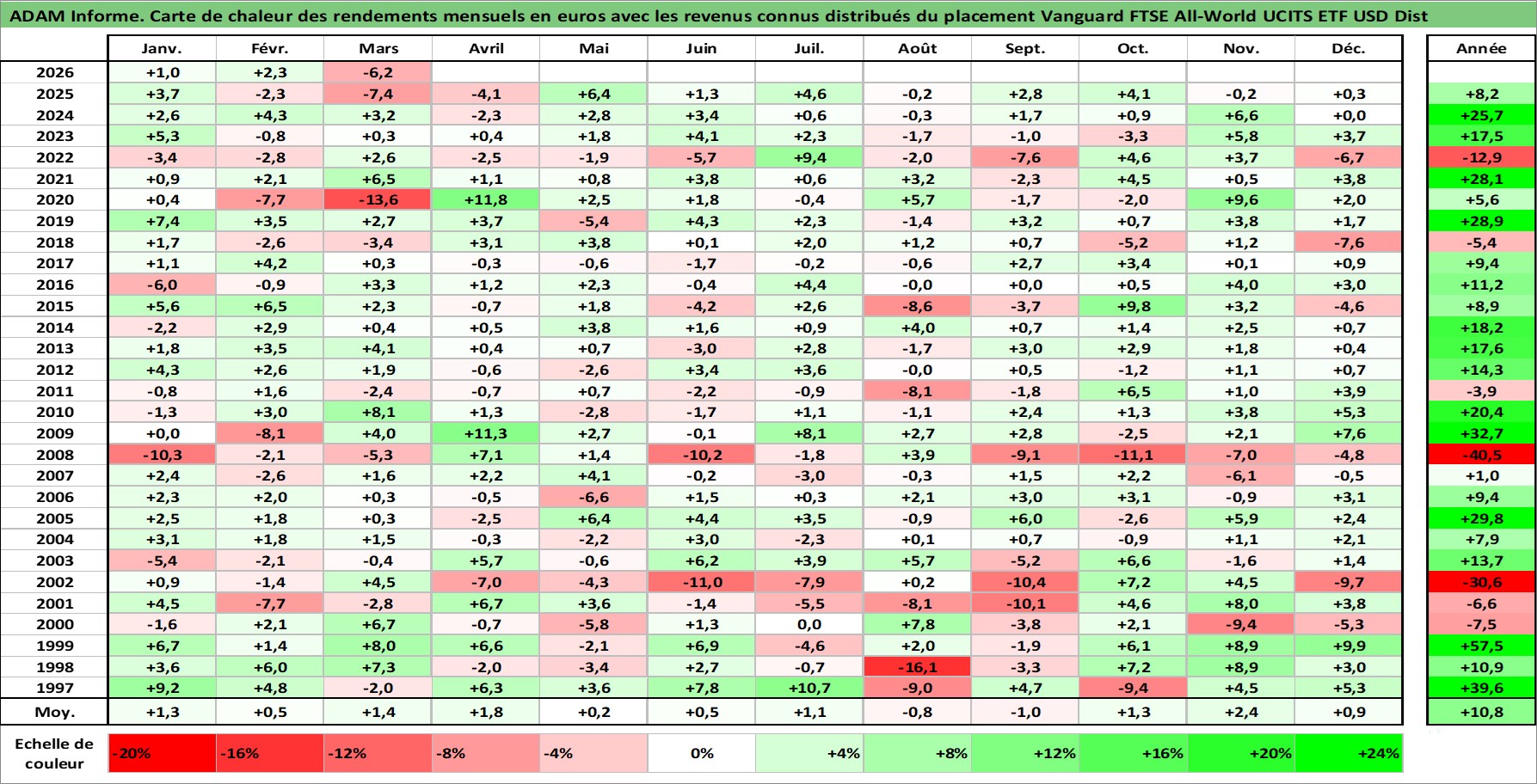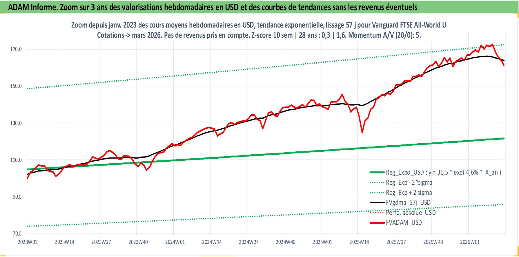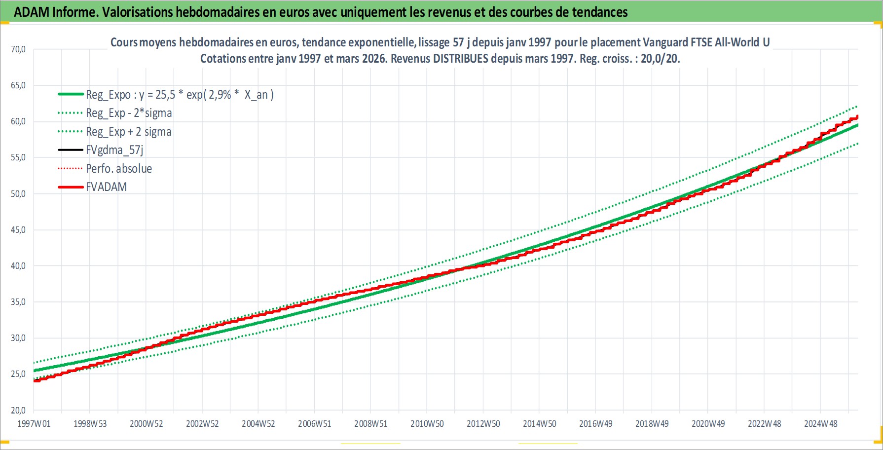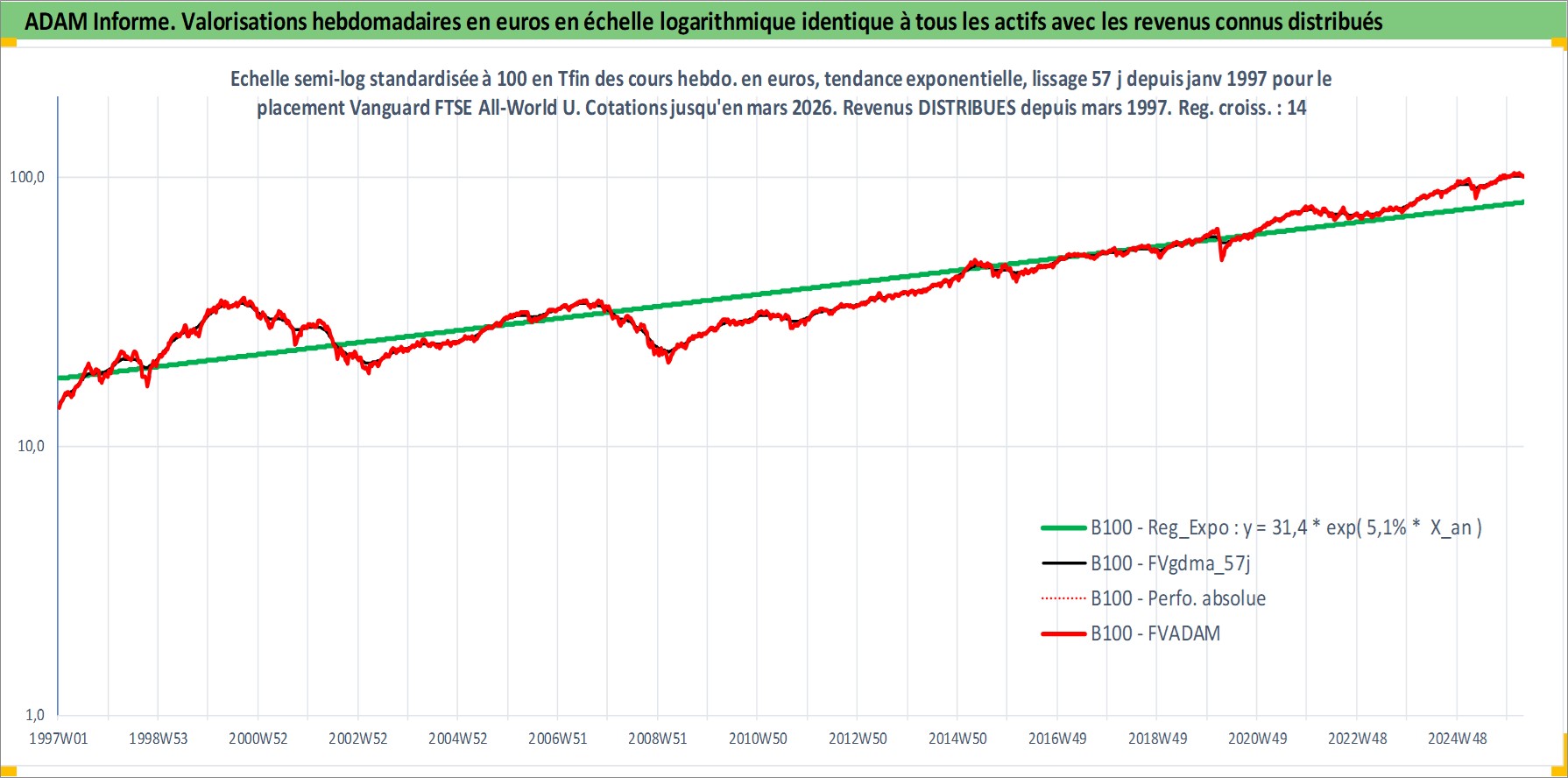 Site dédié aux investisseursPage dédiée sur site financeAnalyse des valorisations hebdomadaires du fonds Vanguard FTSE All-World UCITS ETF USD Dist. Cet actif est cote en USD. Les valorisations sont en contrevaleur EURO et couvrent les semaines 1997W01 a 2026W13. Les revenus de cet actif financier sont pris en compte depuis la semaine 1997W13. La note ESG de cet actif n'est pas connue.