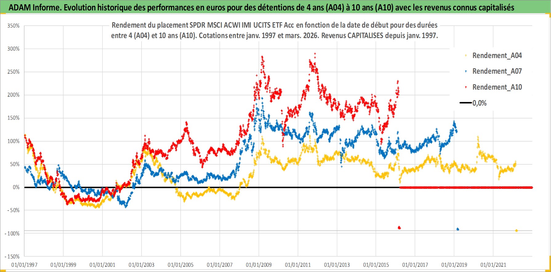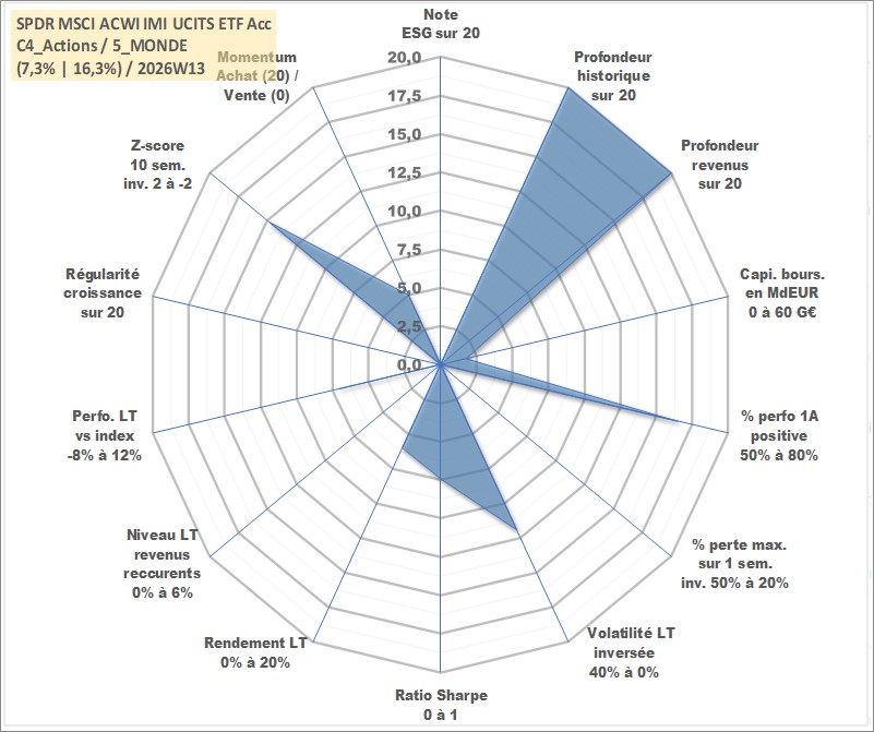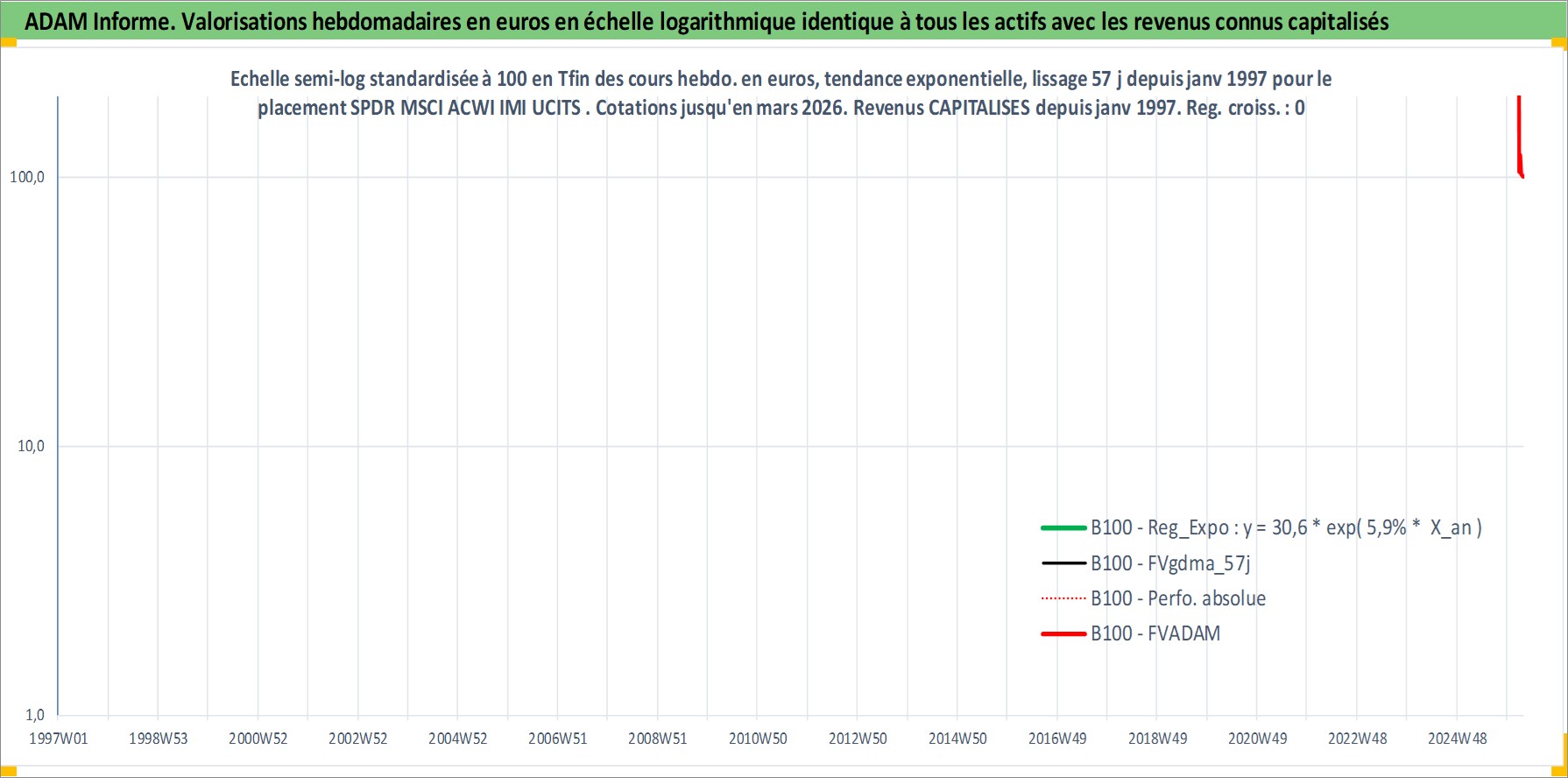 Site dédié aux investisseursPage dédiée sur site financeAnalyse des valorisations hebdomadaires du fonds SPDR MSCI ACWI IMI UCITS ETF Acc. Cet actif est cote en EUR. Les valorisations couvrent les semaines 1997W01 a 2026W13. Les revenus de cet actif financier sont pris en compte depuis la semaine 1997W01. La note ESG de cet actif n'est pas connue.