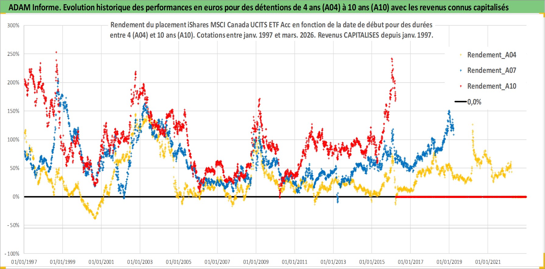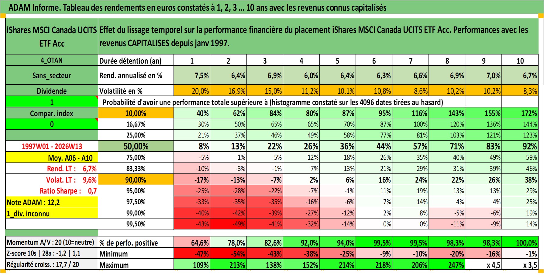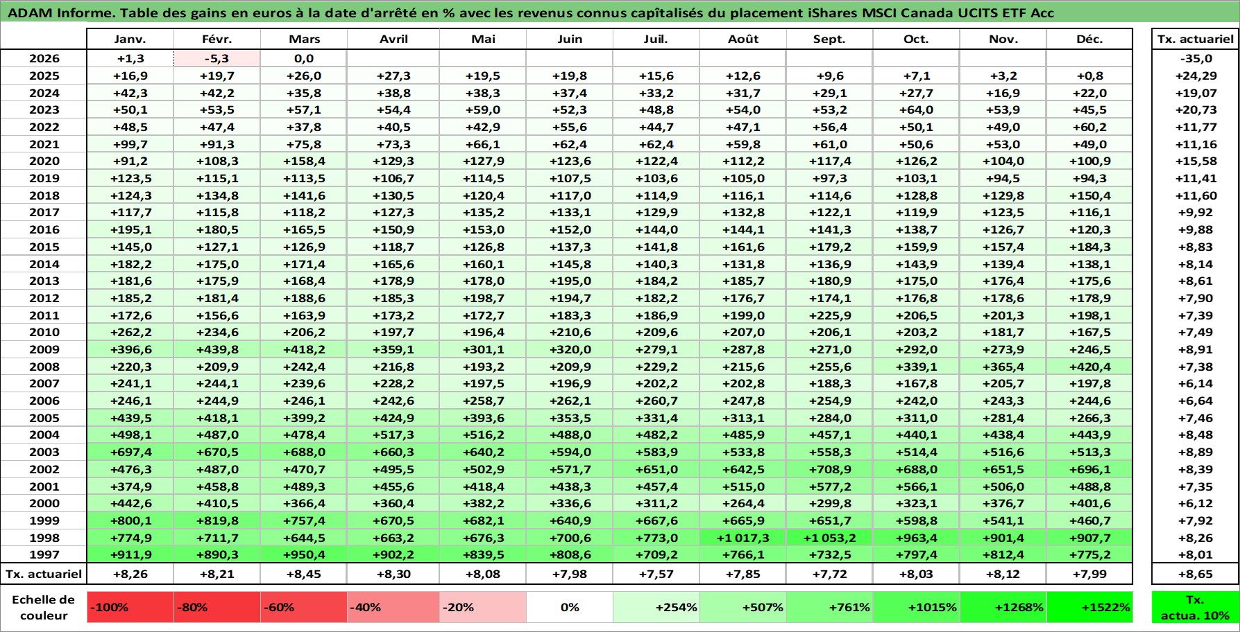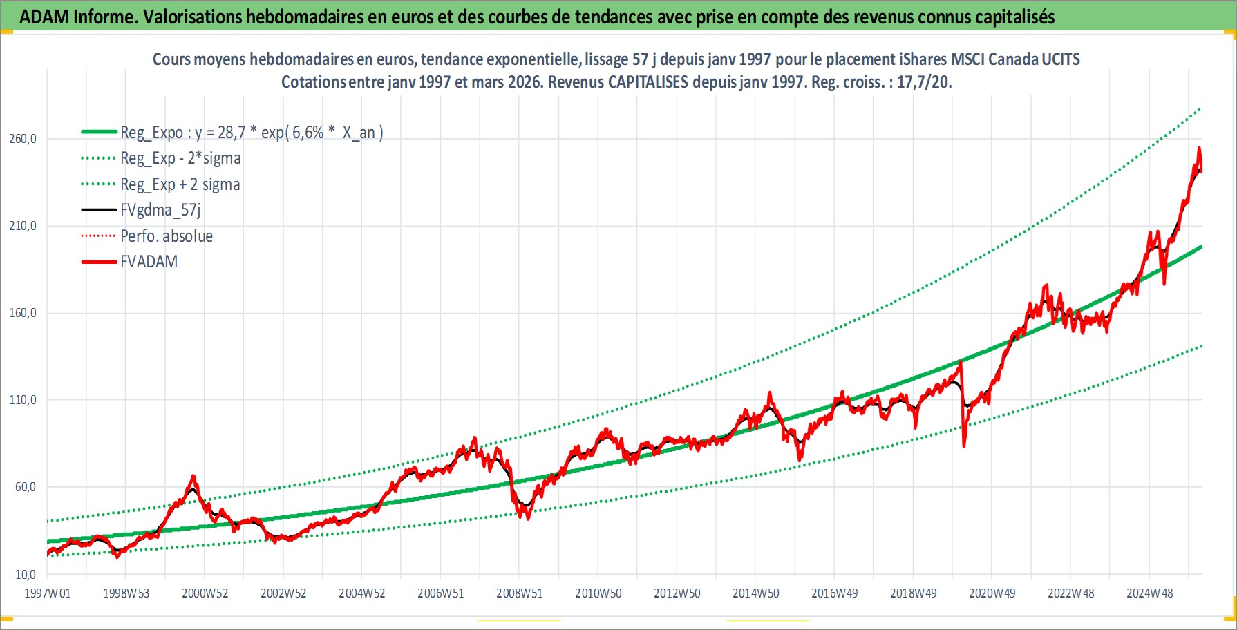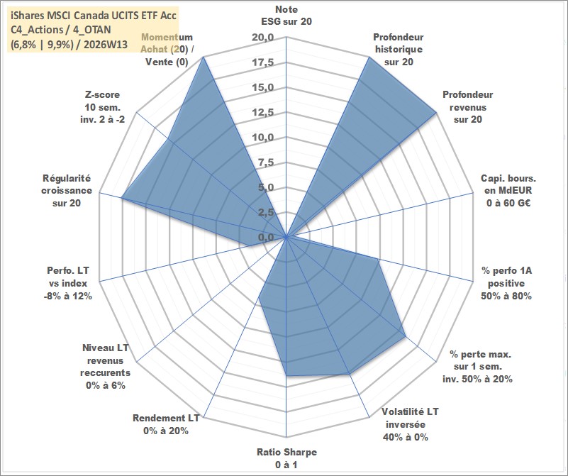 Site dédié aux investisseursPage dédiée sur site financeAnalyse des valorisations hebdomadaires du fonds iShares MSCI Canada UCITS ETF Acc. Cet actif est cote en USD. Les valorisations sont en contrevaleur EURO et couvrent les semaines 1997W01 a 2026W13. Les revenus de cet actif financier sont pris en compte depuis la semaine 1997W01. La note ESG de cet actif n'est pas connue.