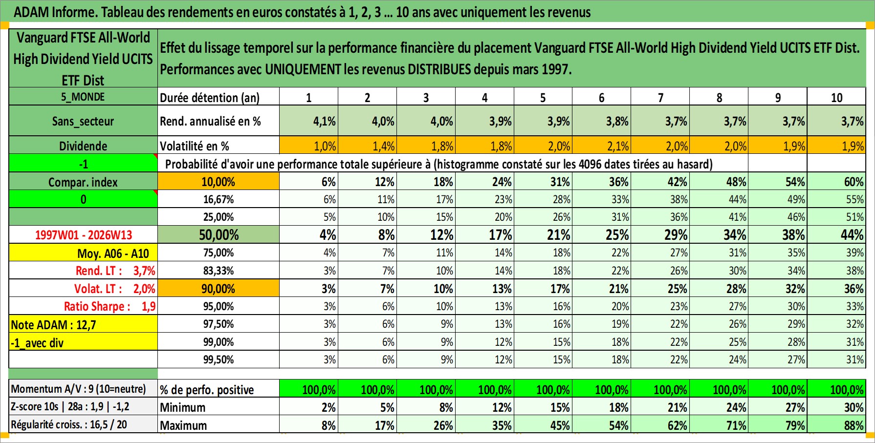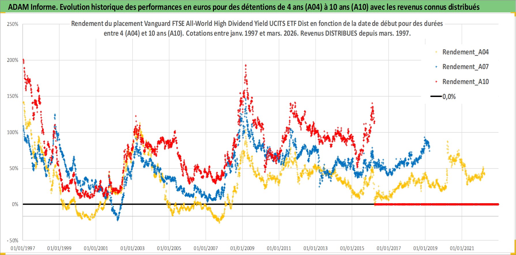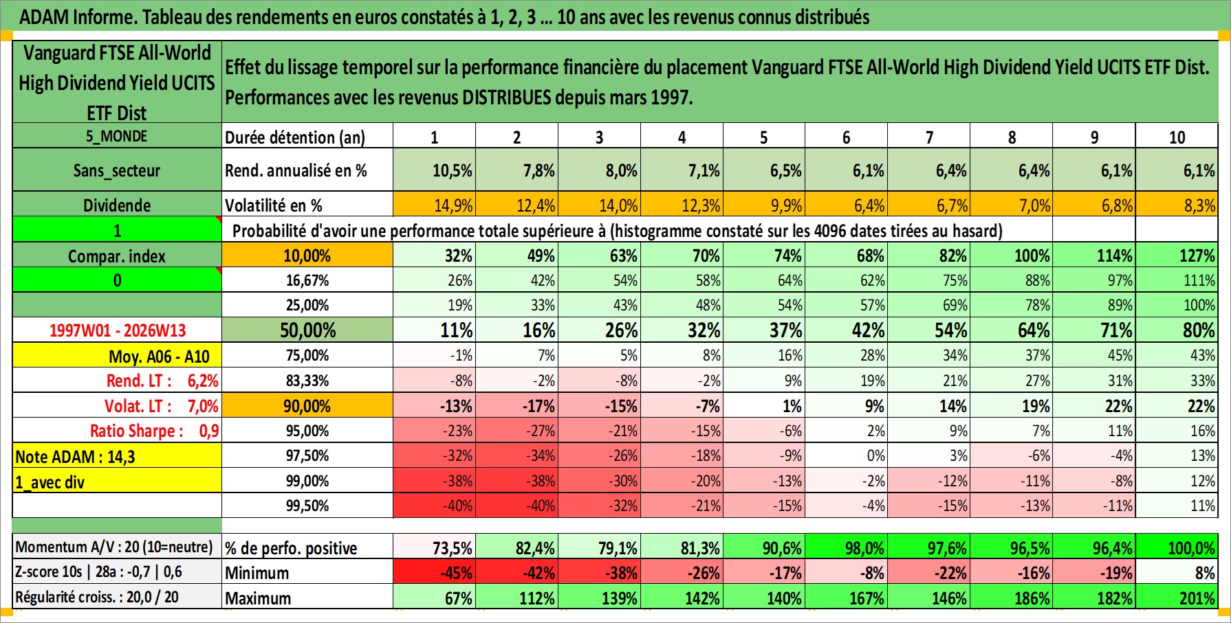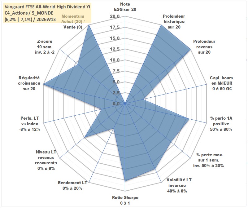 Site dédié aux investisseursPage dédiée sur site financeAnalyse des valorisations hebdomadaires du fonds Vanguard FTSE All-World High Dividend Yield UCITS ETF Dist. Cet actif est cote en GBP. Les valorisations sont en contrevaleur EURO et couvrent les semaines 1997W01 a 2026W13. Les revenus de cet actif financier sont pris en compte depuis la semaine 1997W12. La note ESG de cet actif n'est pas connue.