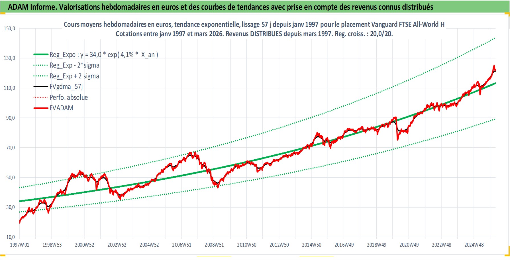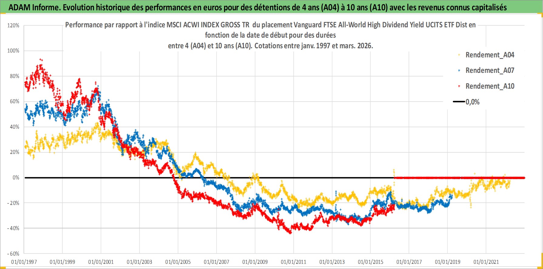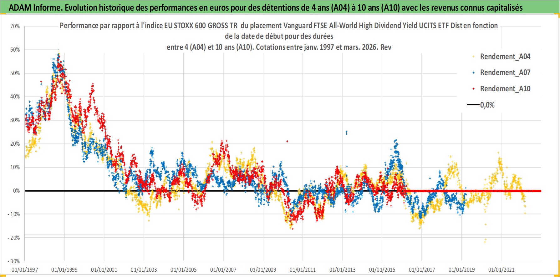 Site dédié aux investisseursPage dédiée sur site financeAnalyse des valorisations hebdomadaires du fonds Vanguard FTSE All-World High Dividend Yield UCITS ETF Dist. Cet actif est cote en GBP. Les valorisations sont en contrevaleur EURO et couvrent les semaines 1997W01 a 2026W13. Les revenus de cet actif financier sont pris en compte depuis la semaine 1997W12. La note ESG de cet actif n'est pas connue.