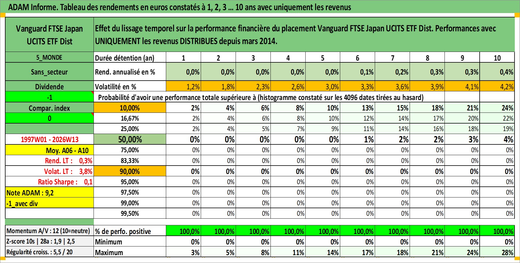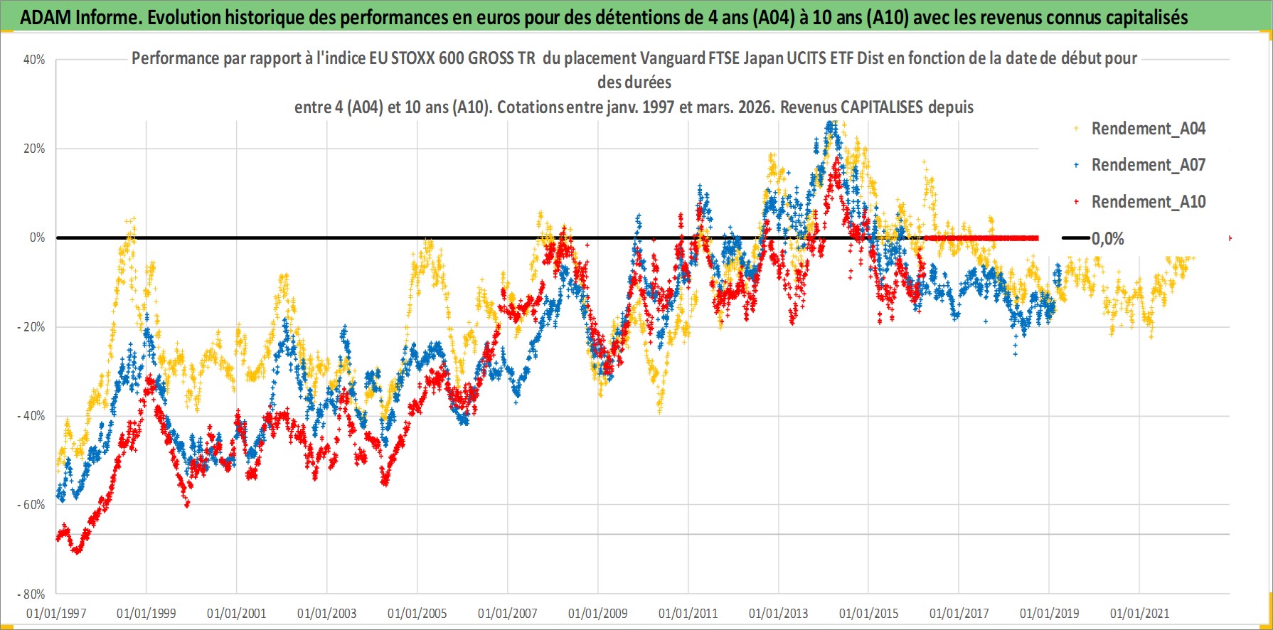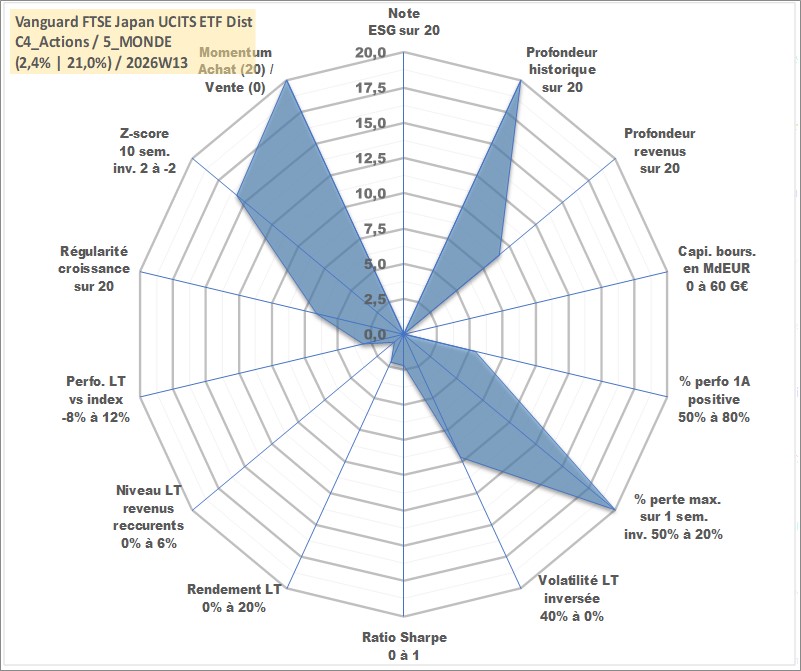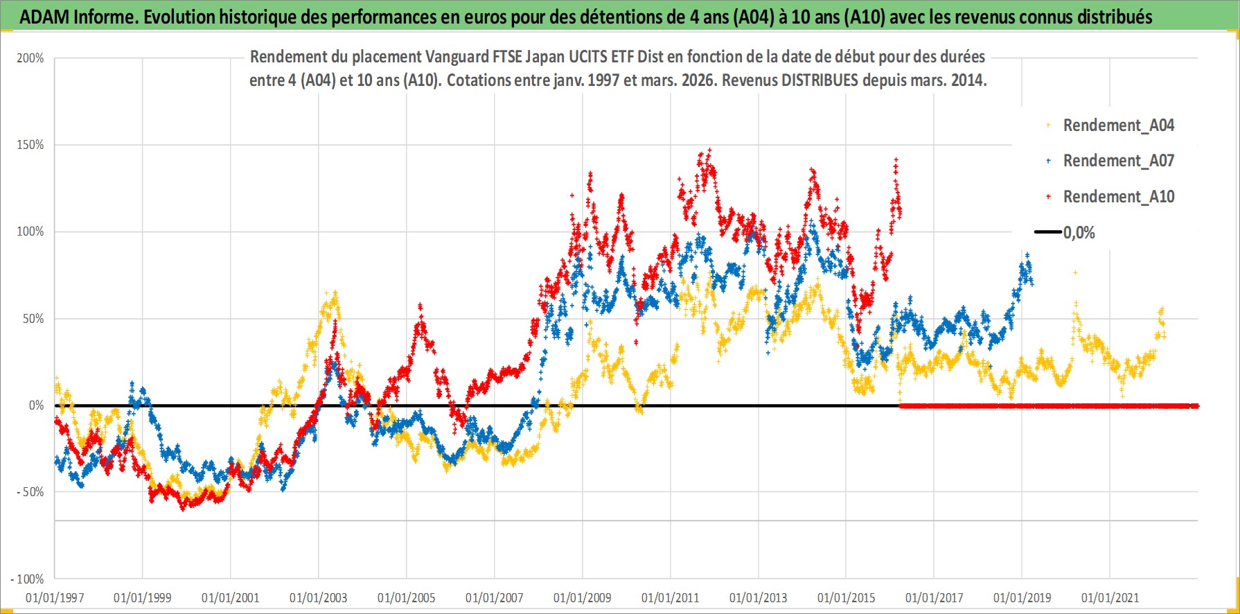 Site dédié aux investisseursPage dédiée sur site financeAnalyse des valorisations hebdomadaires du fonds Vanguard FTSE Japan UCITS ETF Dist. Cet actif est cote en CHF. Les valorisations sont en contrevaleur EURO et couvrent les semaines 1997W01 a 2026W13. Les revenus de cet actif financier sont pris en compte depuis la semaine 2014W12. La note ESG de cet actif n'est pas connue.