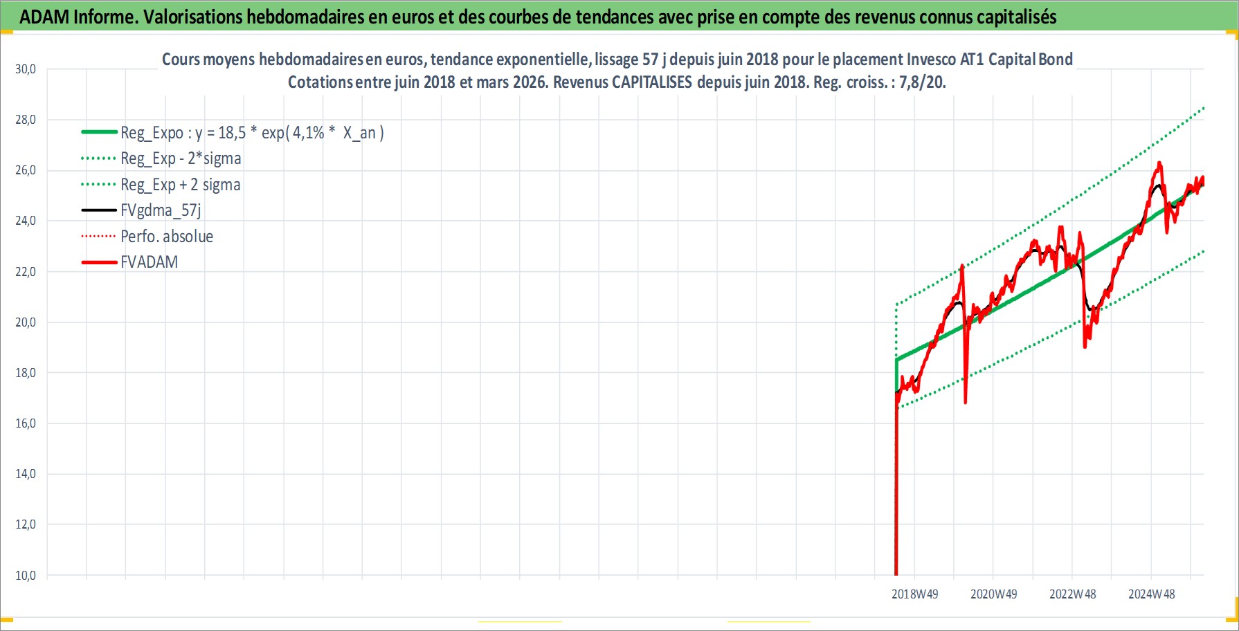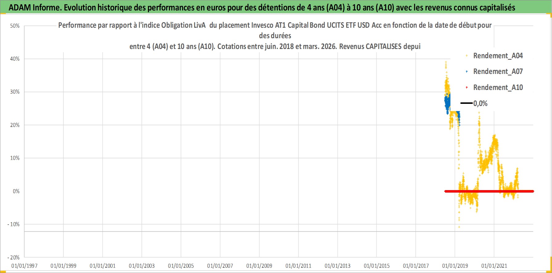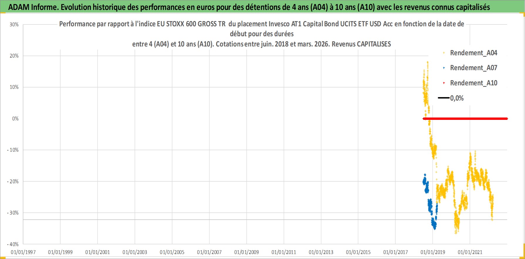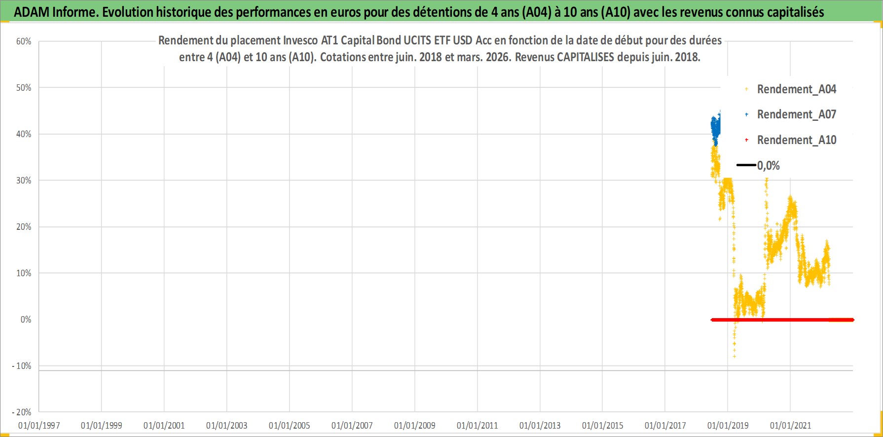 Site dédié aux investisseursPage dédiée sur site financeAnalyse des valorisations hebdomadaires du fonds Invesco AT1 Capital Bond UCITS ETF USD Acc. Cet actif est cote en USD. Les valorisations sont en contrevaleur EURO et couvrent les semaines 2018W25 a 2026W13. Les revenus de cet actif financier sont pris en compte depuis la semaine 2018W25. La note ESG de cet actif n'est pas connue.
