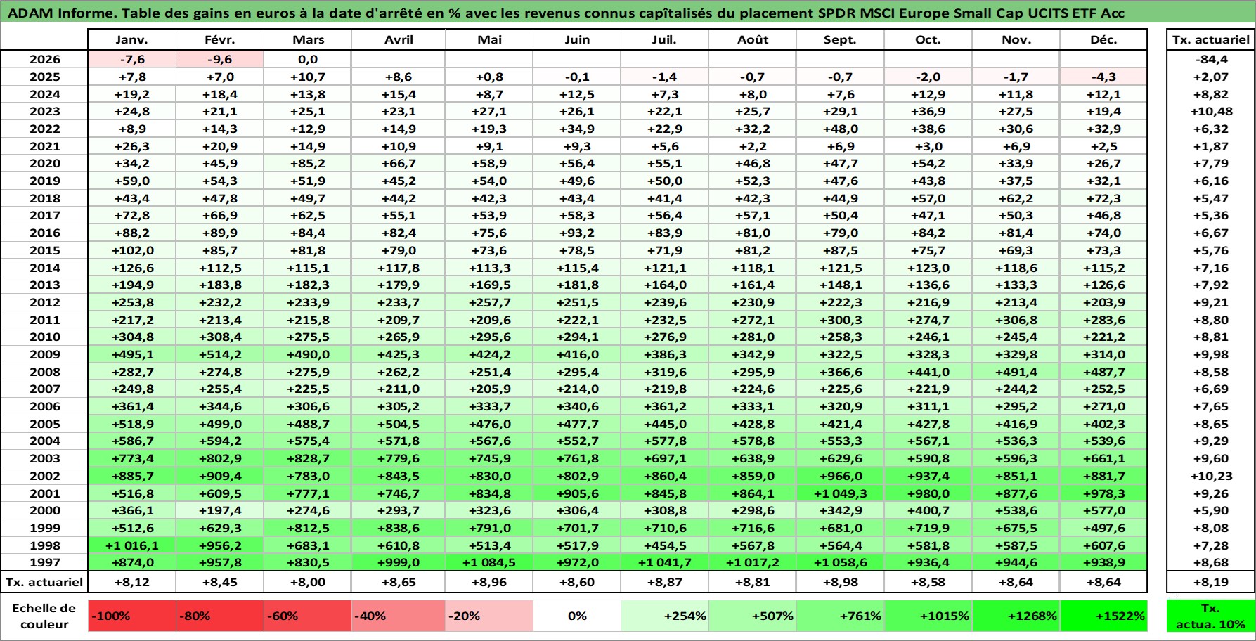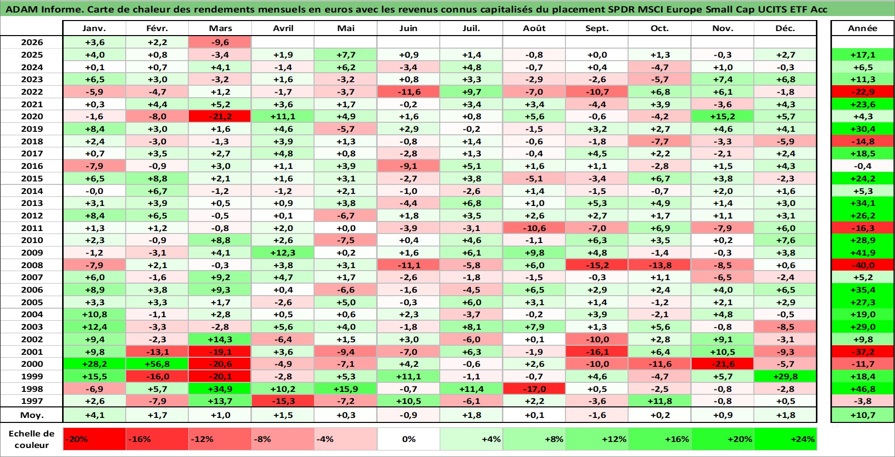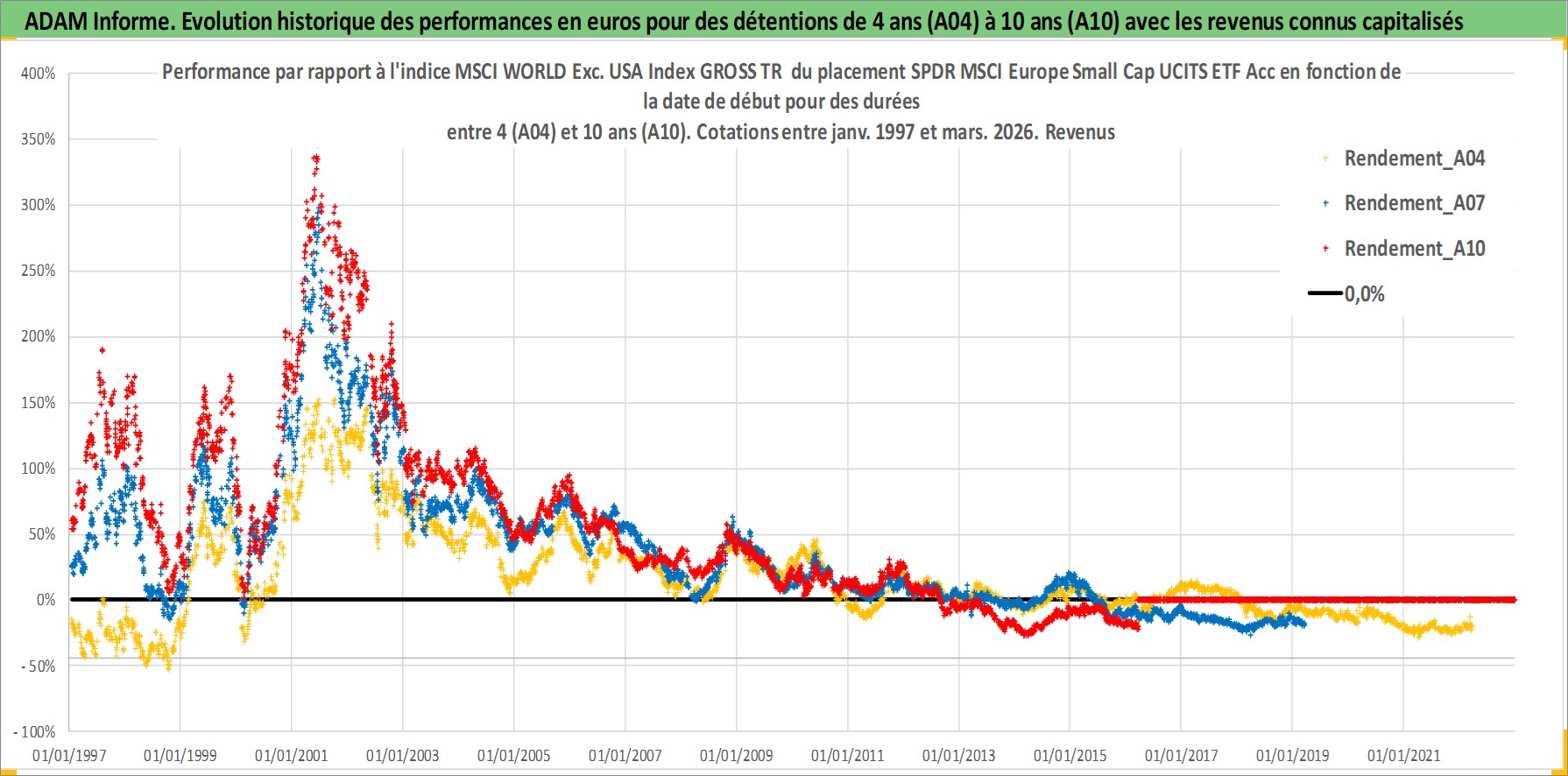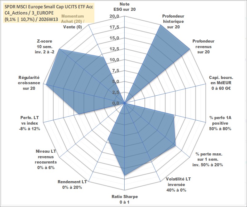 Site dédié aux investisseursPage dédiée sur site financeAnalyse des valorisations hebdomadaires du fonds SPDR MSCI Europe Small Cap UCITS ETF Acc. Cet actif est cote en EUR. Les valorisations couvrent les semaines 1997W01 a 2026W13. Les revenus de cet actif financier sont pris en compte depuis la semaine 1997W01. La note ESG de cet actif n'est pas connue.