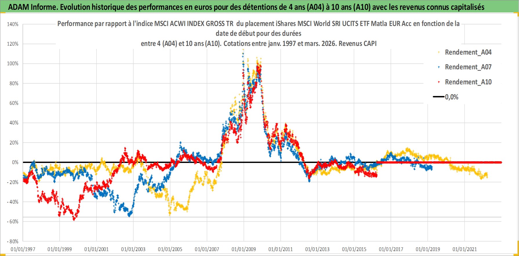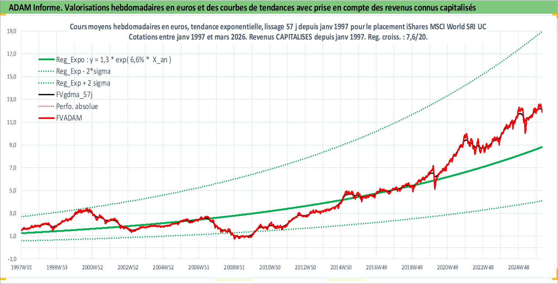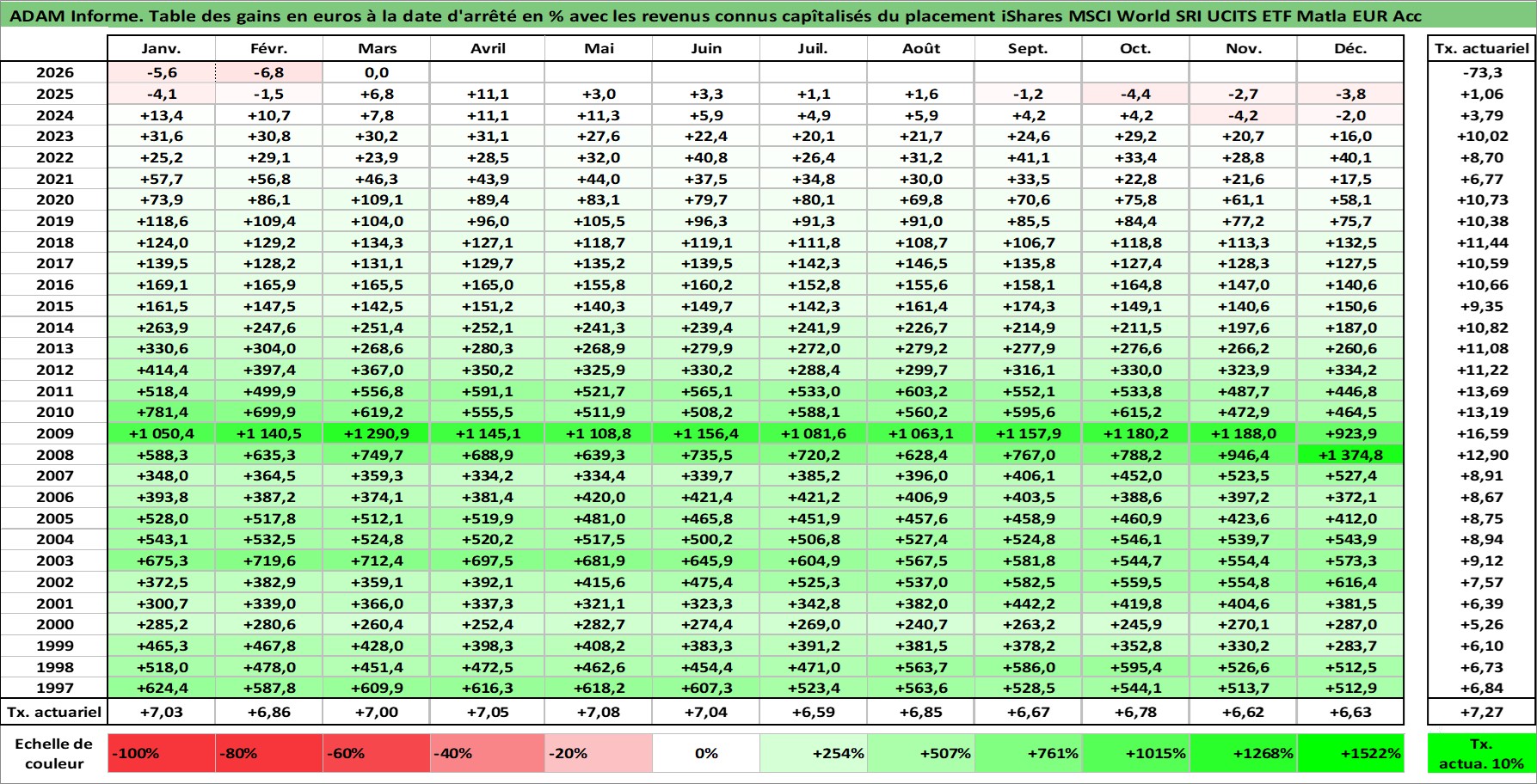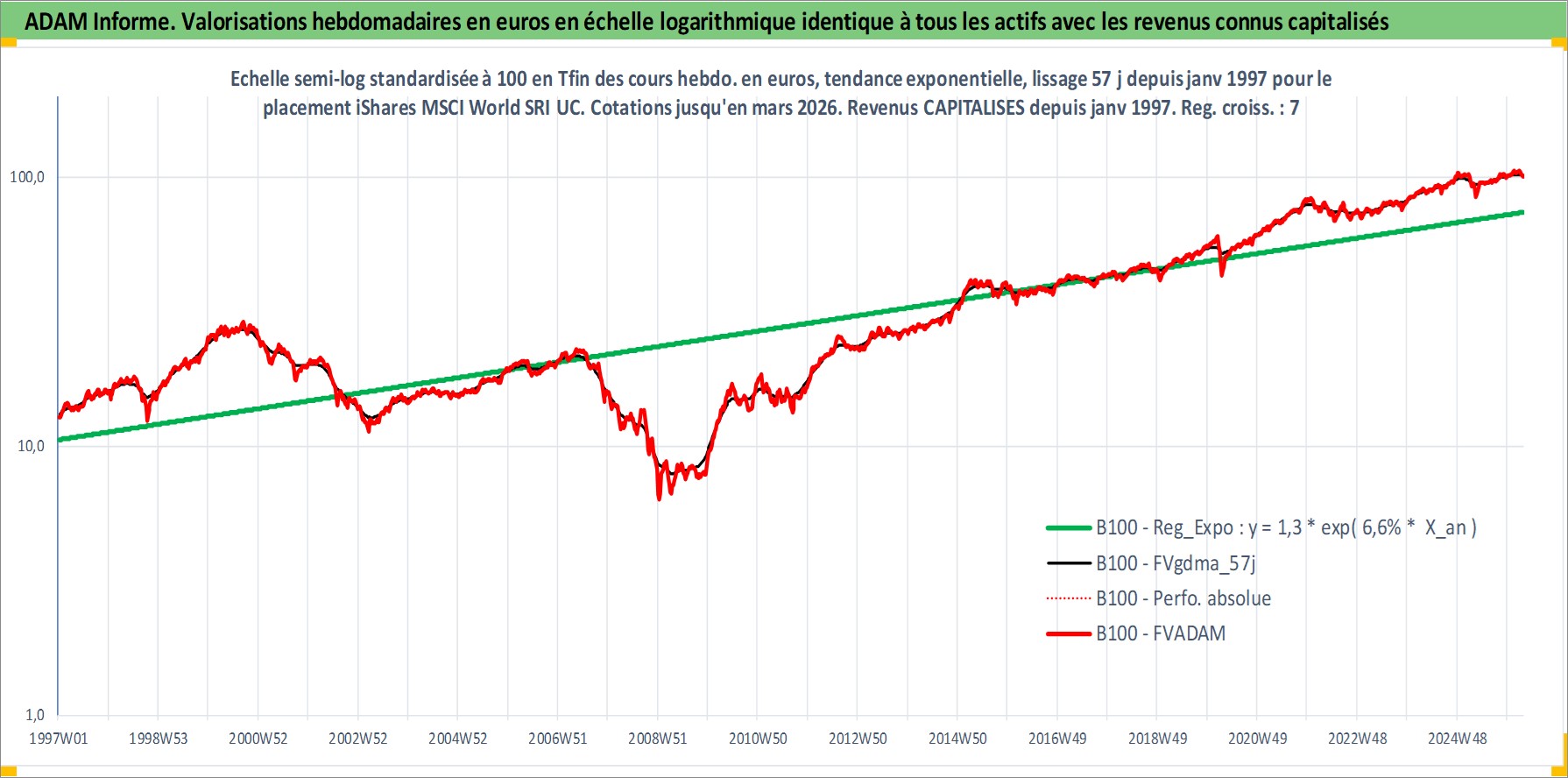Site dédié aux investisseursPage dédiée sur site financeAnalyse des valorisations hebdomadaires du fonds iShares MSCI World SRI UCITS ETF Matla EUR Acc. Cet actif est cote en EUR. Les valorisations couvrent les semaines 1997W01 a 2026W13. Les revenus de cet actif financier sont pris en compte depuis la semaine 1997W01. La note globale ESG de cet actif est estimee a 8.3 (apres rebasage entre 0 et 20).
